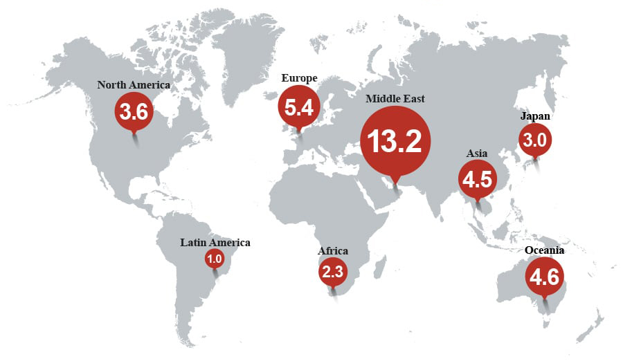 By far the most popular region for the Land Cruiser is the Middle East with over 1.3 million units sold over the 60+ year time frame and a good portion of those are still in active use.
