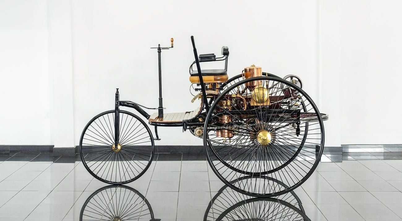 As far as automobiles go, the 1886 Patent Motorwagen is considered by most as the genesis of the automobile. Developed in 1885 by Carl Benz and field-tested by Carl’s wife, Bertha Benz, the Motorwagen’s simple concept consisted on installing a gasoline-powered, two-stroke piston engine in the back of a tricycle with large spoke wheels —a true horseless carriage.
