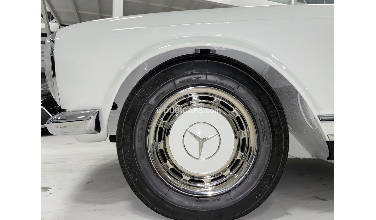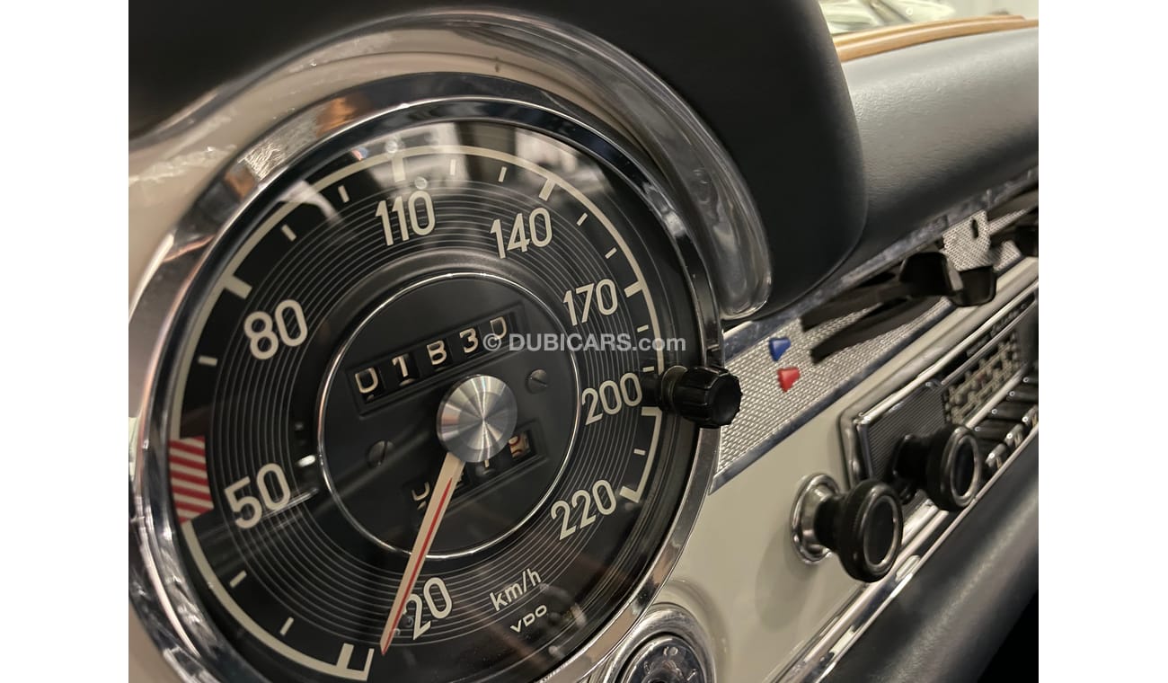As its Datenkarte attests, this 280 SL left the factory on 30 July 1968. This valuable document confirms that the body was finished in "Off-white", with a dark blue leather interior, a combination which was kept when the car was fully restored. A series of photos shows how much attention to detail was paid during the restoration. The body, which was sound to begin with, was completely stripped down and sandblasted before being repainted. The original engine was fully reconditioned, as was the running gear. The upholstery meanwhile was entrusted to the excellent firm Ferraresi, in Ferrara. Just as it should, the hood matches the upholstery. The electrical system was also completely renewed at this time. Since its completion in 2018, this high-quality restoration has lost none of its lustre, as the car has been driven very little. As a result, the four Michelin MXV tyres are in nearly-new condition. With its hardtop and a period Becker Europa radio, this "Pagoda" is in exceptional condition after a remarkable restoration for a model of this kind
