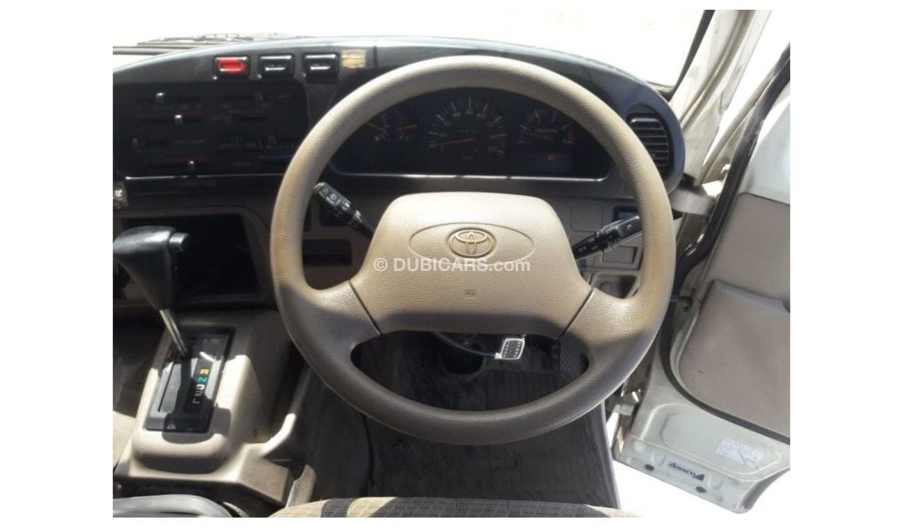 Used Toyota Coaster bus RIGHT HAND DRIVE for sale in Dubai. White 2000 model, available at Perfect Motors FZCO. This car has automatic transmission, a 6 cylinder engine, 17″ wheels and Grey interior. 159,000 km, Imported specs.