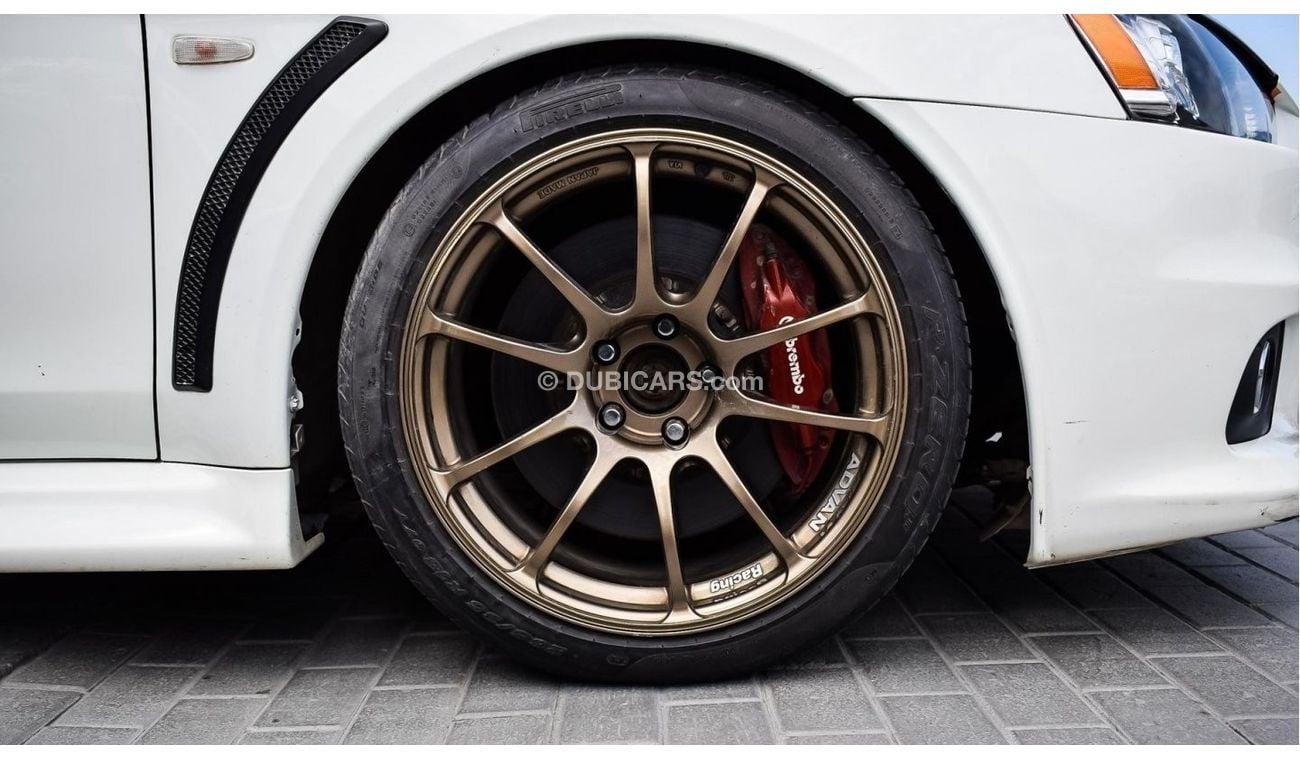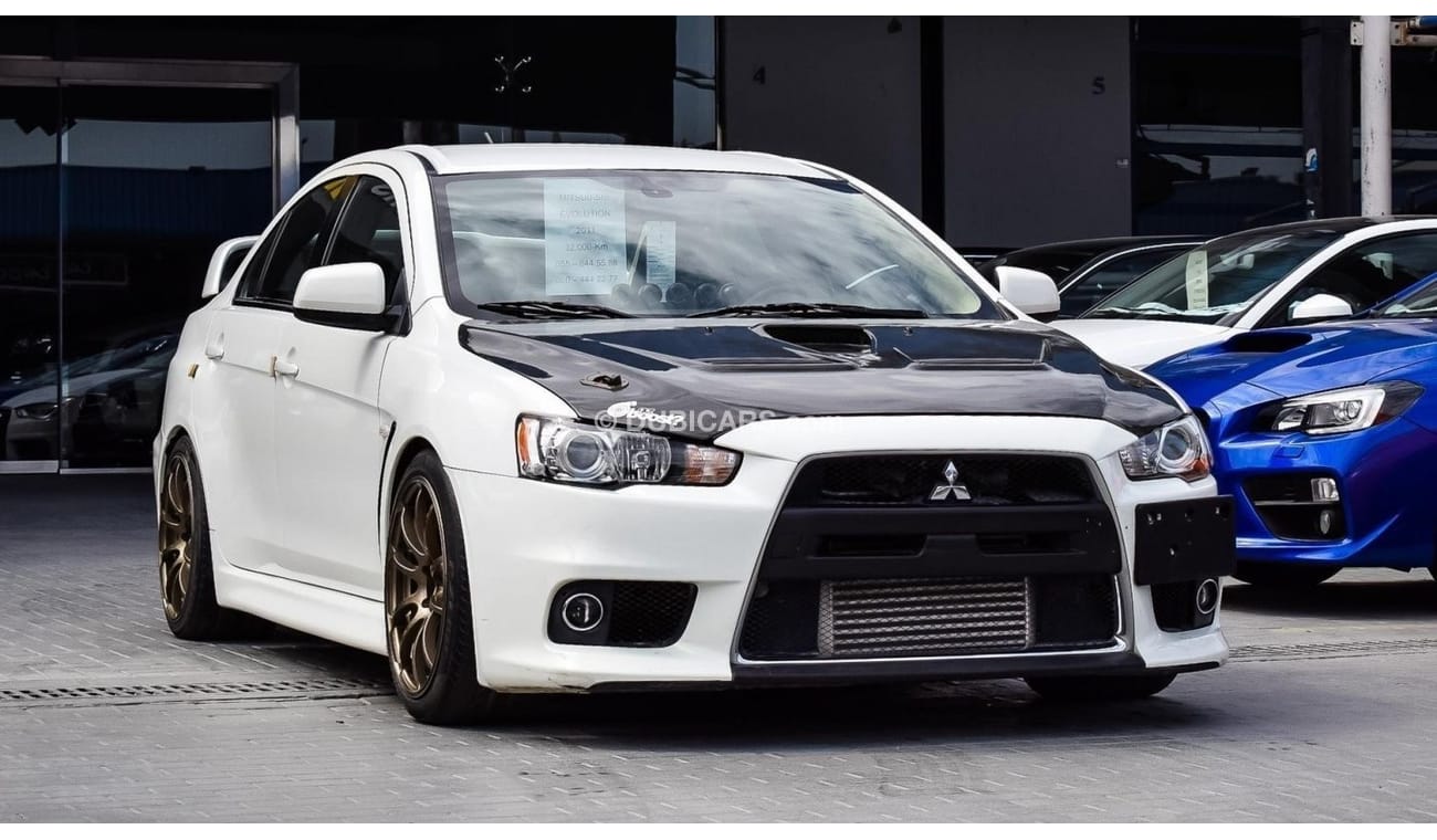 Pre-owned Mitsubishi Evo 10 for sale in Dubai. White 2011 model, available at Al Falasi Motors. This car has manual transmission, 4 cylinders, 18″ wheels and black interior. 32,000 km, GCC specs.