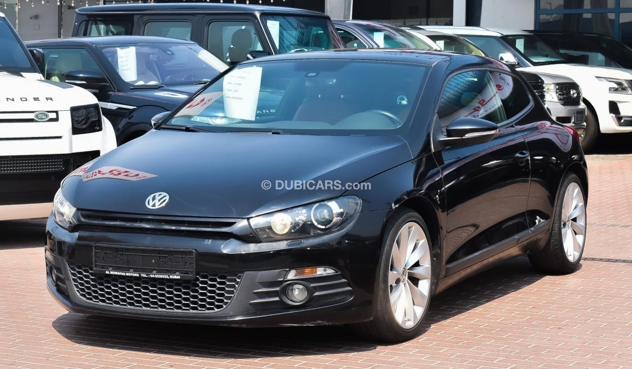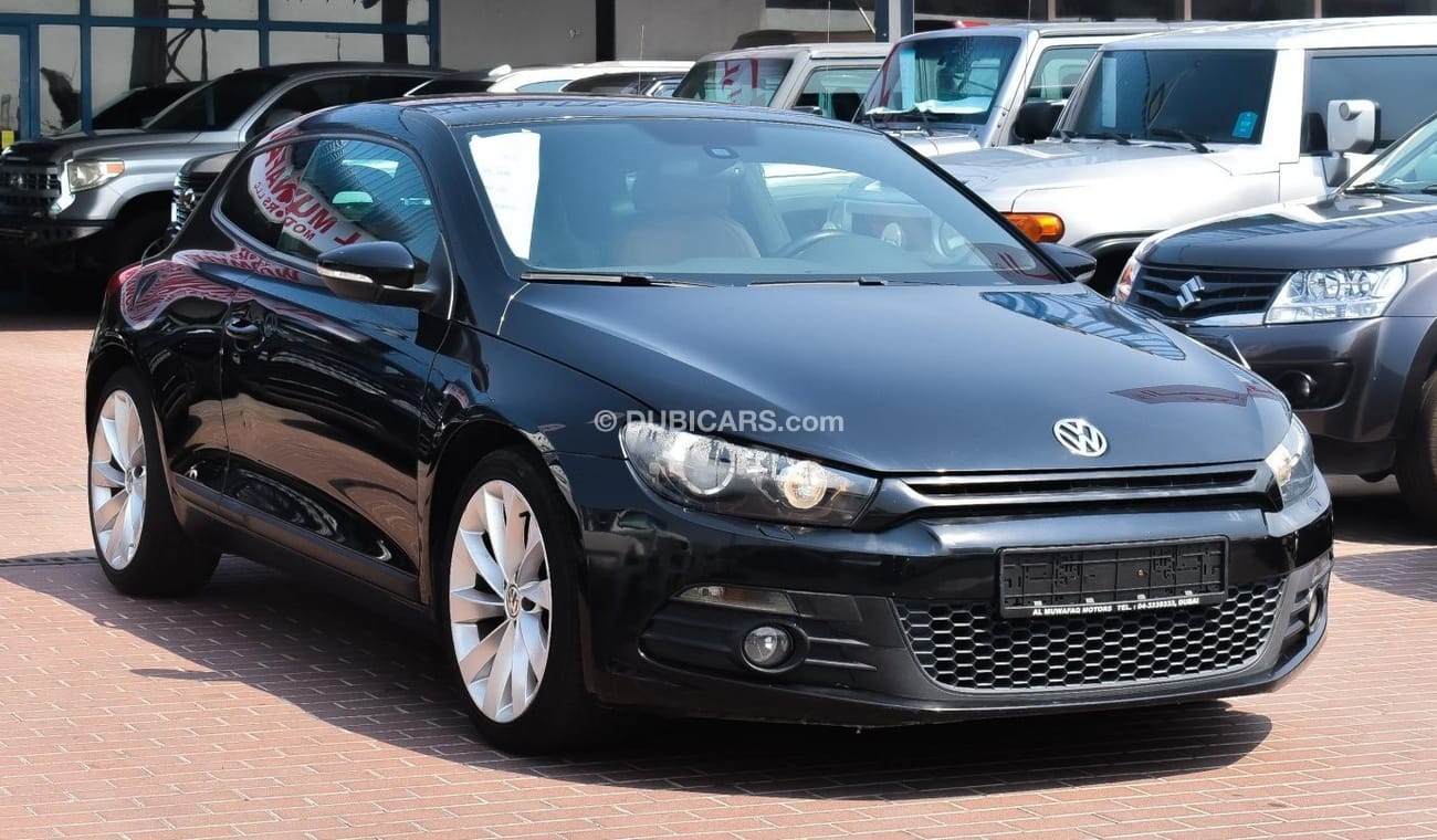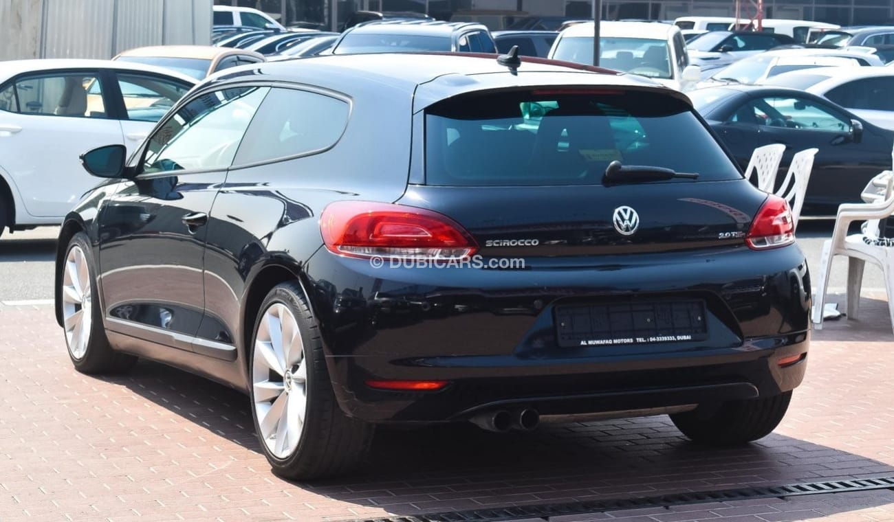 Pre owned Volkswagen Scirocco 2.0 TSI for sale in Dubai by Al Muwafaq Motors. 4 cylinder engine, black exterior and automatic transmission. Comes with 16″ wheels and tan interior. 112,000 kilometers on the odometer, GCC specs.