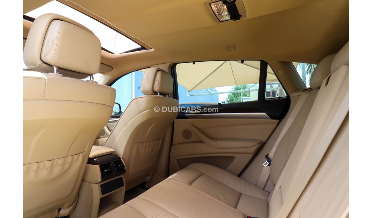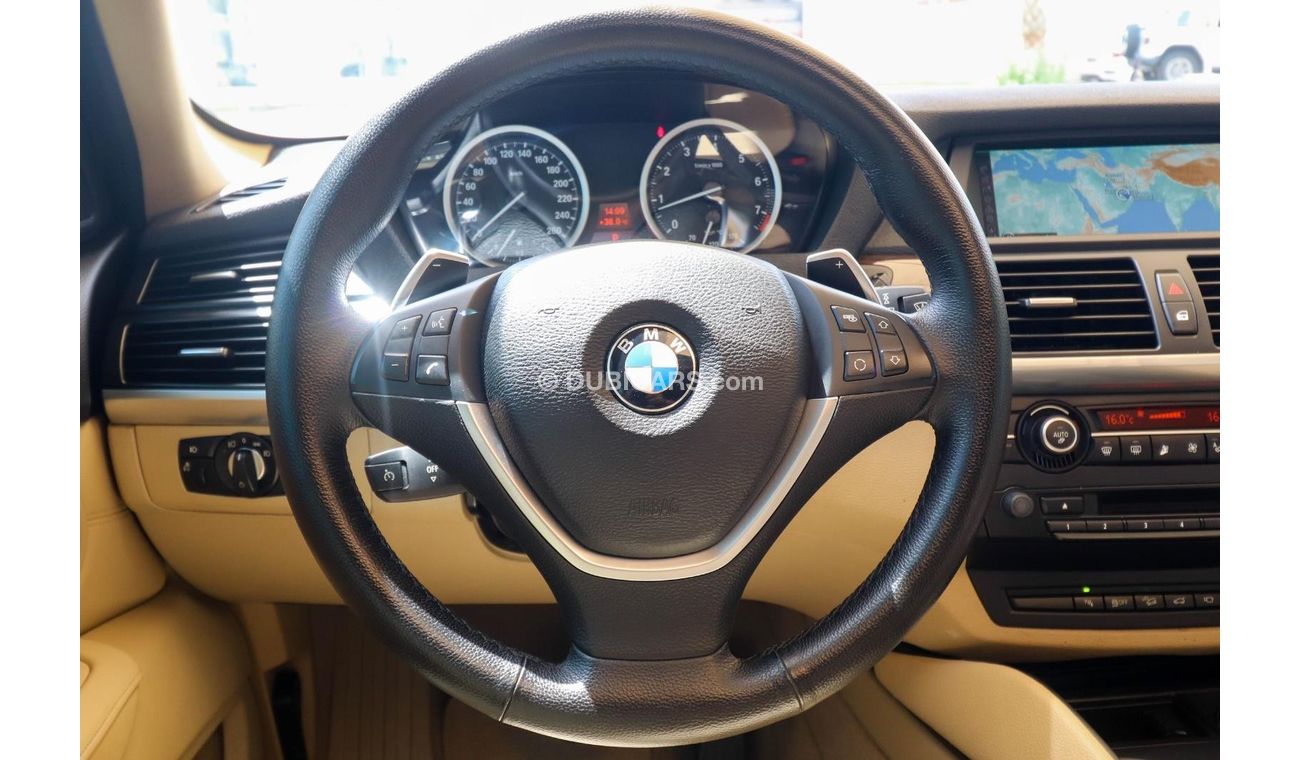 Pre owned BMW X6 E71 for sale in Dubai by Linda Cars. 6 cylinder engine, white exterior and automatic transmission. Comes with 17″ wheels and beige interior. 85,000 kilometers on the odometer, GCC specs.