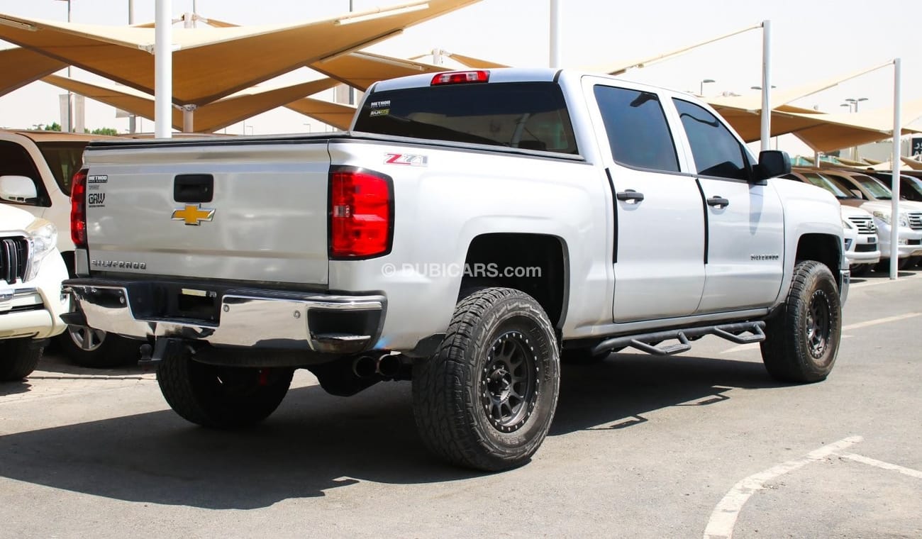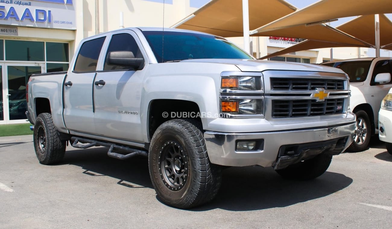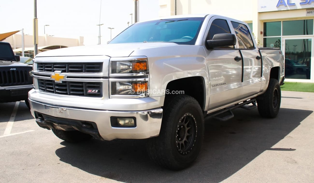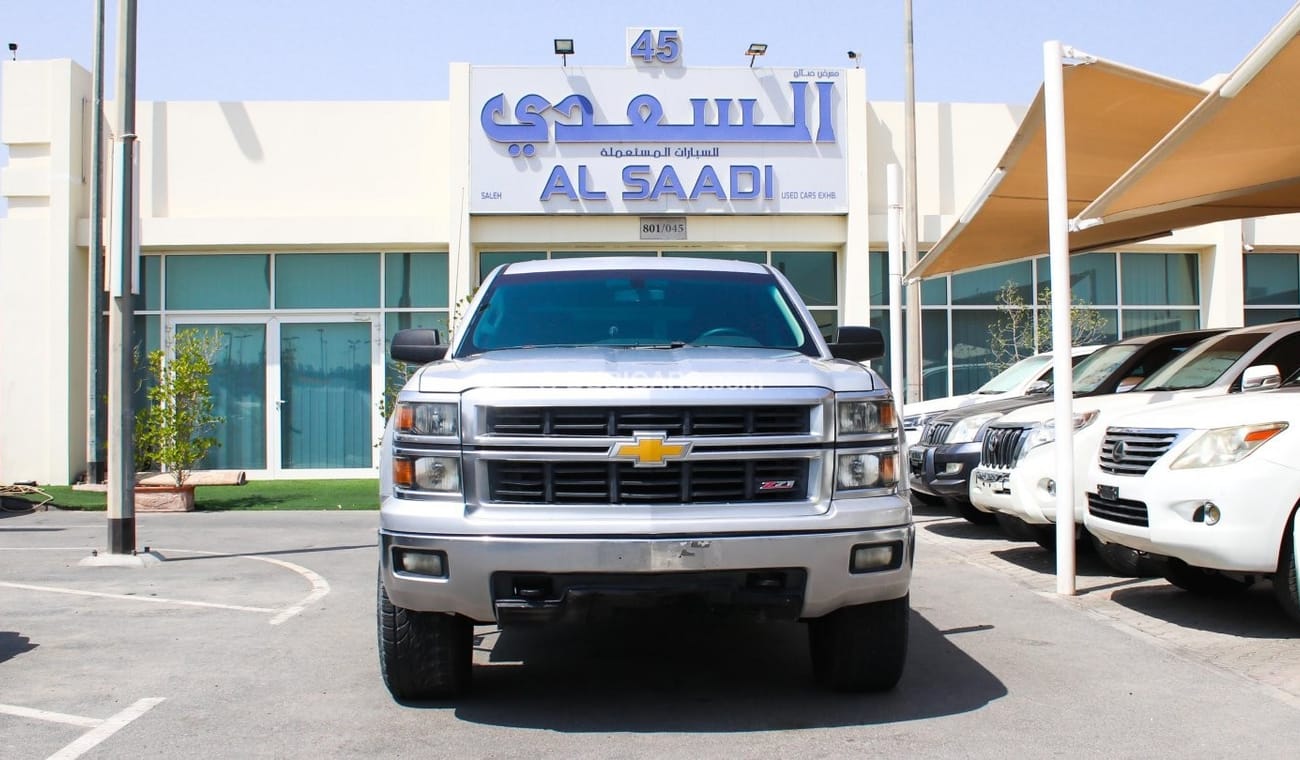Used Chevrolet Silverado Z71 for sale in Dubai. Grey/Silver 2014 model, available at Saleh Al Saadi Used Cars Exhibition. This car has automatic transmission, a 8 cylinder engine, 17″ wheels and beige interior. 179,000 km, GCC specs.