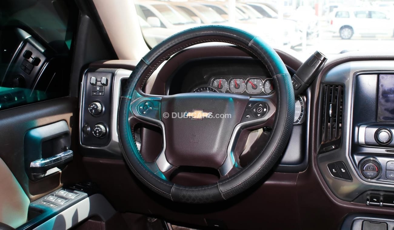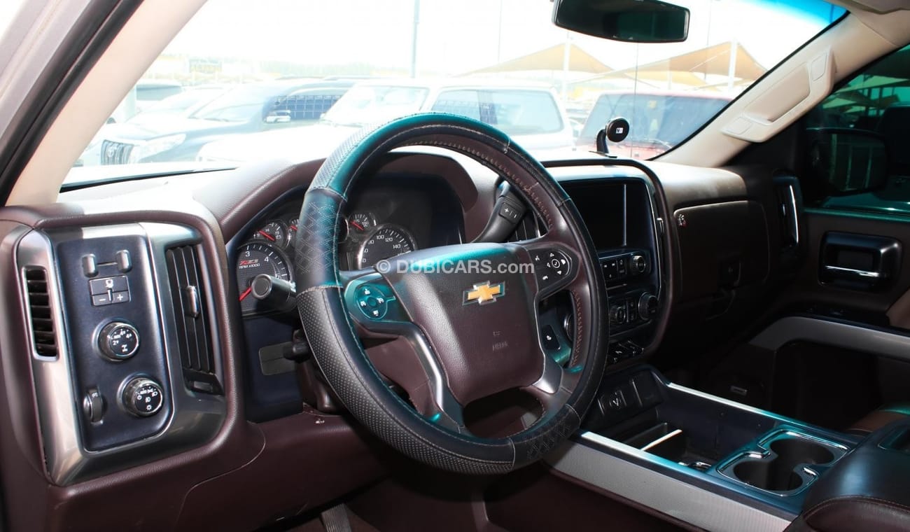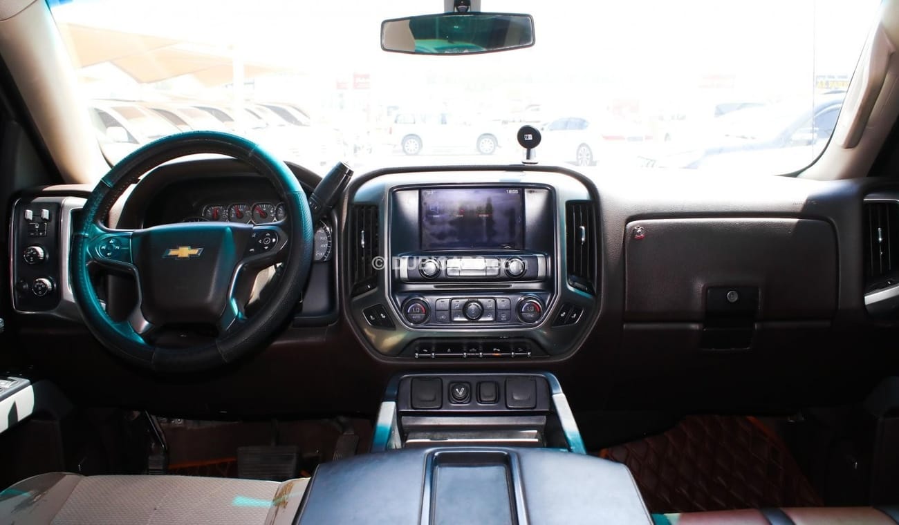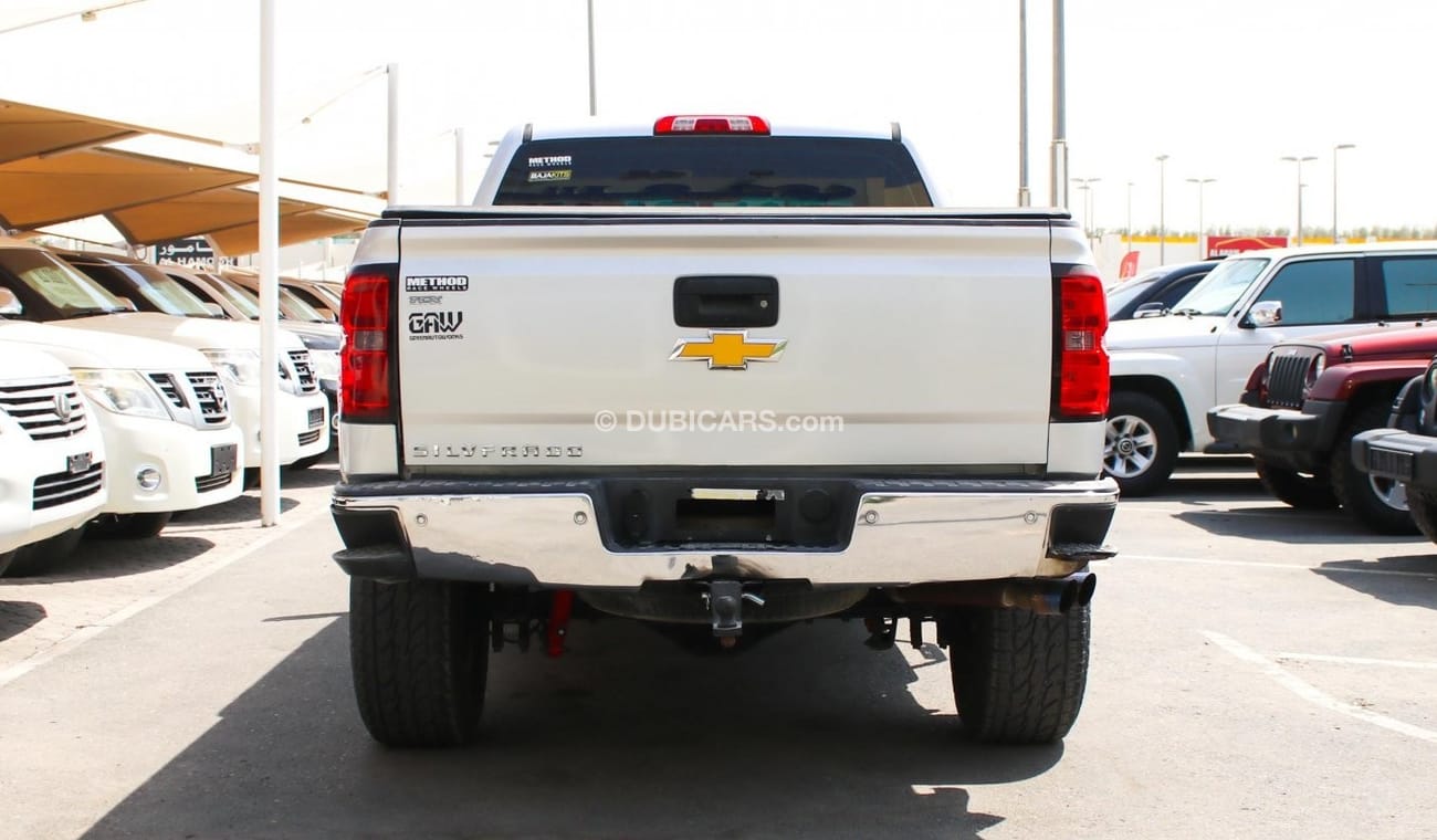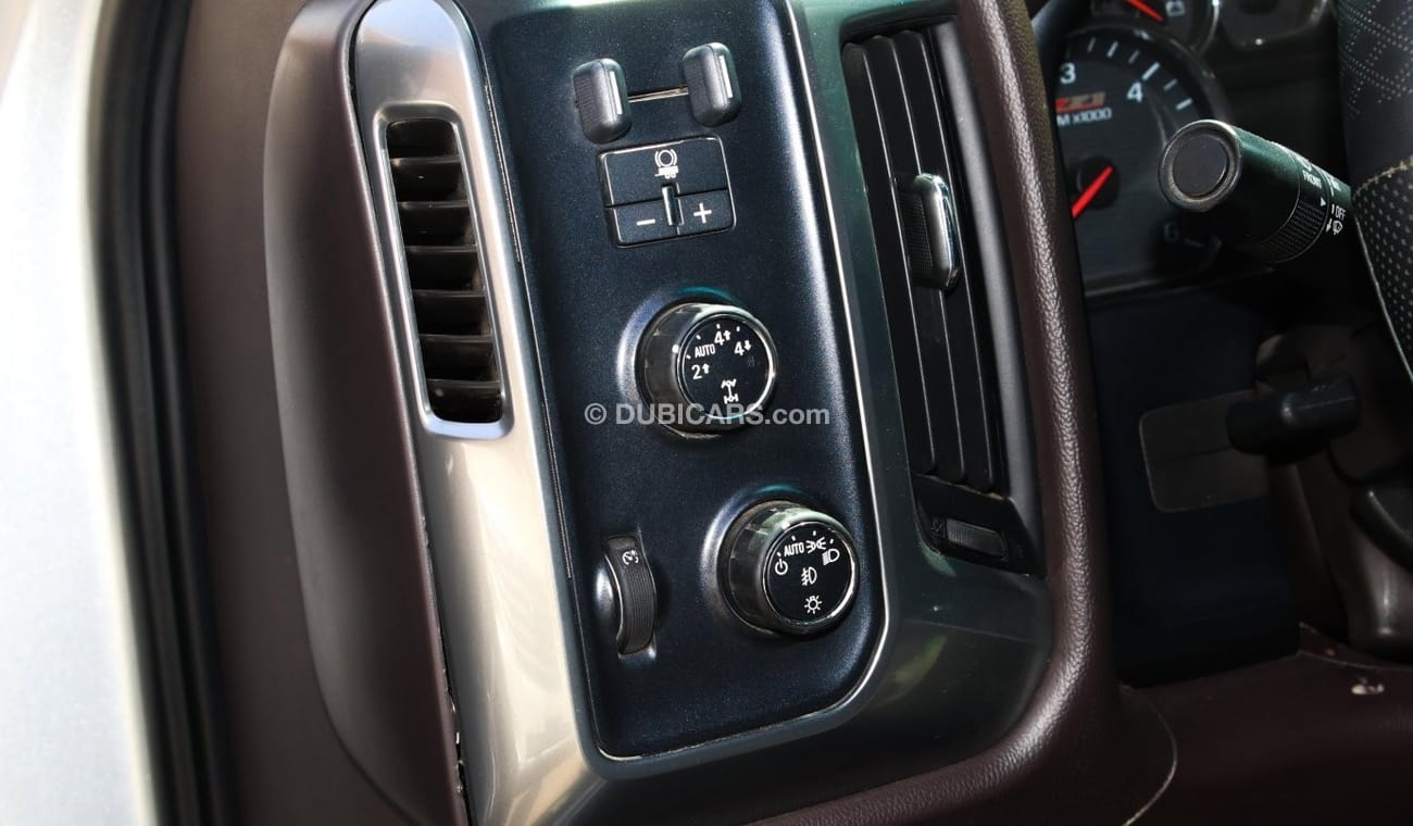 Used Chevrolet Silverado Z71 for sale in Dubai. Grey/Silver 2014 model, available at Saleh Al Saadi Used Cars Exhibition. This car has automatic transmission, a 8 cylinder engine, 17″ wheels and beige interior. 179,000 km, GCC specs.