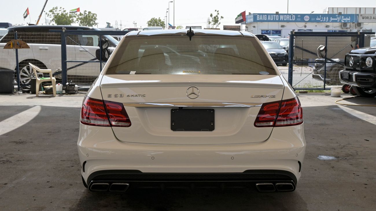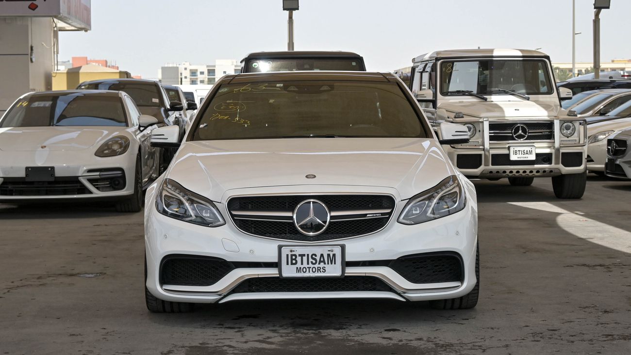 Pre owned Mercedes-Benz E 63 AMG V8 Biturbo for sale in Dubai by Ibitisam Motors. 8 cylinder engine, white exterior and automatic transmission. Comes with 19″ wheels and black interior. 115,000 kilometers on the odometer, Japanese specs.