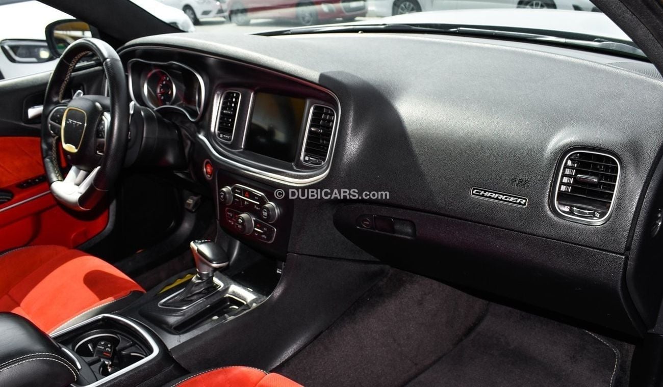 Pre owned Dodge Charger SRT for sale in Sharjah by Al Nujoom Al Malakiah Used Cars. 8 cylinder engine, silver exterior and automatic transmission. Comes with 20″ wheels and red interior. 154,000 kilometers on the odometer, GCC specs.