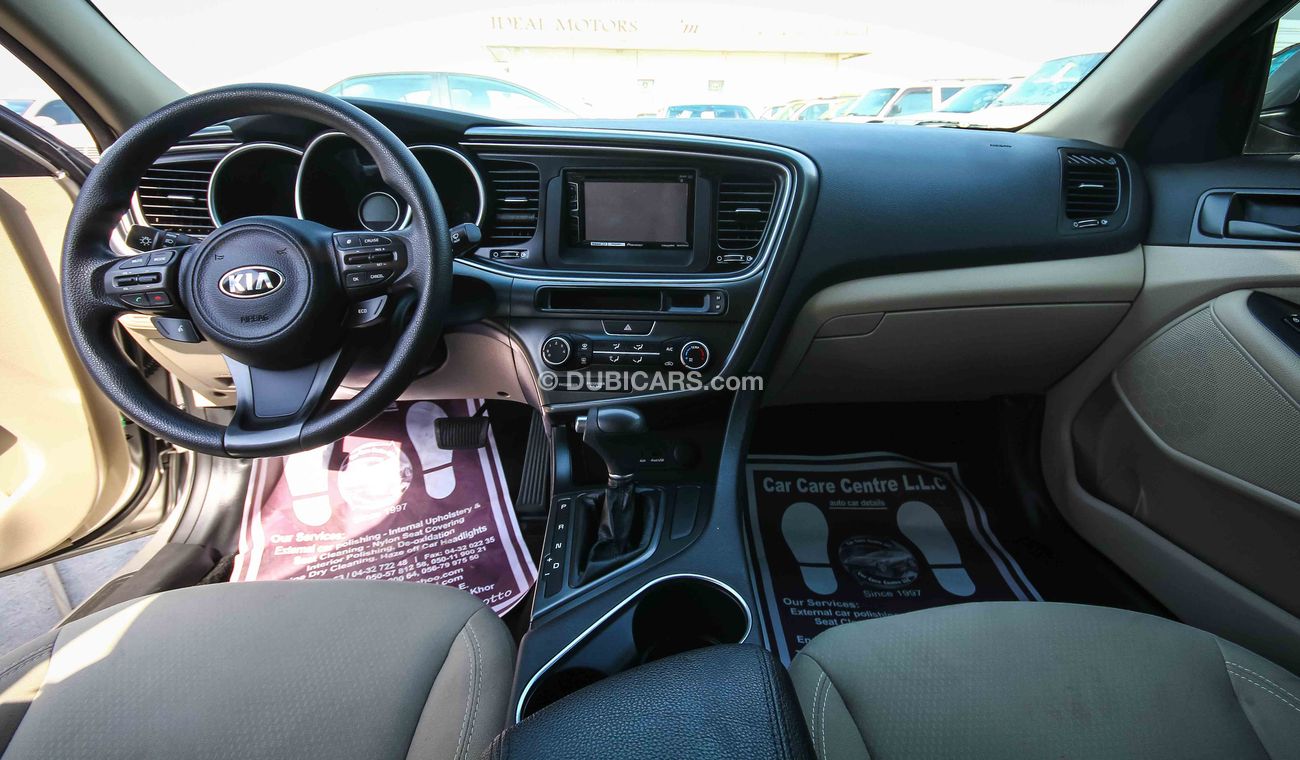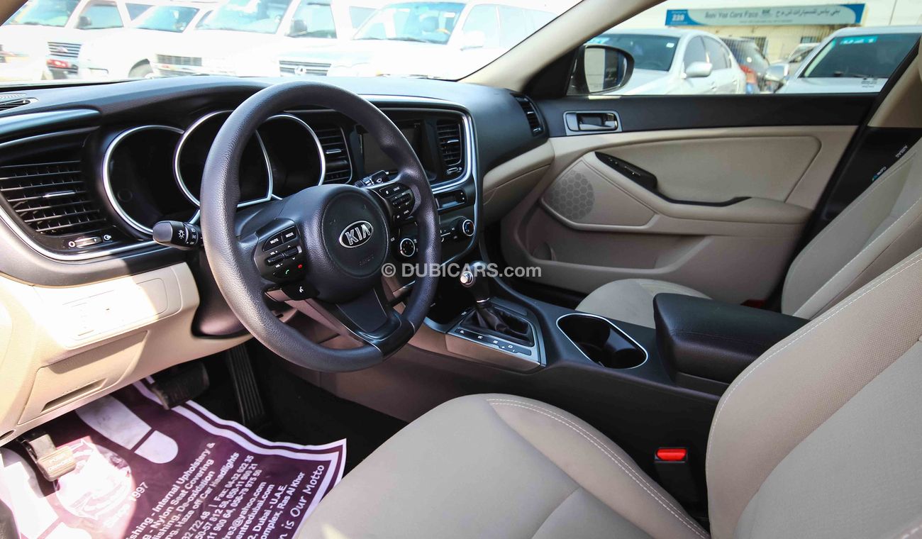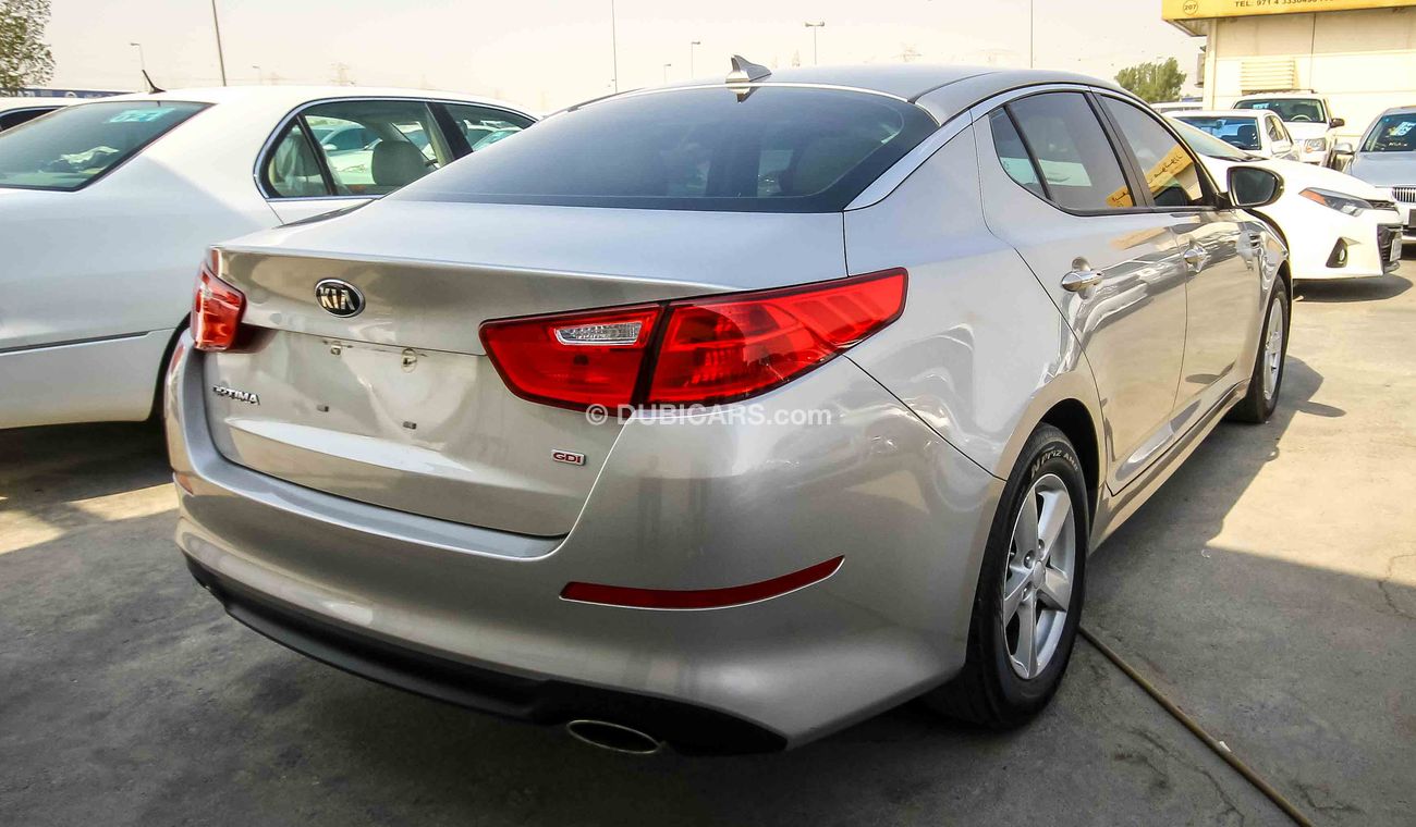 Pre-owned Kia Optima for sale in Dubai. Silver 2015 model, available at Sikandar Motors. This car has automatic transmission, 4 cylinders, 16″ wheels and beige interior. 27,000 km, Other specs.