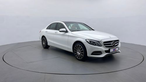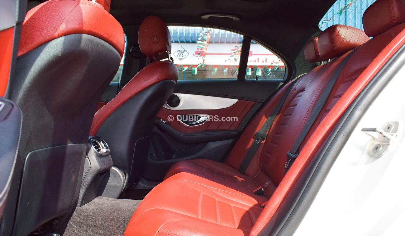 Pre-owned Mercedes-Benz C 200 for sale in Dubai. White 2015 model, available at Al Muwafaq Motors. This car has automatic transmission, 4 cylinders, 19″ wheels and red interior. 150,000 km, GCC specs.