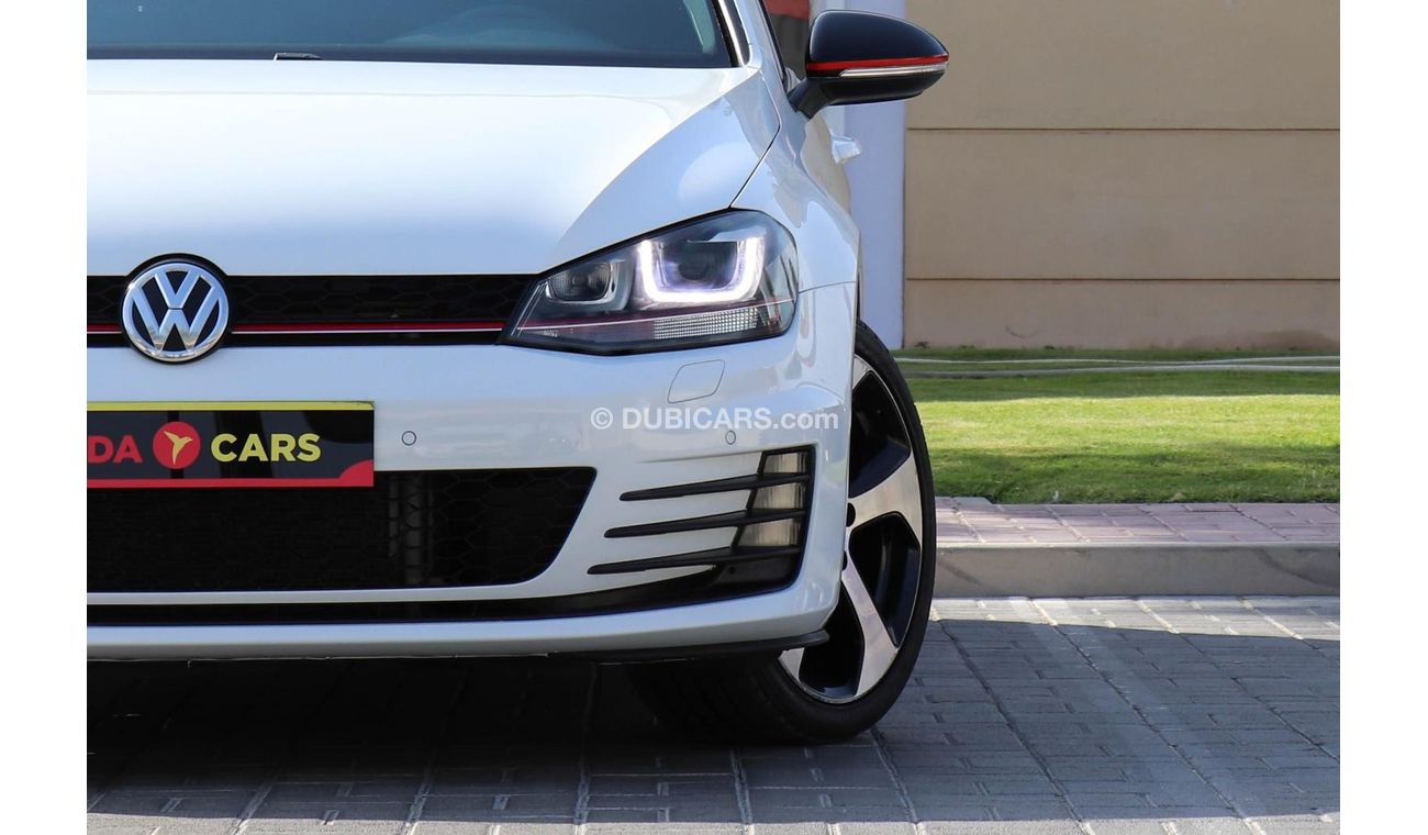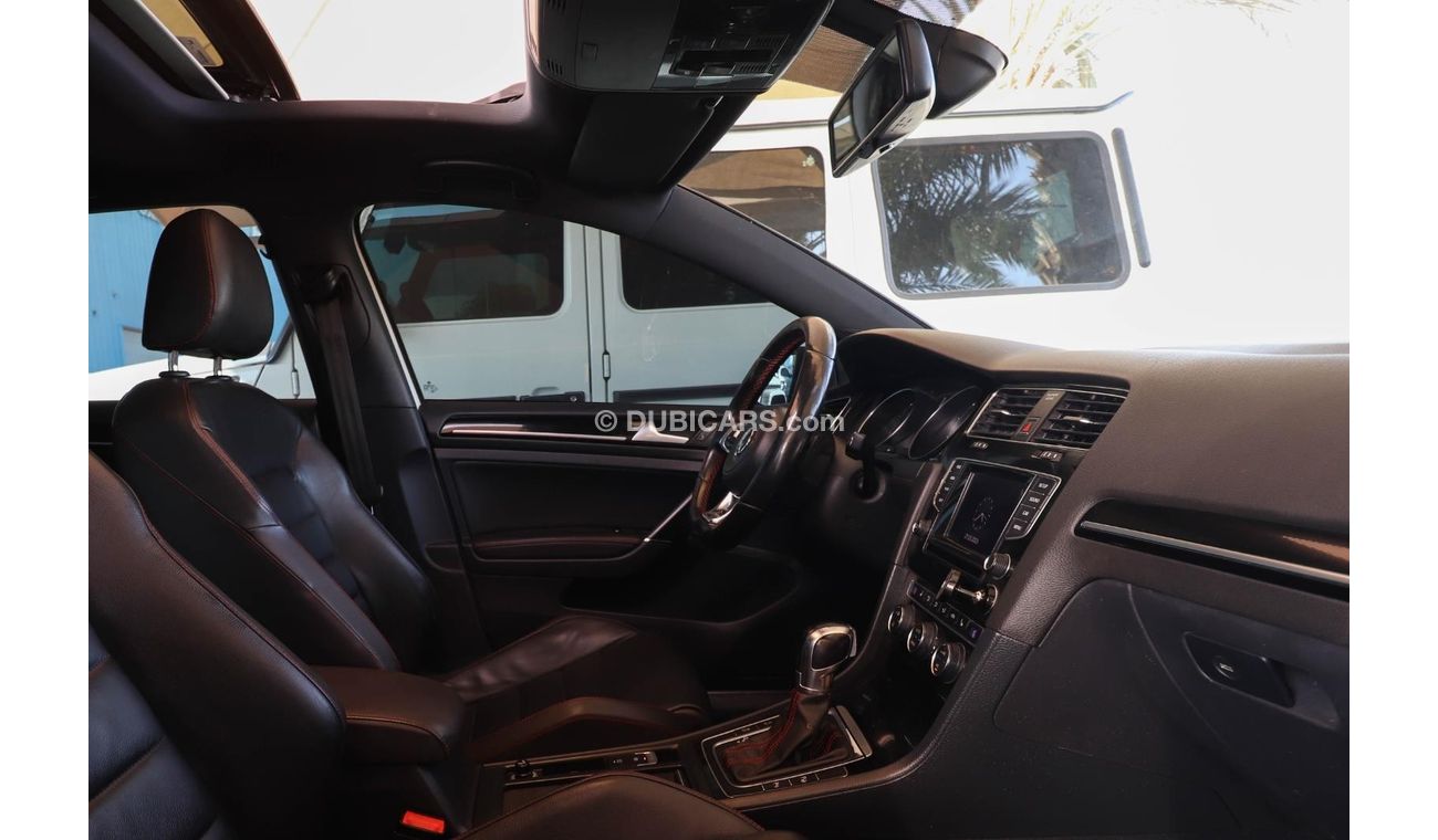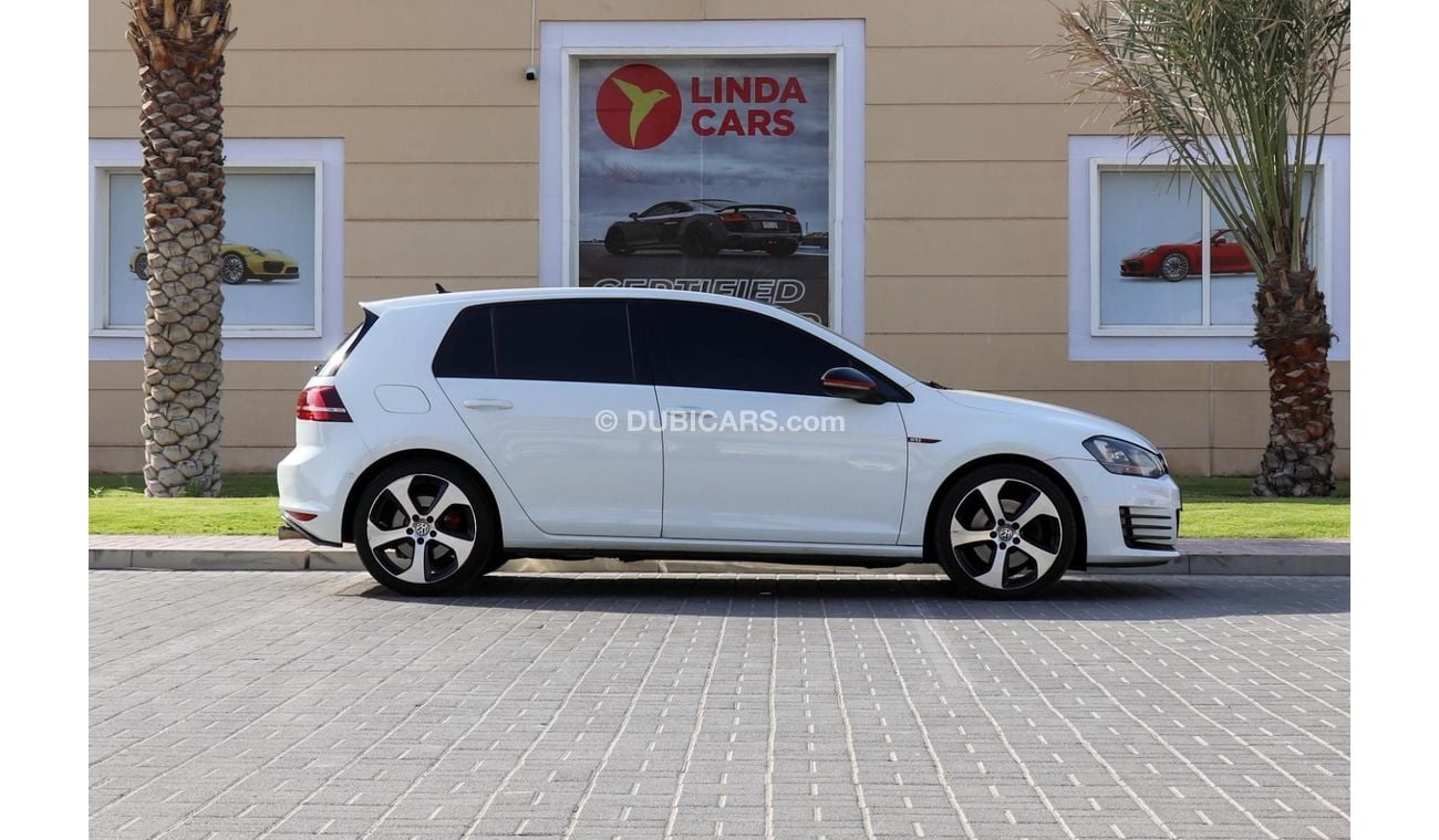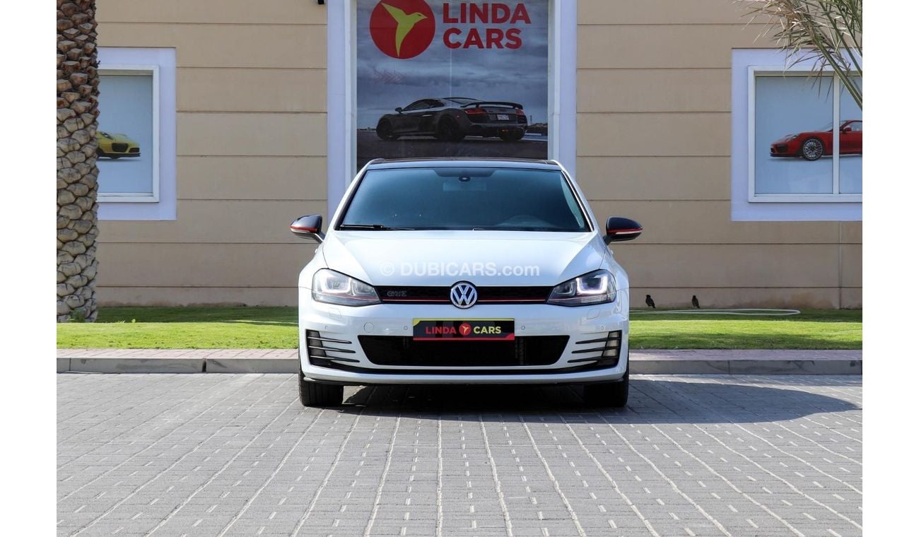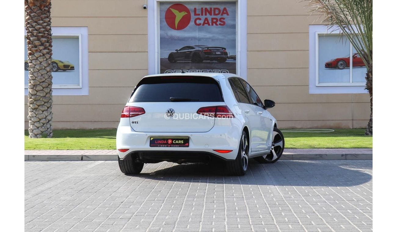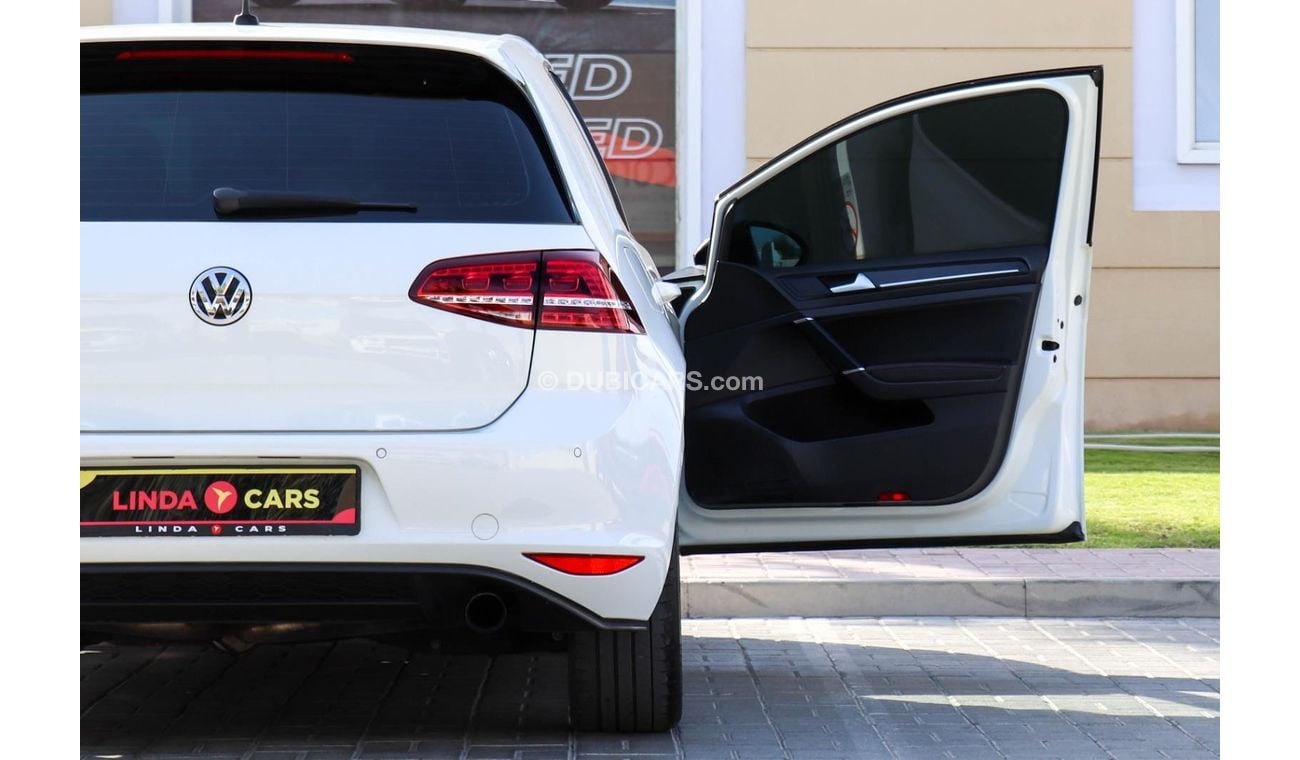 Pre-owned Volkswagen Golf A7 for sale in Dubai. White 2015 model, available at Linda Cars. This car has automatic transmission, 4 cylinders, 17″ wheels and black interior. 90,000 km, GCC specs.