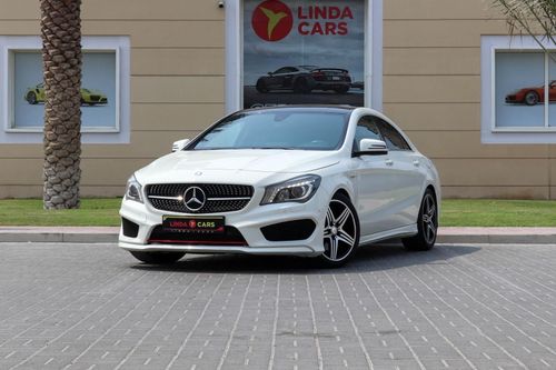 Pre-owned Mercedes-Benz CLA 250 C117 for sale in Dubai. White 2016 model, available at Linda Cars. This car has automatic transmission, 4 cylinders, 17″ wheels and black interior. 105,000 km, GCC specs.