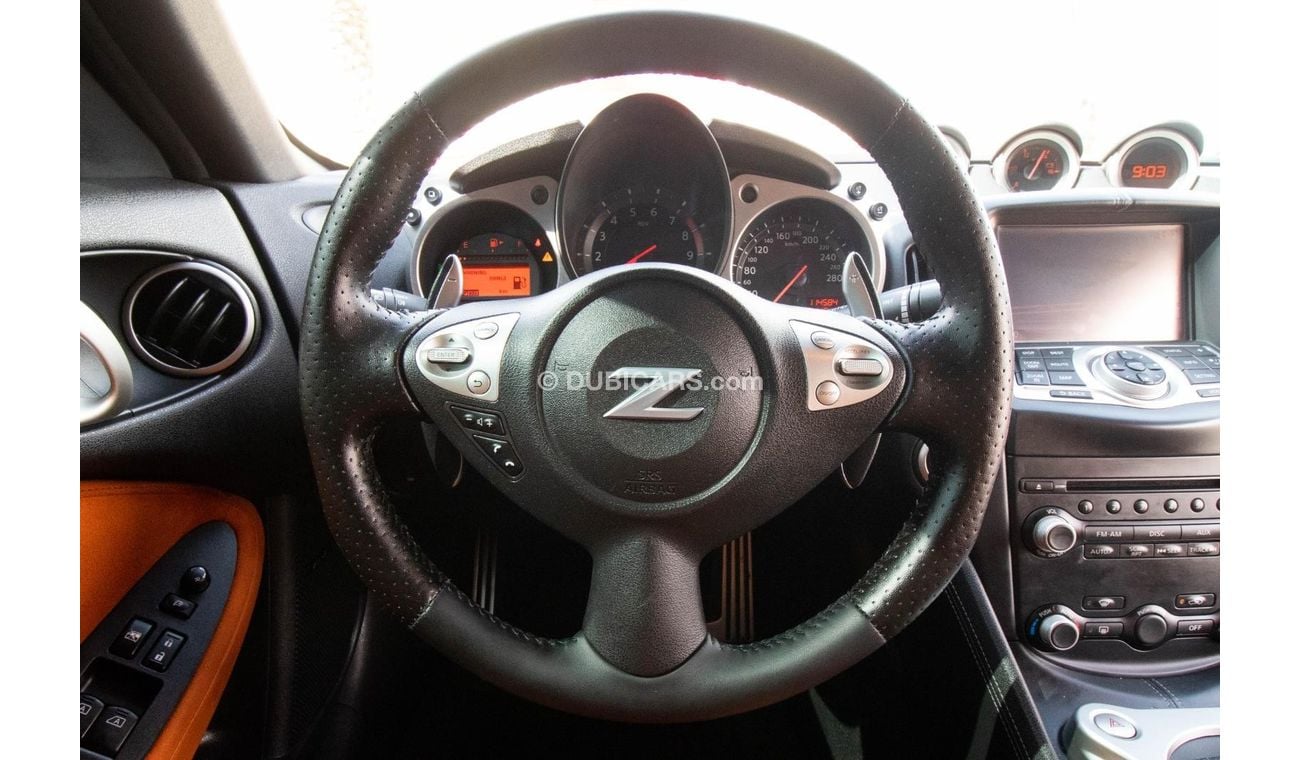 Pre-owned Nissan 370Z Z34 for sale in Dubai. Black 2016 model, available at Linda Cars. This car has automatic transmission, 6 cylinders, 17″ wheels and orange interior. 114,000 km, GCC specs.