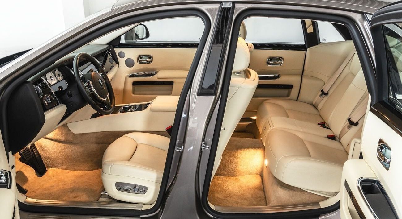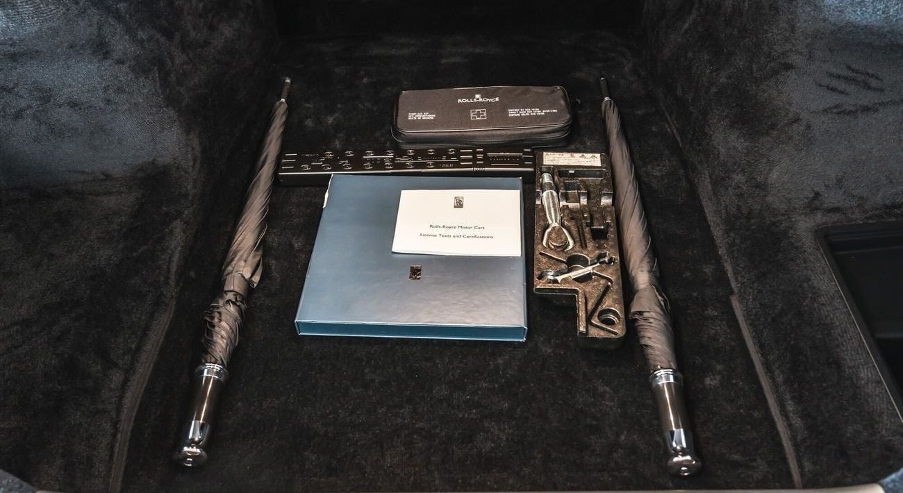 This particular car was sold new in Japan in 2016 through Cornes Rolls-Royce. Finished in an elegant combination of two-tone Silver Sand II over crème leather, it has recently received a service at Rolls-Royce Dubai (May 2024), new runflat tyres, and it is cosmetically immaculate. The car comes with books, tools, records, warning triangle, first aid kit, and both its iconic door umbrellas.