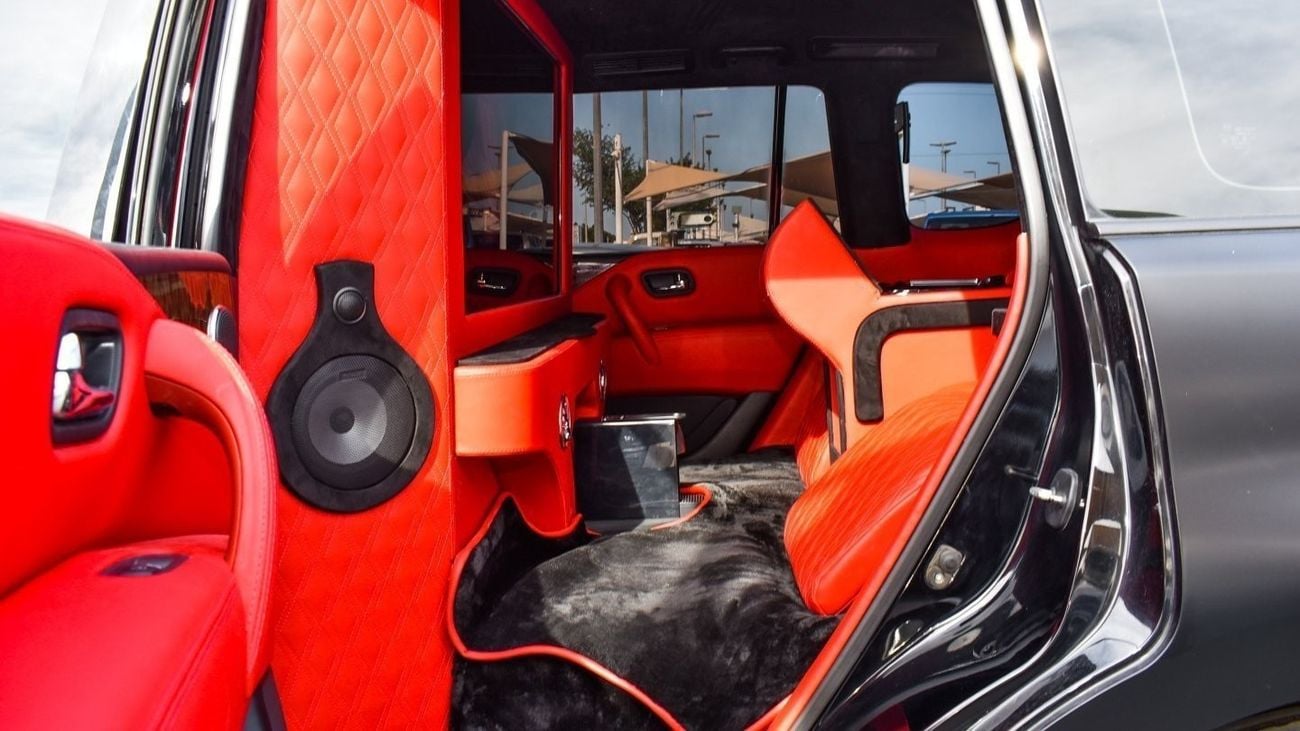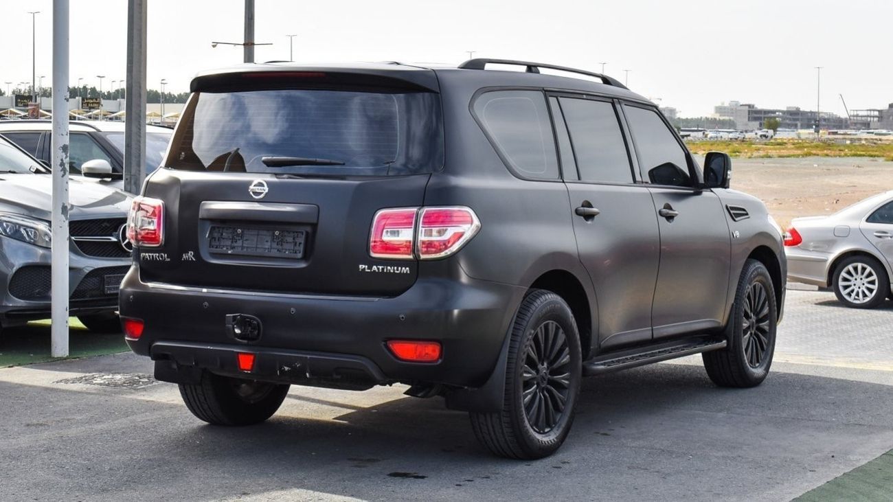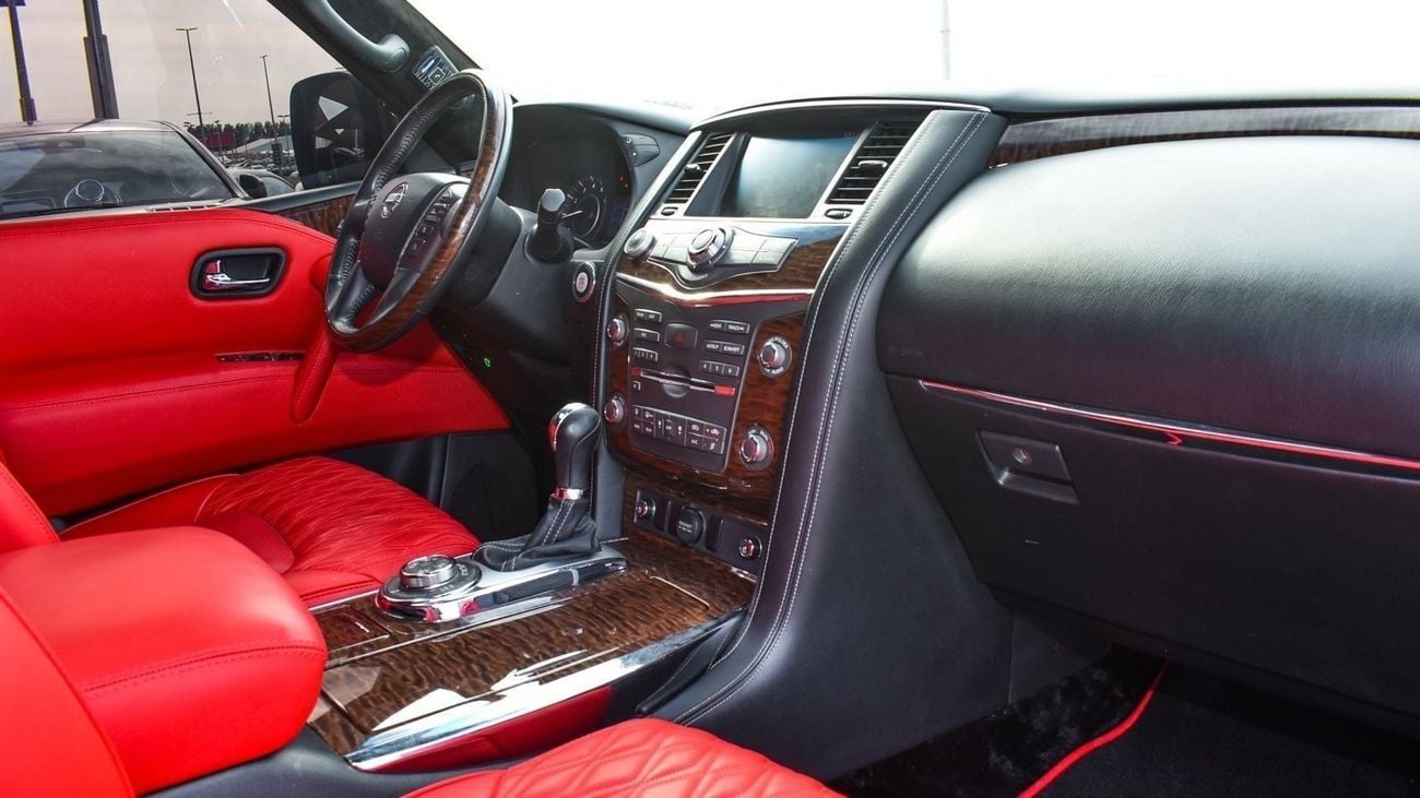 Pre-owned Nissan Patrol LE Platinium VIP for sale in Sharjah. Black 2017 model, available at Al Nujoom Al Malakiah Used Cars. This car has automatic transmission, 8 cylinders, 20″ wheels and red interior. 163,000 km, GCC specs.