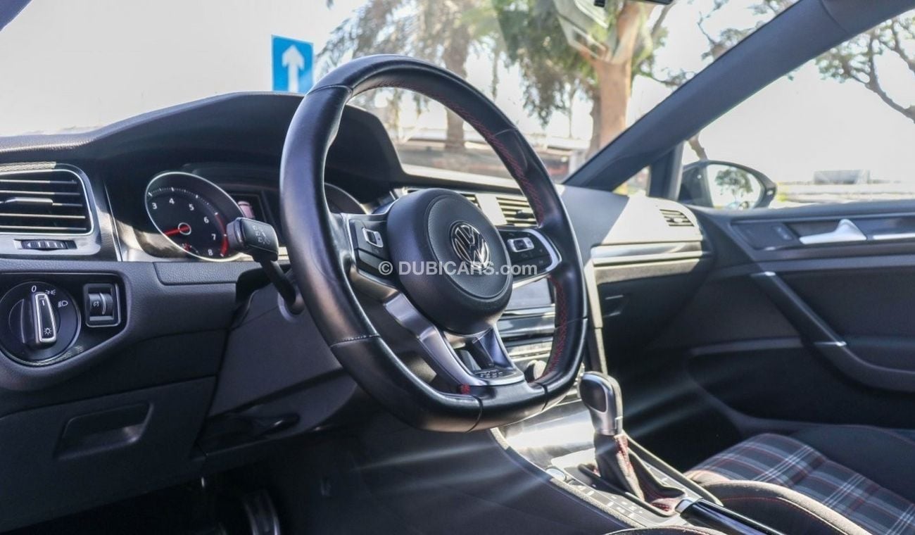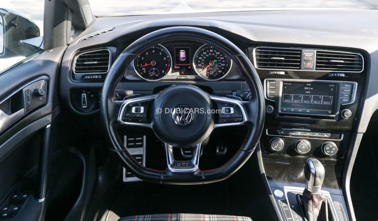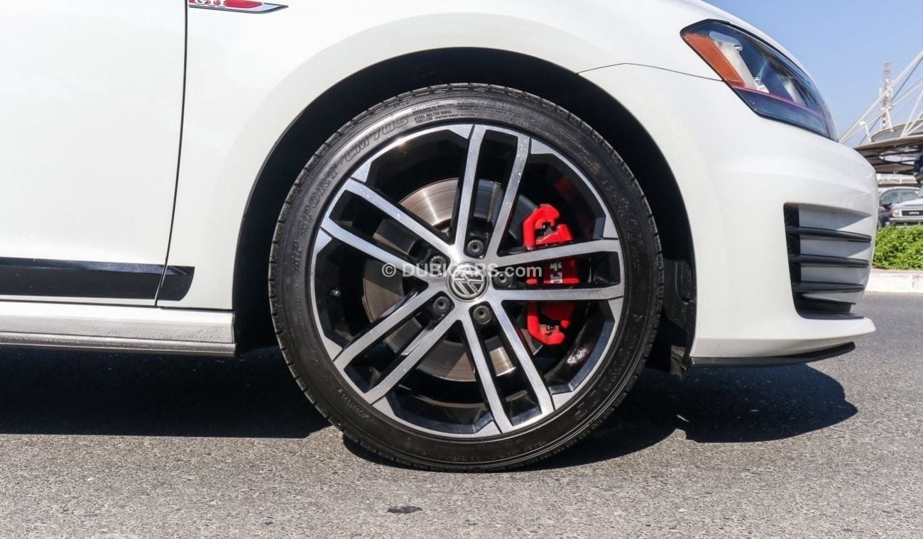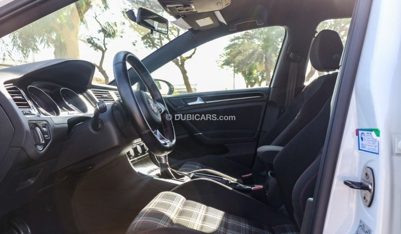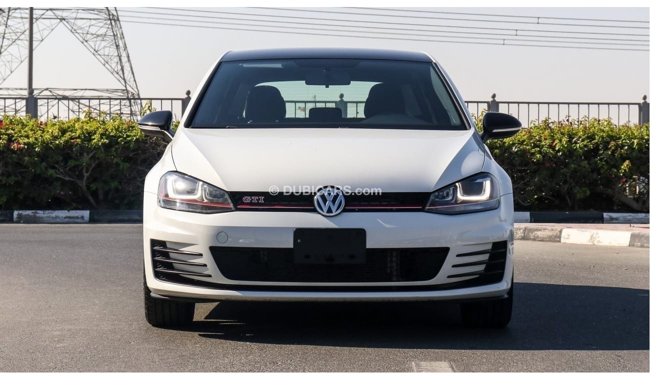 Pre-owned Volkswagen Golf GTI for sale in Dubai. White 2017 model, available at Al Falasi Motors. This car has automatic transmission, 4 cylinders, 18″ wheels and black interior. 83,573 km, Imported specs.