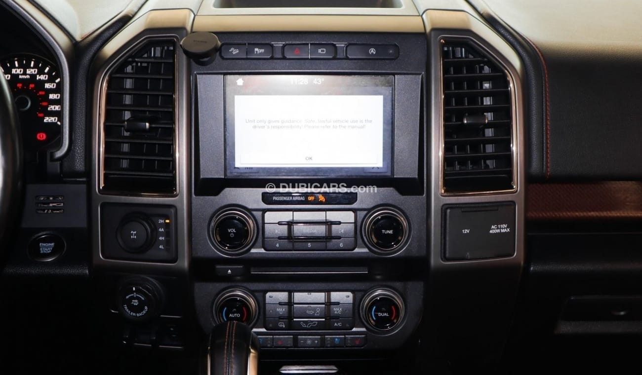 Pre-owned Ford Raptor for sale in Dubai. Grey/Silver 2018 model, available at Al Salama Motors. This car has automatic transmission, a 6 cylinder engine, 17″ wheels and black interior. 91,000 km, GCC specs.
