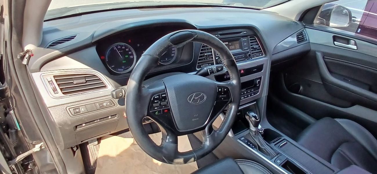 Hyundai Sonata 2018 Hybrid, imported from Korea, black exterior, black interior, excellent condition, accident-free, full option, sunroof, screen, mileage 60,000 km, asking price 26,000 dirhams, Zeno Motors, Ajman Free Zone