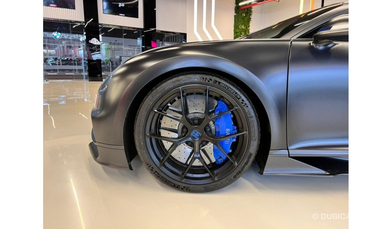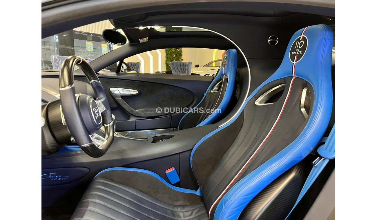 The car also features a "110 Ans Bugatti" emblem on the front grille, which pays homage to the brand's heritage.