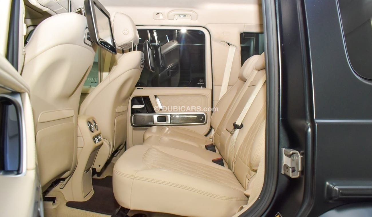 Pre owned Mercedes-Benz G 63 AMG Brabus 800 Biturbo for sale in Dubai by Luxury Lounge. 8 cylinder engine, black exterior and automatic transmission. Comes with 24″ wheels and beige interior. 56,350 kilometers on the odometer, Imported specs.