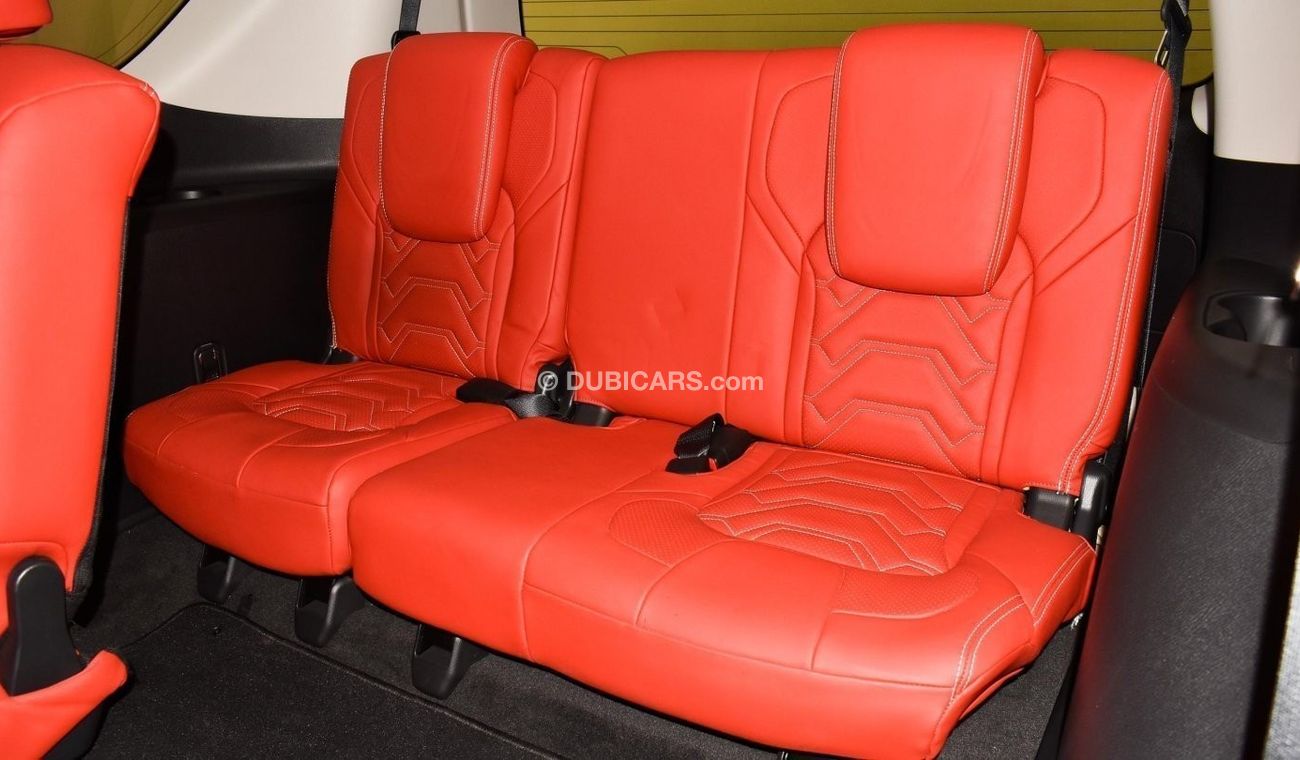 Pre-owned Nissan Patrol LE Platinium for sale in Dubai. White 2020 model, available at Al Salama Motors. This car has automatic transmission, a 8 cylinder engine, 20″ wheels and red interior. 25,000 km, GCC specs.