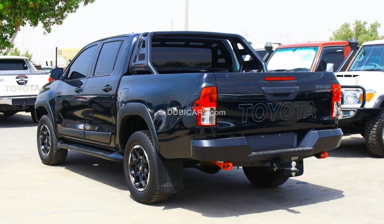 Pre-owned Toyota Hilux Rugged X for sale in Dubai. Black 2020 model, available at Aryana Motors. This car has automatic transmission, 4 cylinders, 17″ wheels and black interior. 13,000 km, Imported specs.