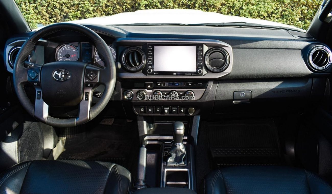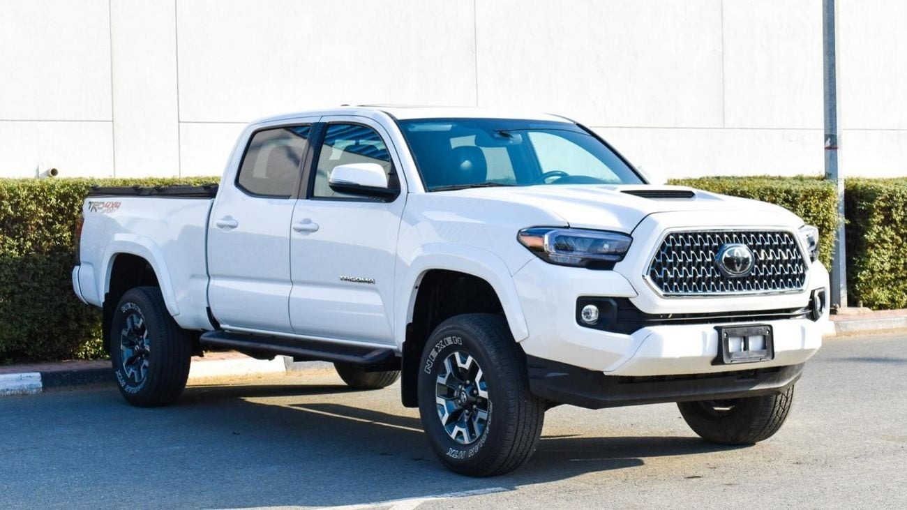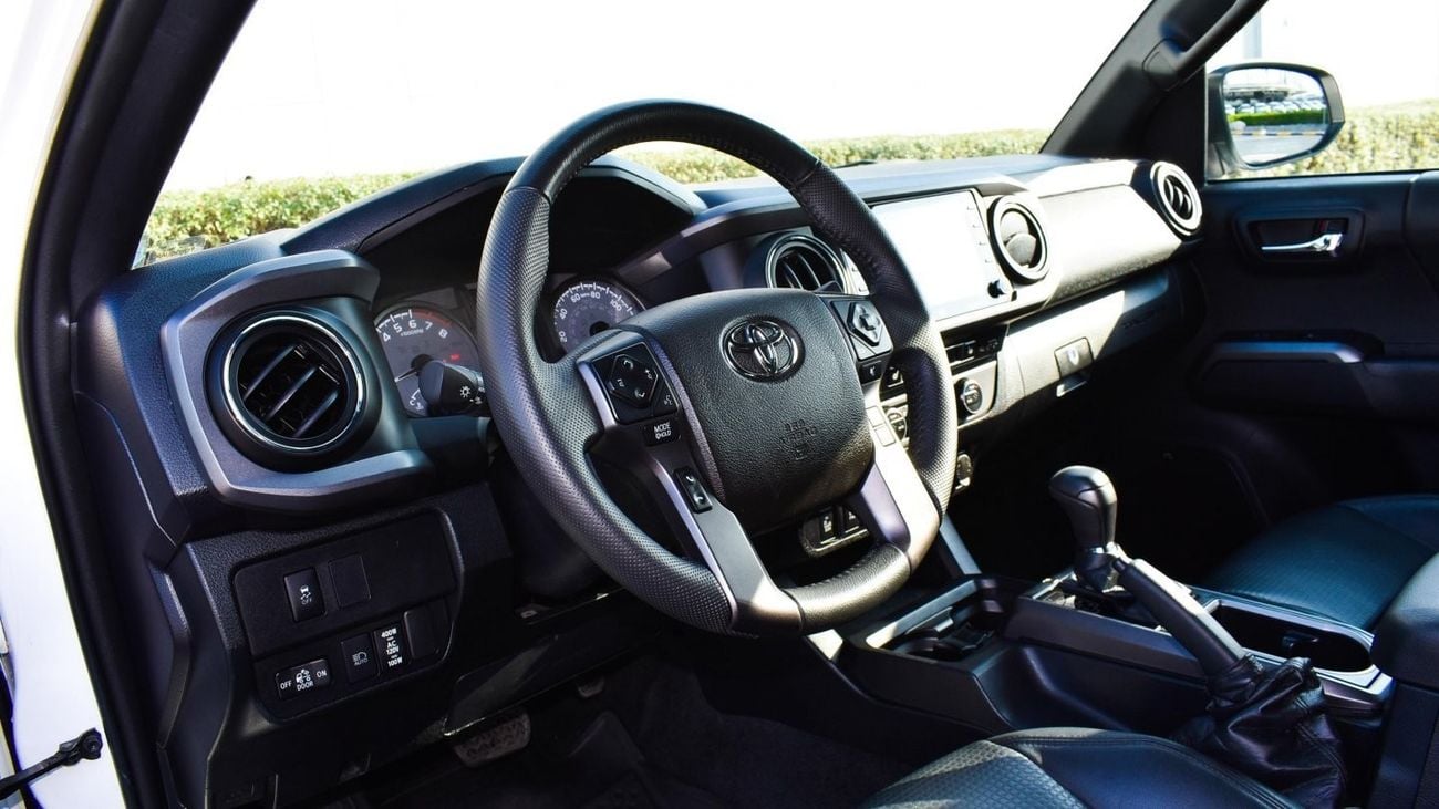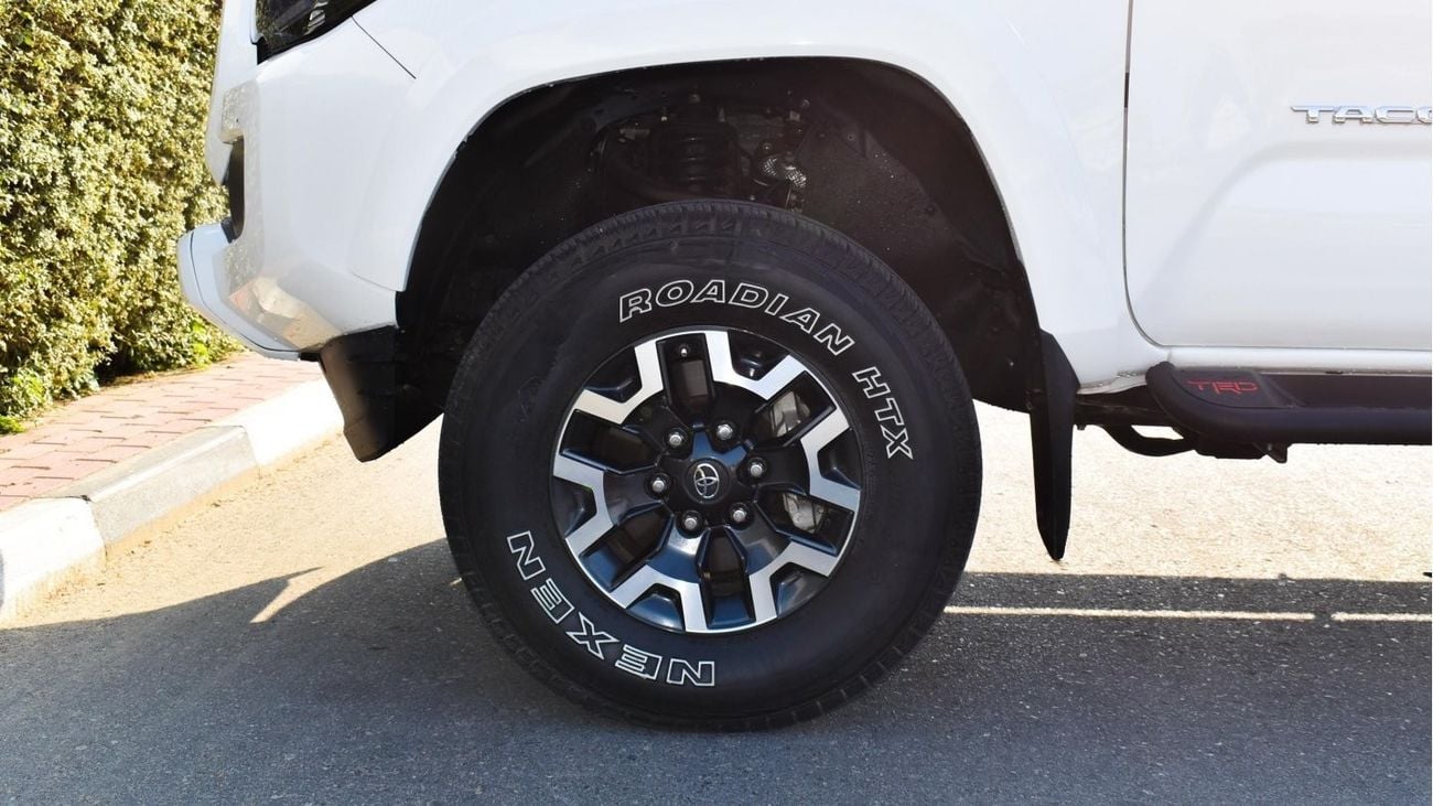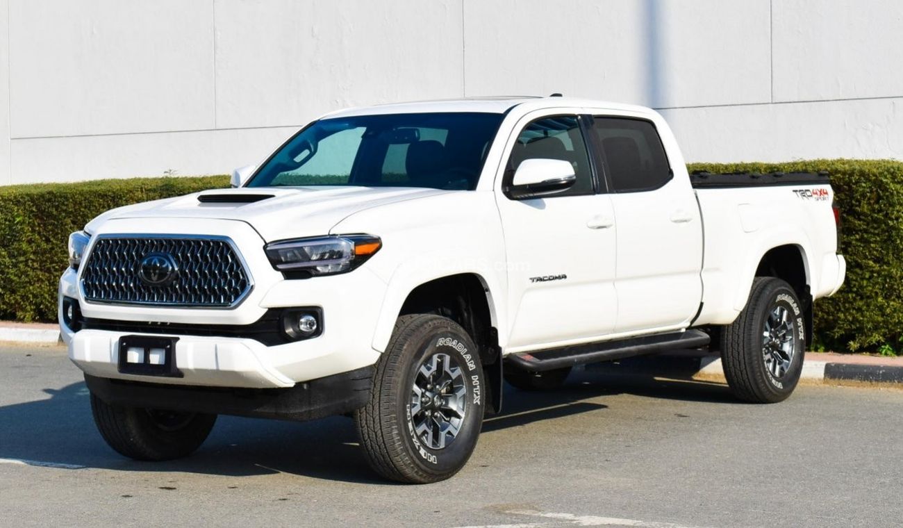 Pre-owned Toyota Tacoma for sale in Dubai. White 2020 model, available at Al Falasi Motors. This car has automatic transmission, 6 cylinders, 17″ wheels and black interior. 9,000 km, Imported specs.