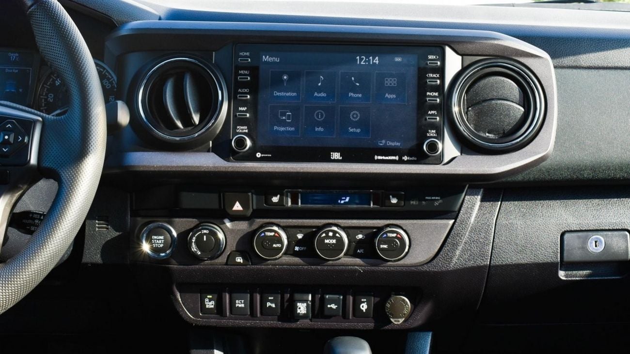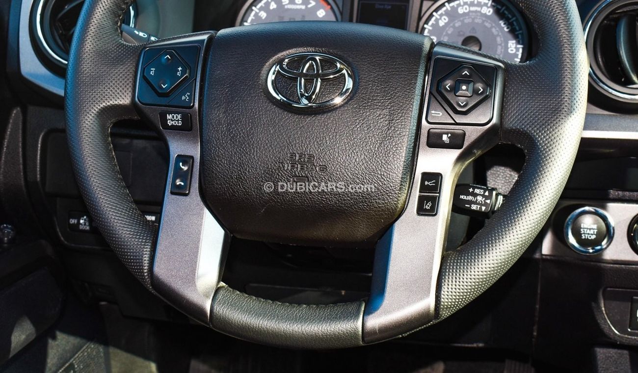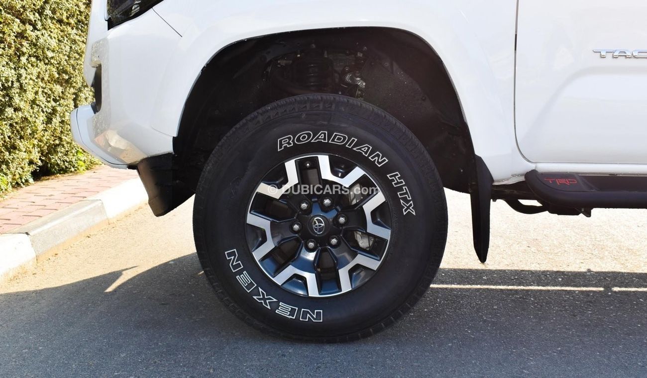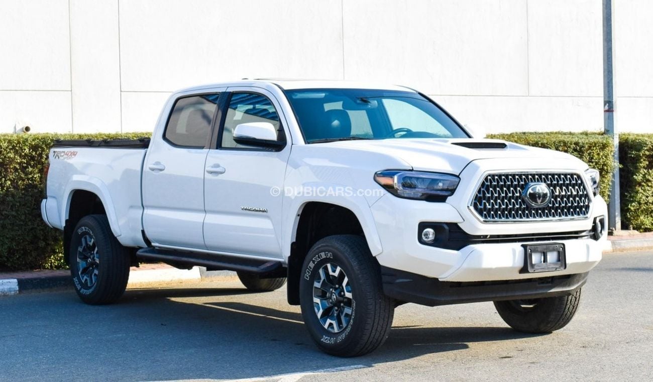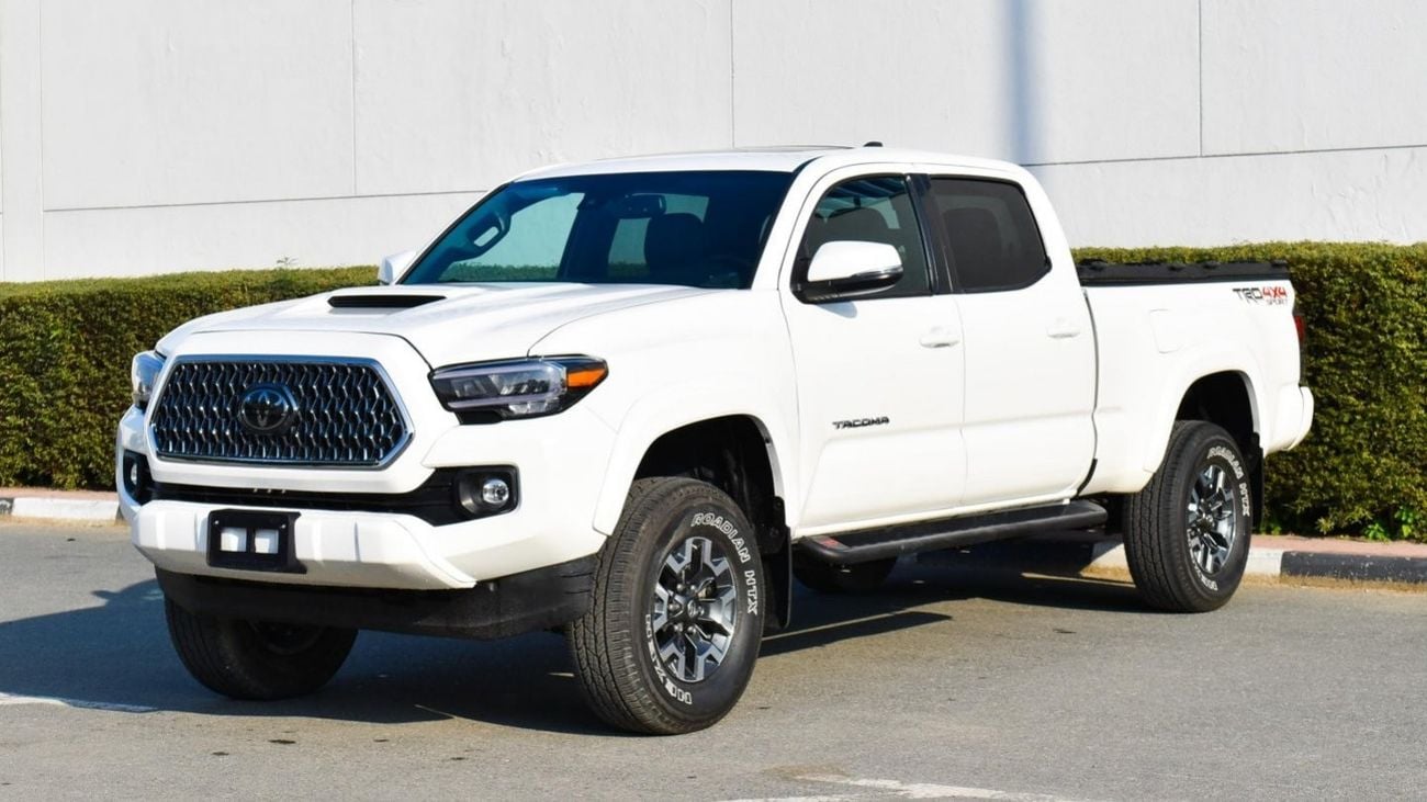 Pre-owned Toyota Tacoma for sale in Dubai. White 2020 model, available at Al Falasi Motors. This car has automatic transmission, 6 cylinders, 17″ wheels and black interior. 9,000 km, Imported specs.