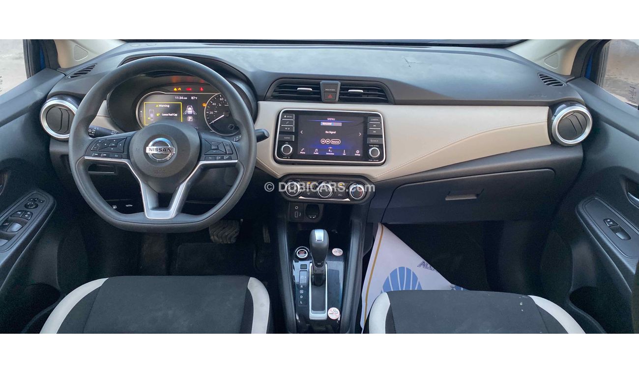 Pre-owned Nissan Versa for sale in Sharjah. Blue 2021 model, available at Halla Cars Used Cars. This car has automatic transmission, 4 cylinders, 18″ wheels and black interior. 22,000 km, Other specs.