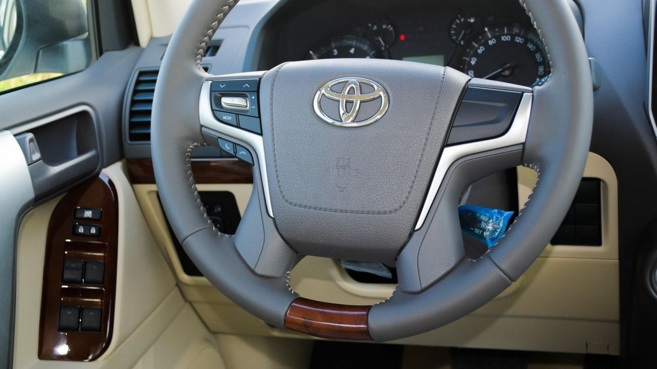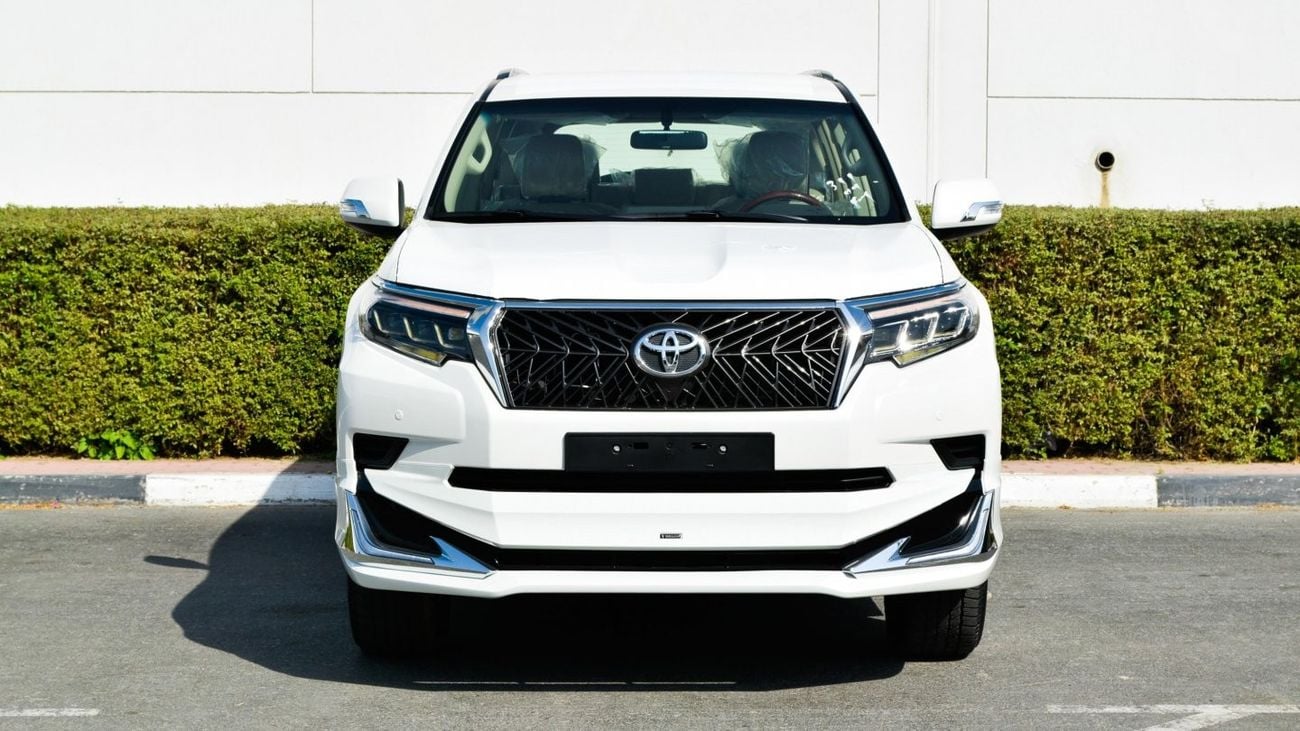 Brand new Toyota Prado VXL 4.0L V6 for sale in Dubai. White 2021 model, available at Cleopatra Motors. This car has automatic transmission, 6 cylinder engine, 17″ wheels and beige interior. GCC specs.