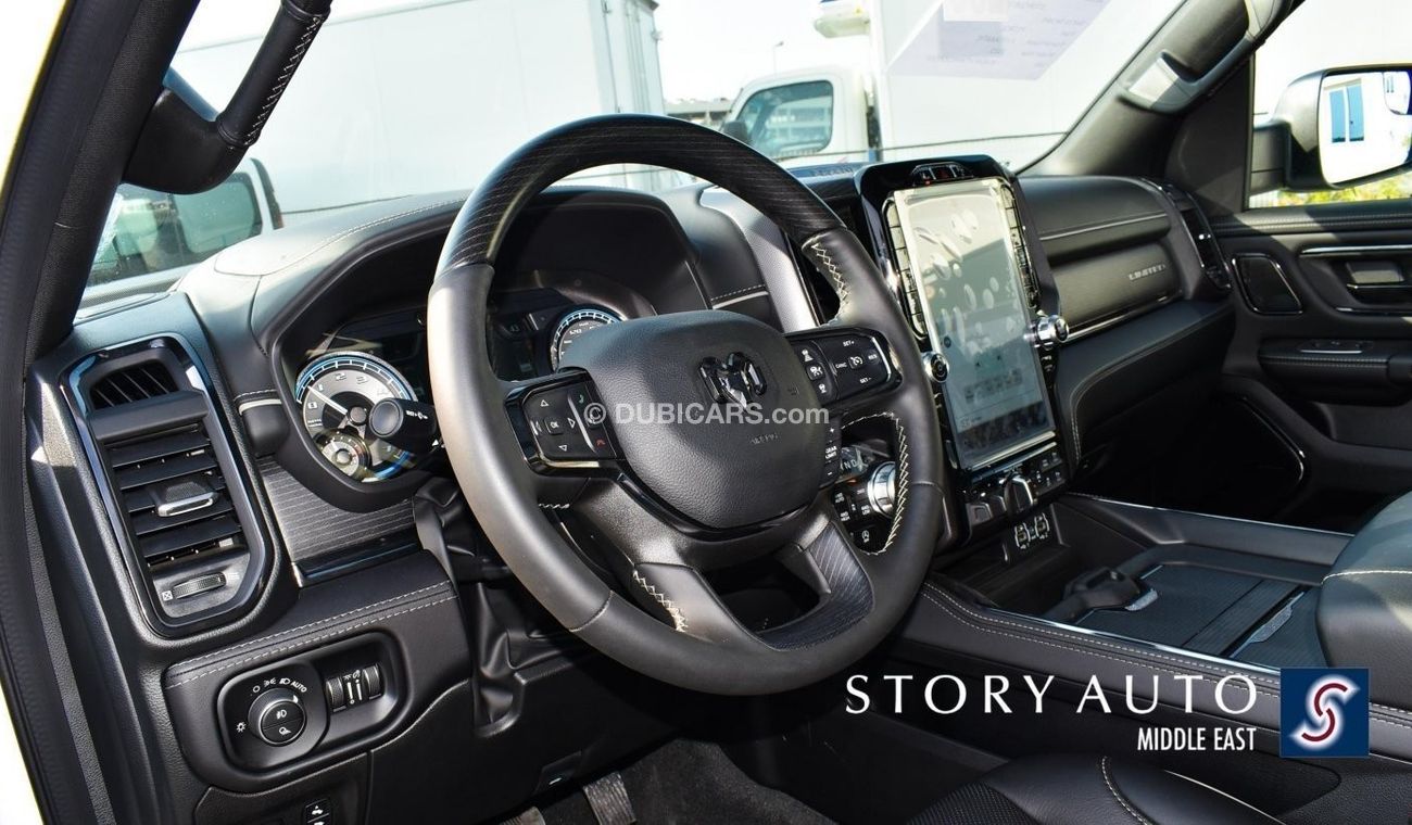 New 2022 Dodge Ram 1500 DC 5.7L HEMI V8 eTorque Limited 4WD Aut. for sale in Dubai. Available from Story Auto Middle East FZE. Automatic transmission, 8-cylinder engine, 22″ wheels, and black interior. Never driven, Imported specs.
