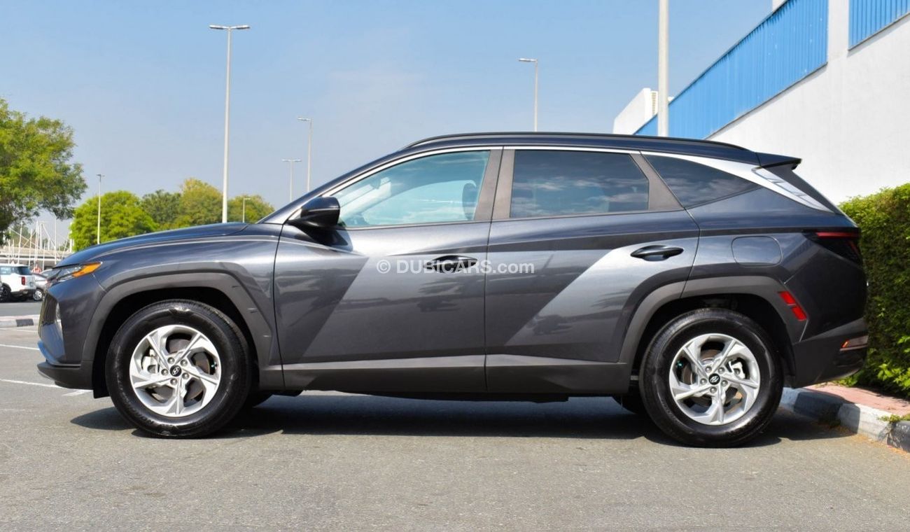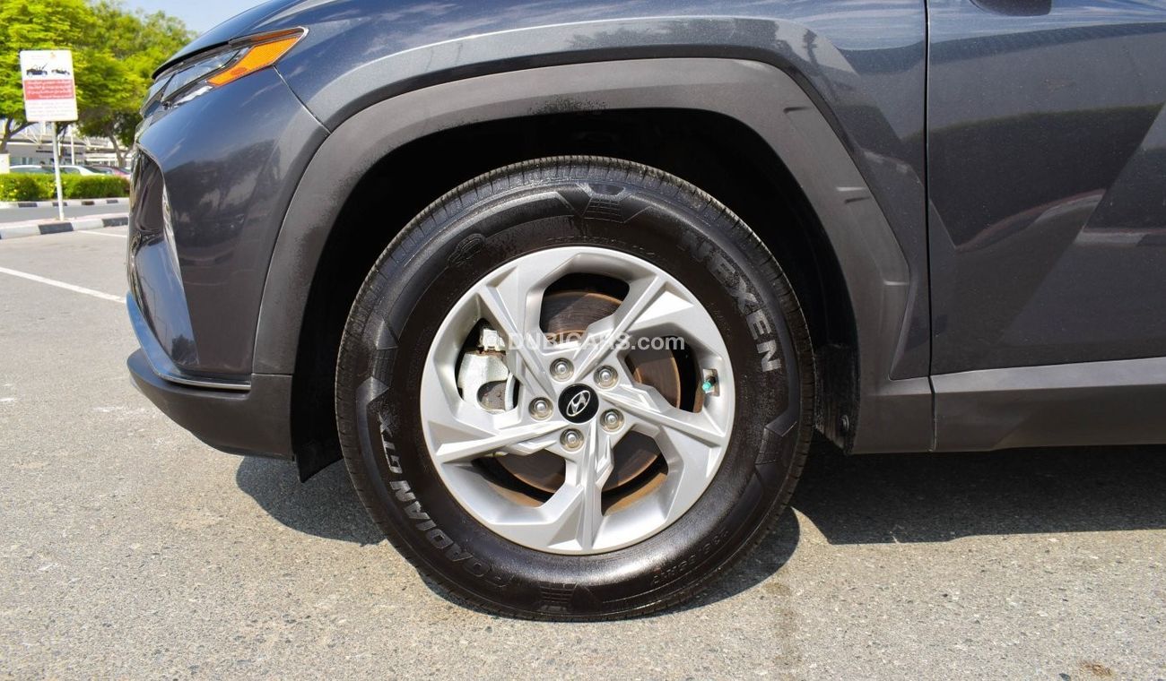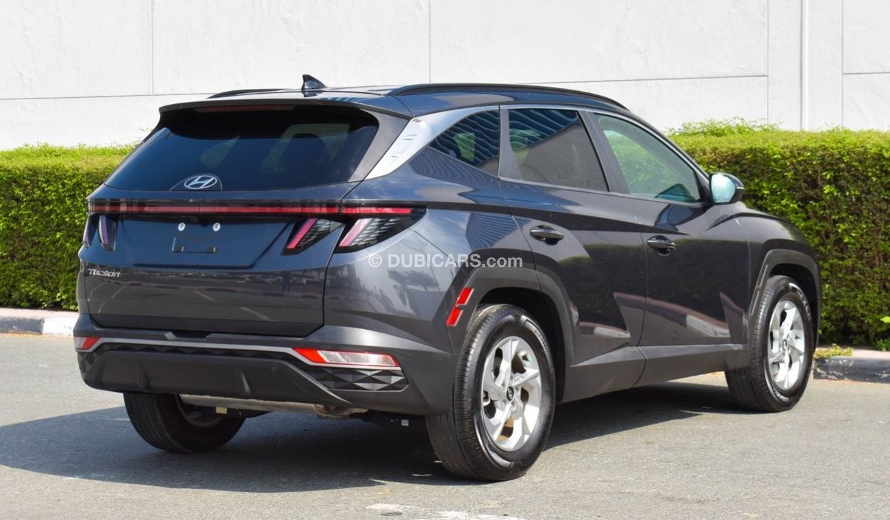 Pre-owned Hyundai Tucson for sale in Dubai. Grey/Silver 2022 model, available at Al Faisal Motors LLC. This car has automatic transmission, 4 cylinders, 17″ wheels and black interior. 16,000 km, Imported specs.