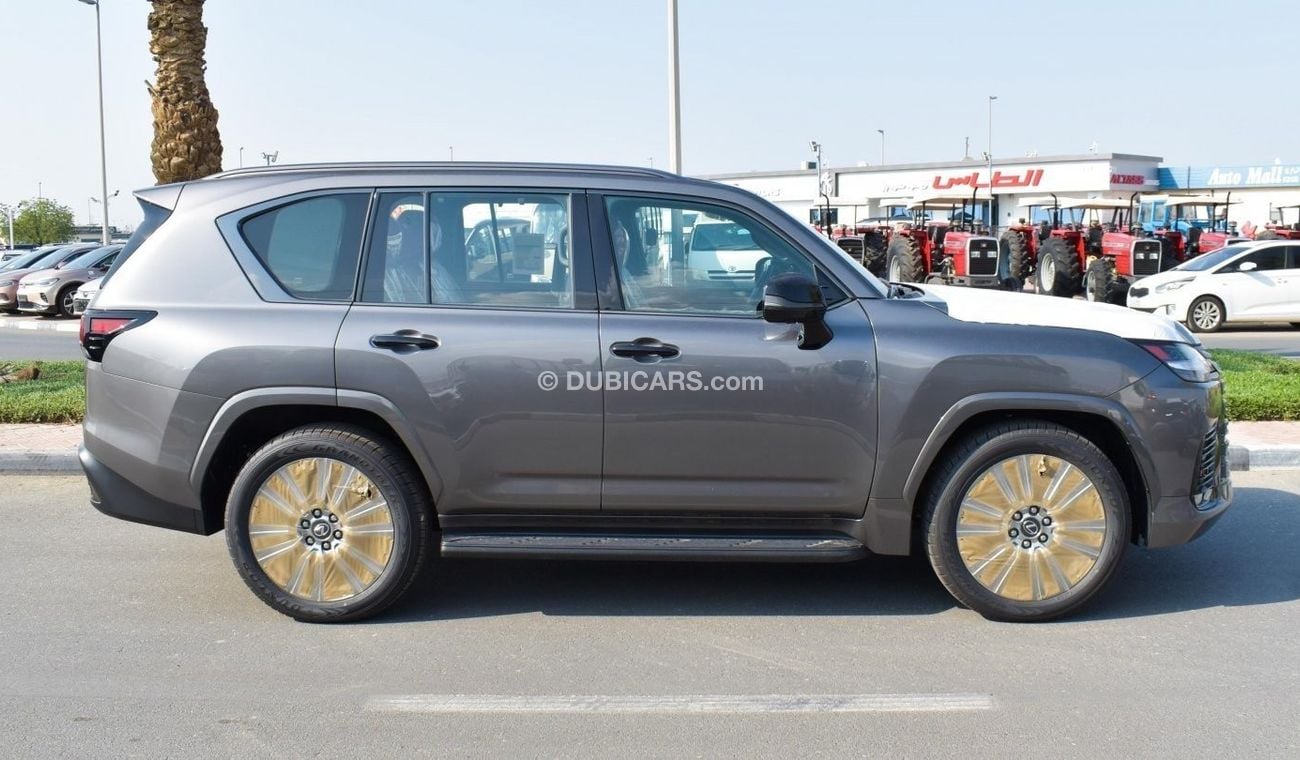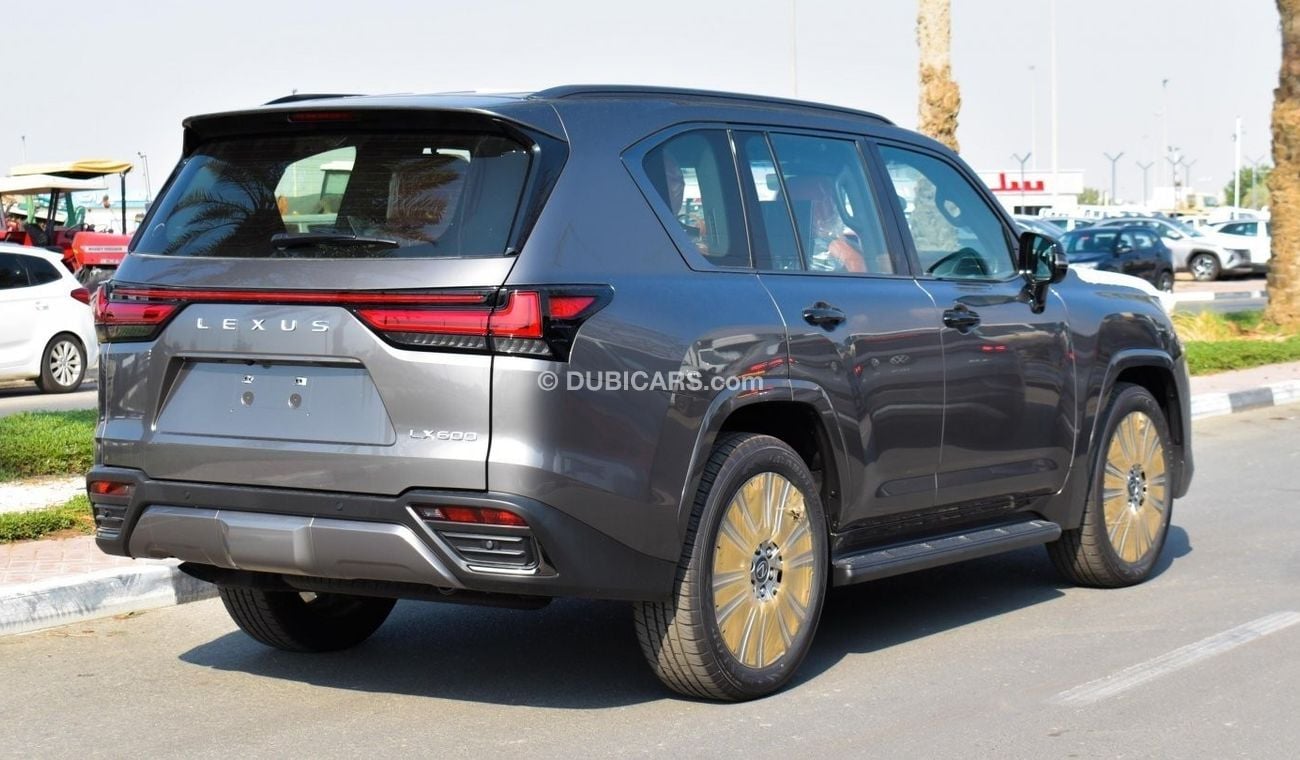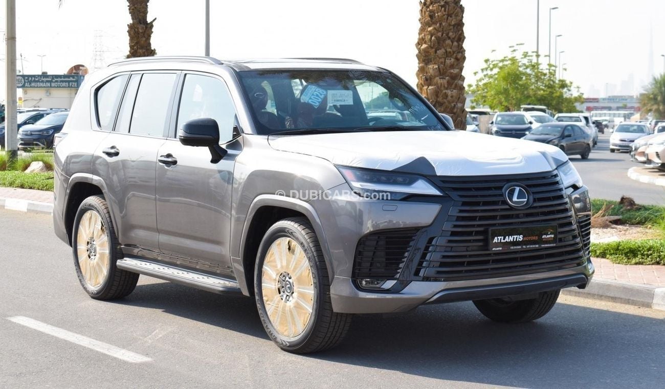 New Lexus LX 600 3.5 L V6 VIP BLACK EDDITION for sale from Atlantis Motors FZE in Dubai. Grey/Silver 2022 model. The car has automatic gearbox, 6 cylinder engine, 22″ wheels and orange interior. GCC specs.