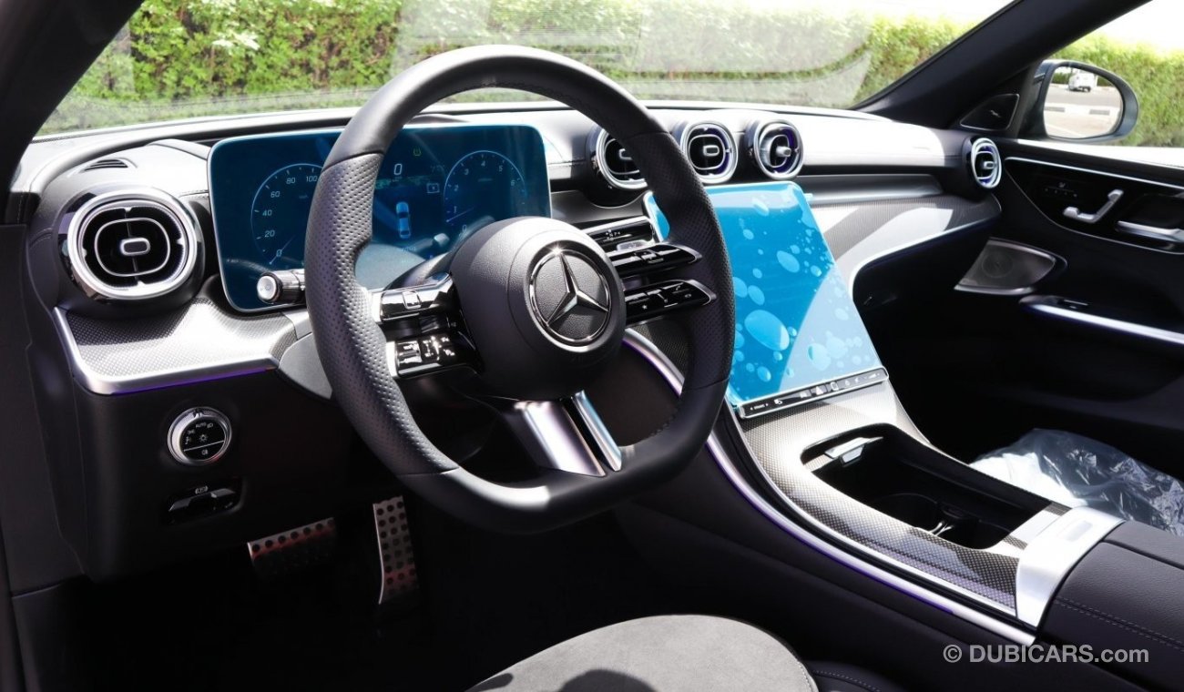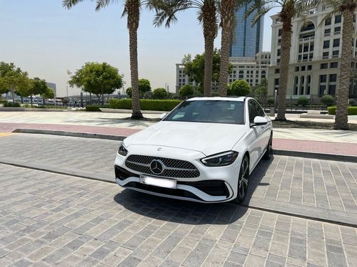 New Mercedes-Benz C 300 4matic for sale in Dubai with finance options. Grey/Silver 2022 model, available at Dresden Used Cars. This car has automatic gearbox, a 4 cylinder engine, 19″ wheels and black interior. The car has GCC specs.