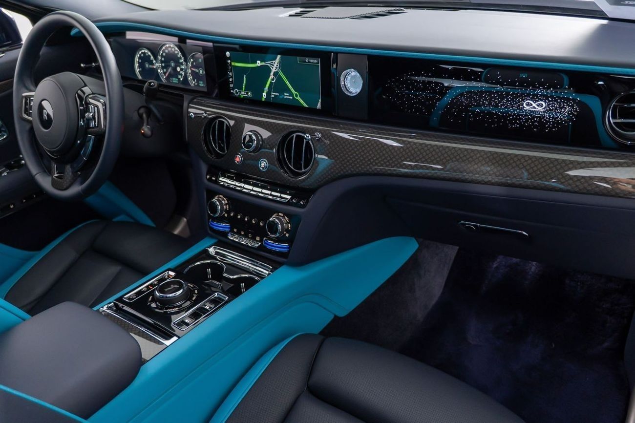 Inside, the Ghost Black Badge is a sanctuary of luxury and technology. The cabin is adorned with the finest materials, including hand-stitched leather upholstery and meticulously crafted material. The advanced infotainment system includes a high-resolution display, offering seamless connection with features like Apple CarPlay and a premium audio system that provides immersive listening experience.