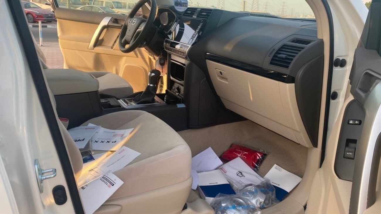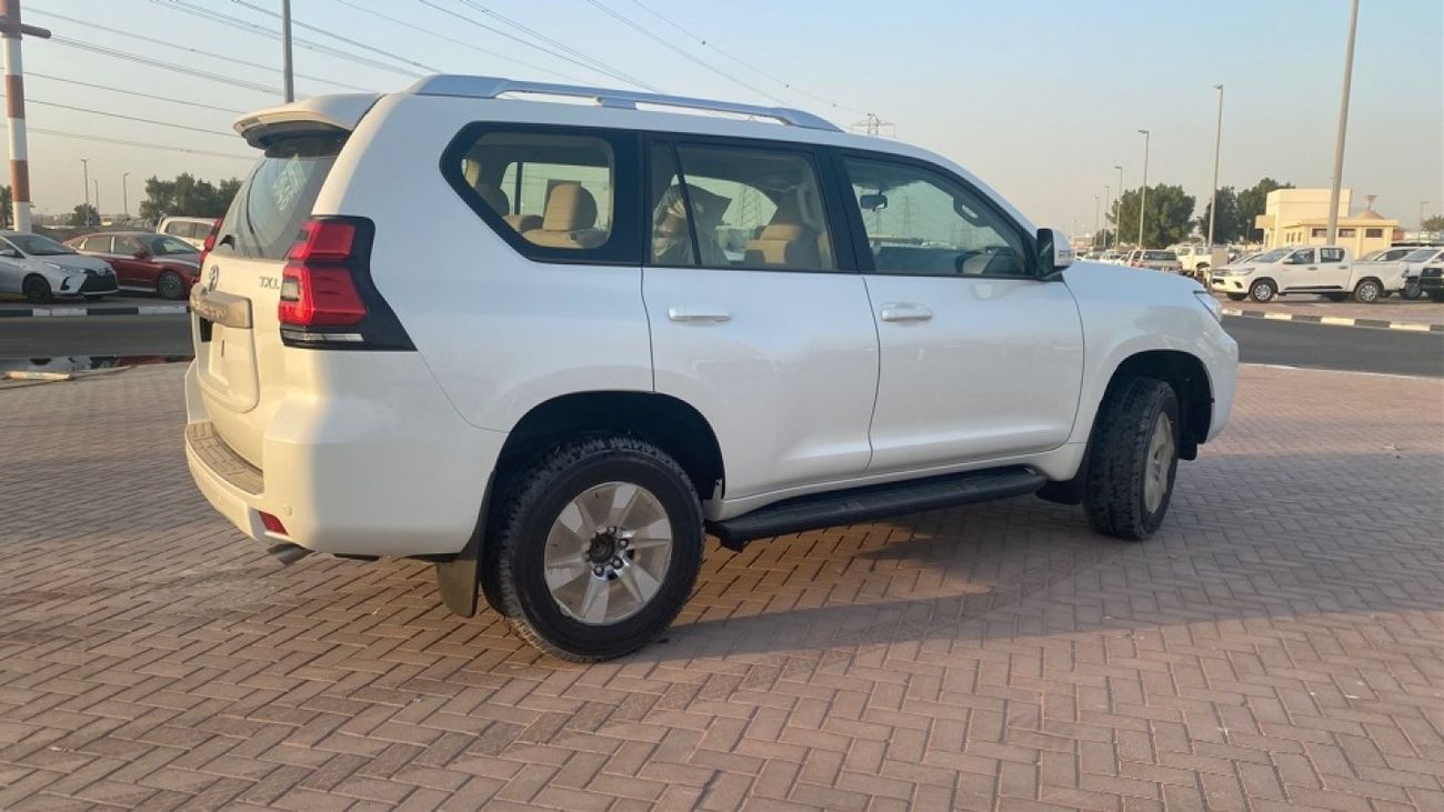 New Toyota Prado 2.7L TXL WITHOUT SUN ROOF for sale from EG Auto FZ LLC in Dubai. White 2022 model. The car has automatic gearbox, 4 cylinder engine, 17″ wheels and beige interior. GCC specs.