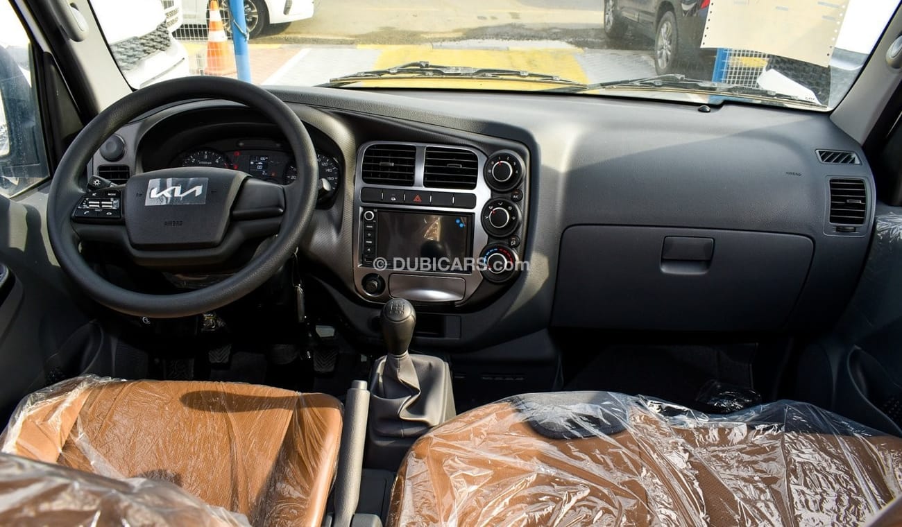 New Kia K2700 Diesel for sale from Najem Motors FZE in Dubai. White 2023 model. The car has manual gearbox, 4 cylinder engine, 15″ wheels and brown interior. Imported specs.