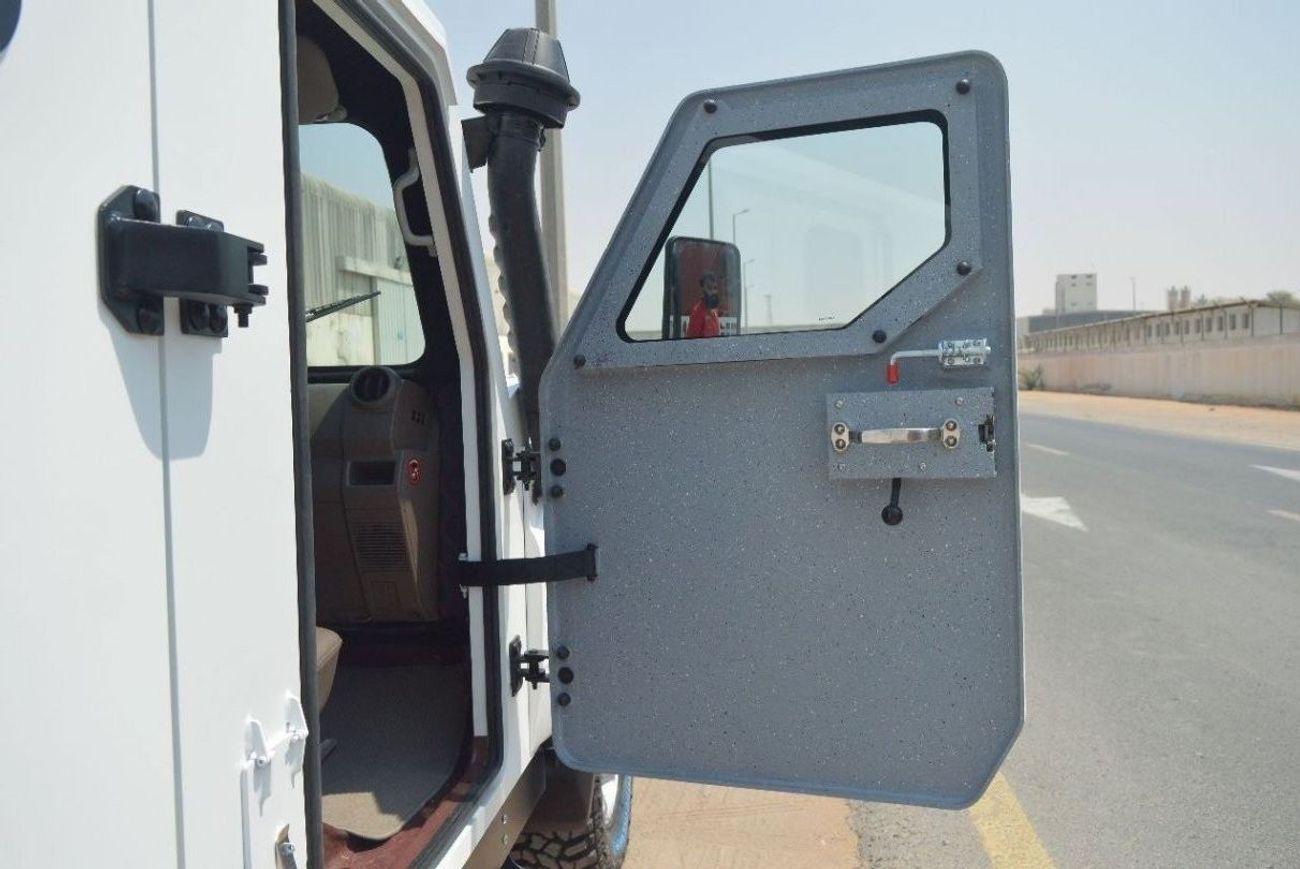 New Toyota Land Cruiser Hard Top hard top for transfer money for sale from Mohamed Hakim Motors in Dubai. White 2023 model. The car has manual gearbox, 6 cylinder engine, 17″ wheels and beige interior. GCC specs.