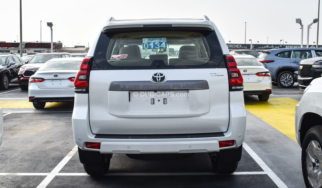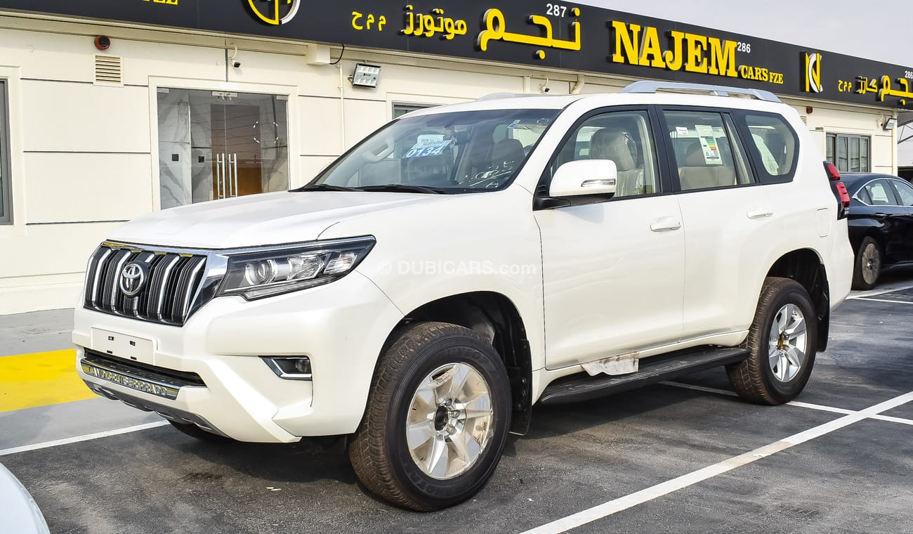 New Toyota Prado TXL 2.7L Petrol for sale from GT Motors in Dubai. White 2023 model. The car has automatic gearbox, 4 cylinder engine, 17″ wheels and beige interior. GCC specs.