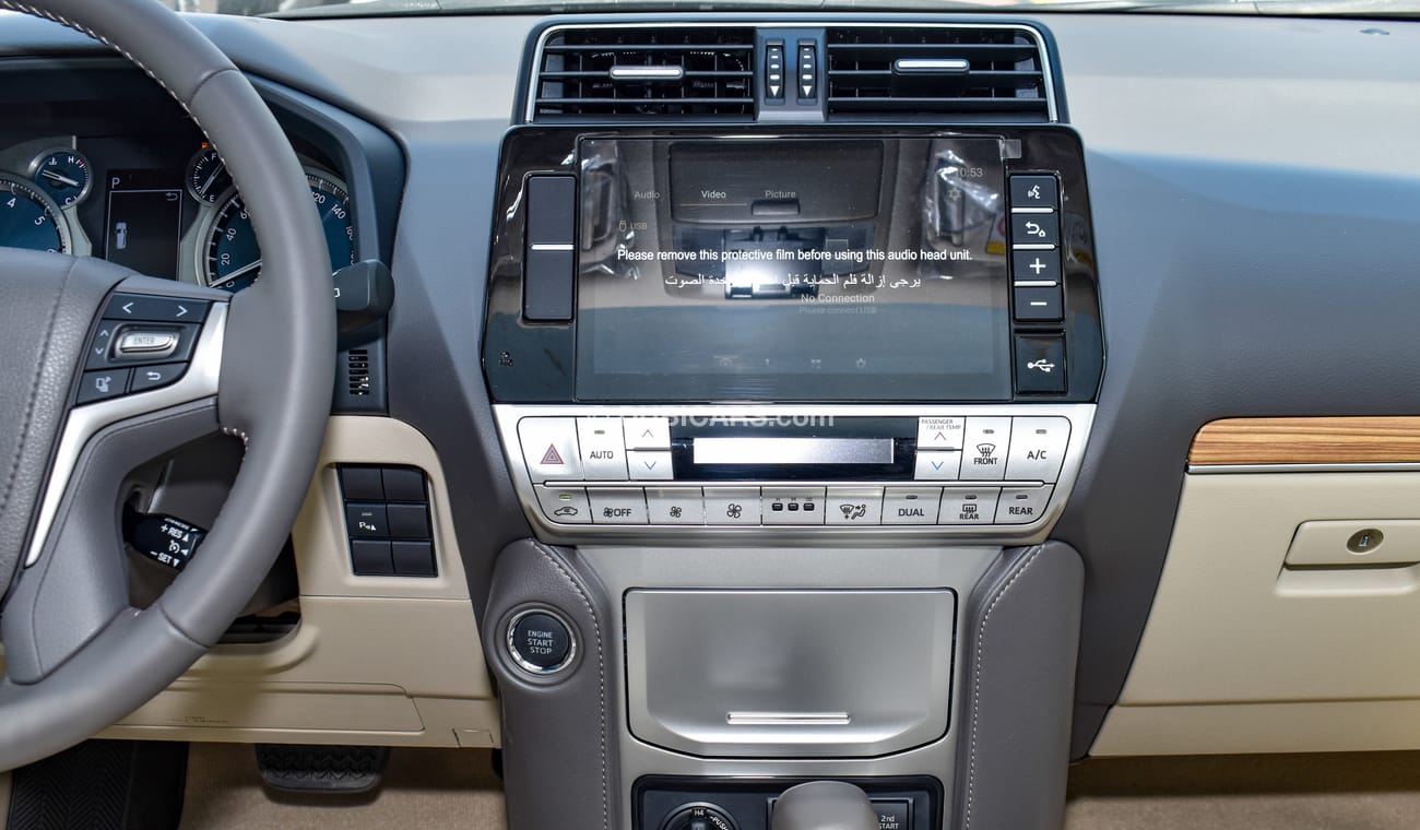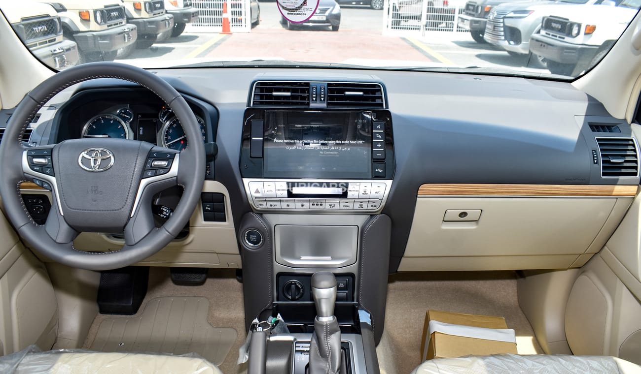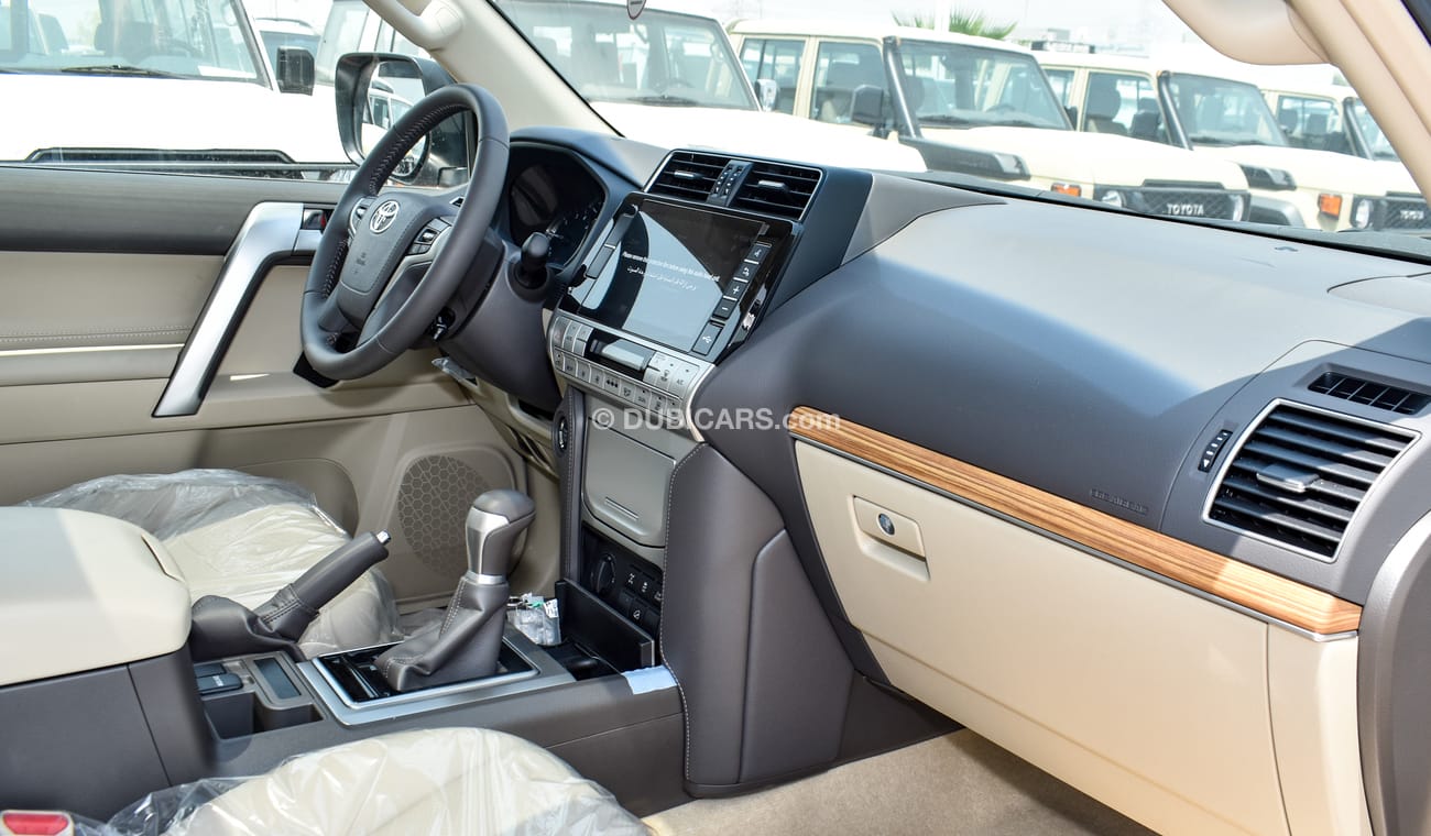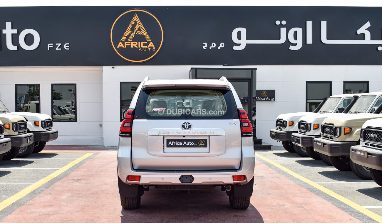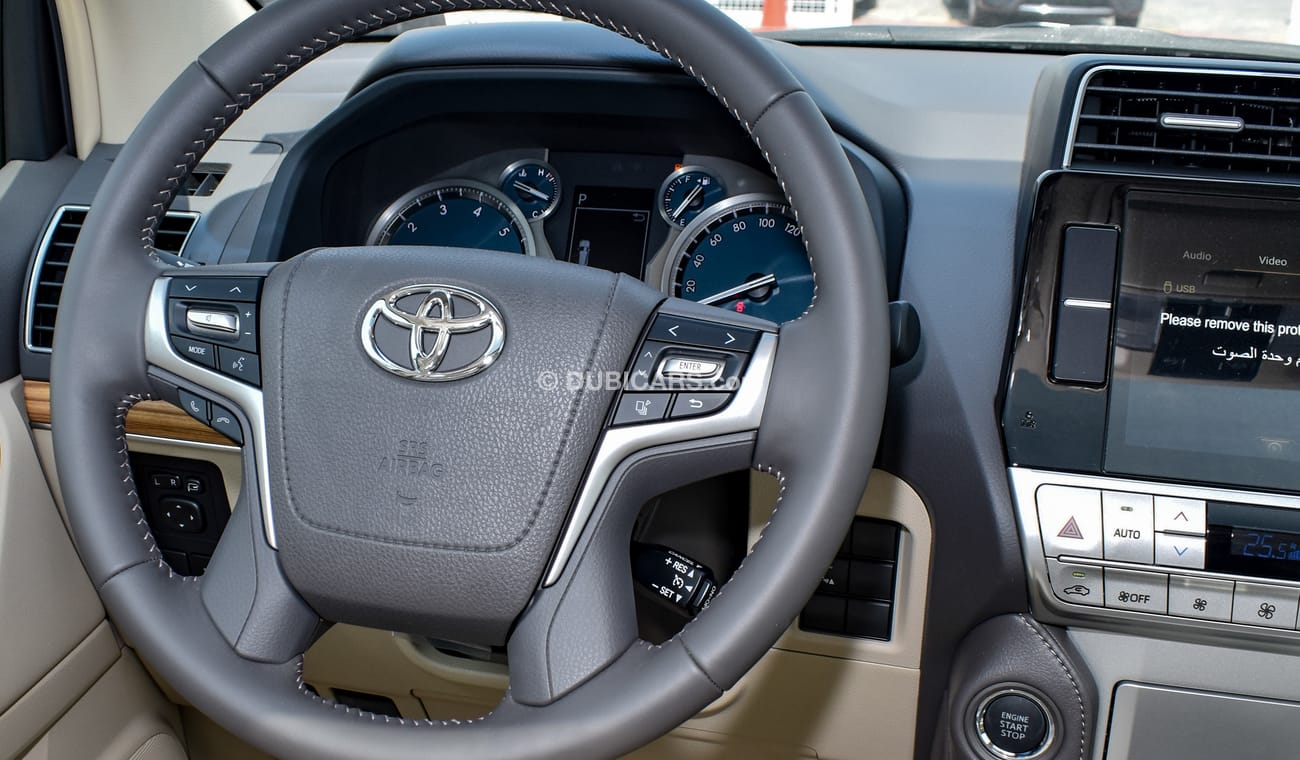 Brand new Toyota Prado VX for sale in Dubai. Silver 2023 model, available at Africa Auto. This car has automatic transmission, 6 cylinder engine, 19″ wheels and beige interior. GCC specs.