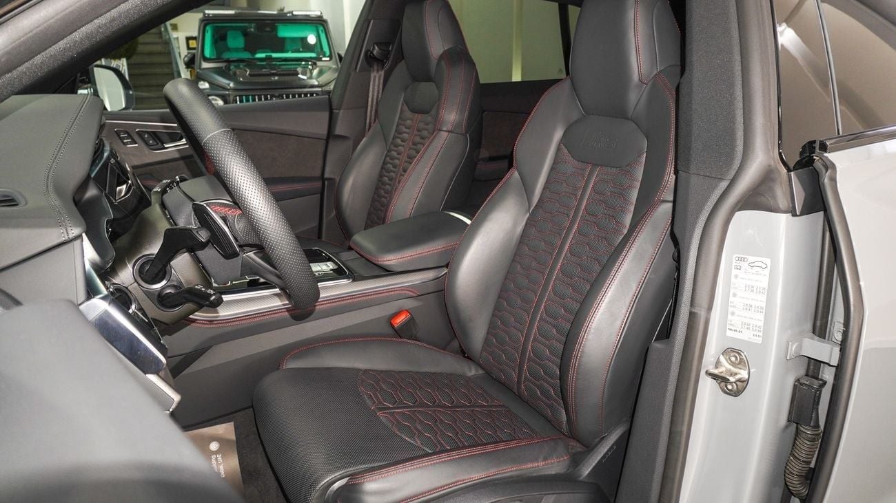 Pre owned Audi RS Q8 for sale in Dubai by Luxury Lounge Car Showroom. 8 cylinder engine, grey exterior and automatic transmission. Comes with 23″ wheels and black interior. 19,000 kilometers on the odometer, European specification