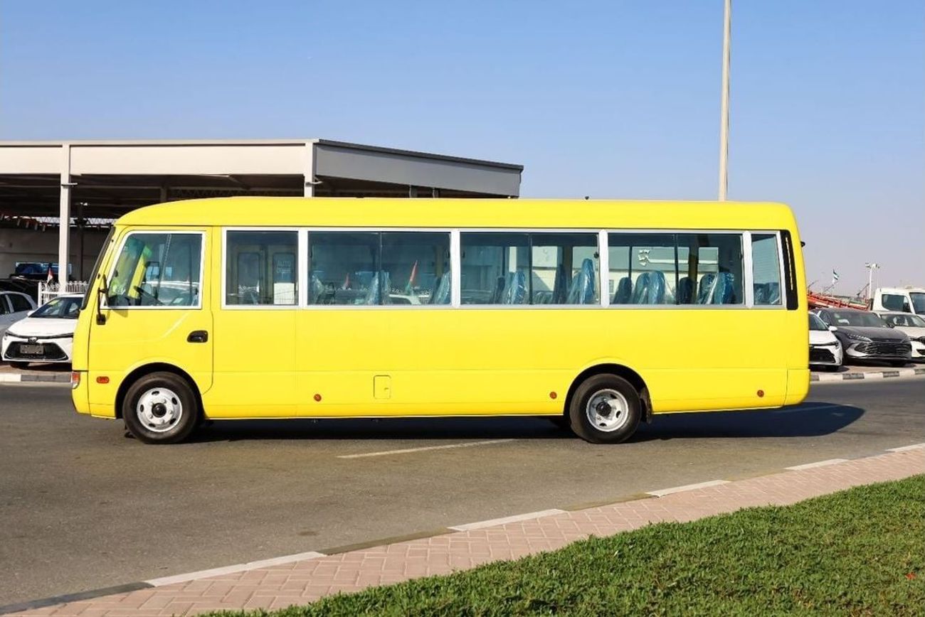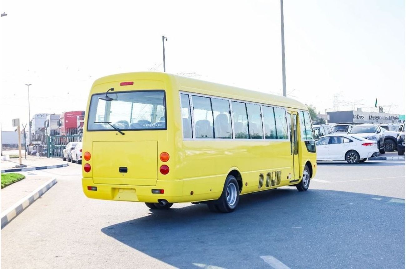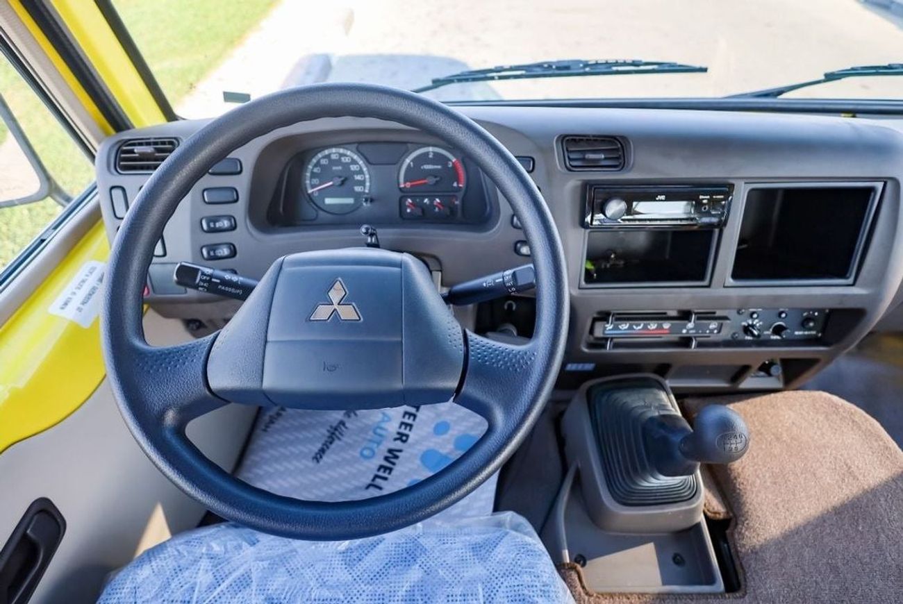 Mitsubishi Rosa Bus 26 Seater EURO-IV (including Driver’s seat), 4899cc (Diesel) 4 Cylinder, 4x2 Drive system, Front Engine Bus, Max. Output: 180ps/2,700 rpm, Max. Torque: 54 kgf-m/1,600 rpm, Max Speed 125km/hr, Overall Length: 7730mm, Overall Width: 2010mm, Overall Height: 2630mm, Wheelbase: 4550mm, Drum brakes, Manual Transmission, Power Steering, Interior Equipment : ABS BRAKE SYSTEM, Driver’s airbag, Grab rail on ceiling, Parcel racks, seatbelts for all, Rear under view mirror, Cigarette lighter, Curtain, Fabric Seats, Sun visor for Driver & front passenger, Digital Clock , Reverse Warning Buzzer, step lamp, Exterior Equipment : Heat absorbing green glass, With rear wiper, Halogen headlamps, Lockable fuel tank cap, Rear High mount stop lamp, Front fog lamp, Exhaust brake, Standard tool & Jack, Tire: 205/85R16-117/115LLT(Front), Automatic folding type door(vacuum type), Fuel tank capacity 100 litres