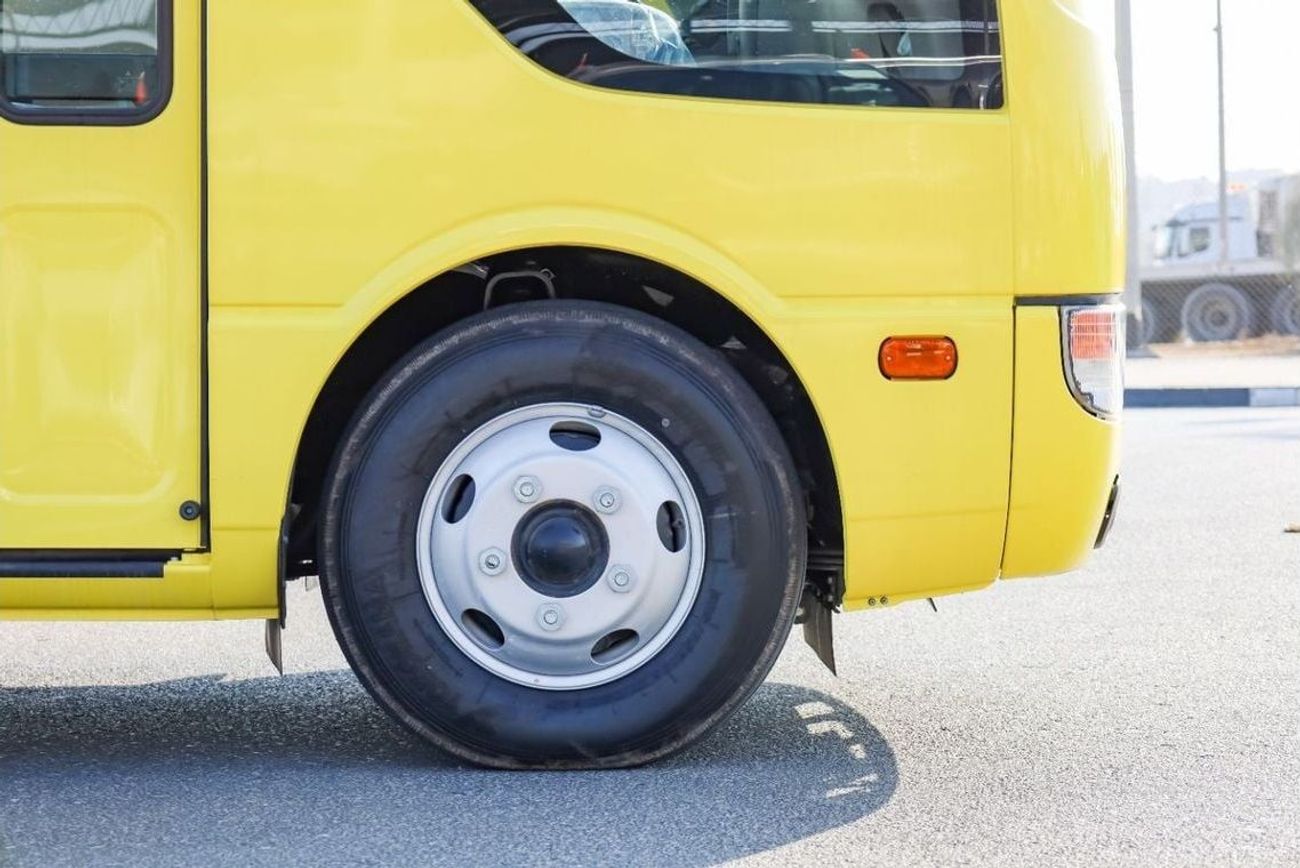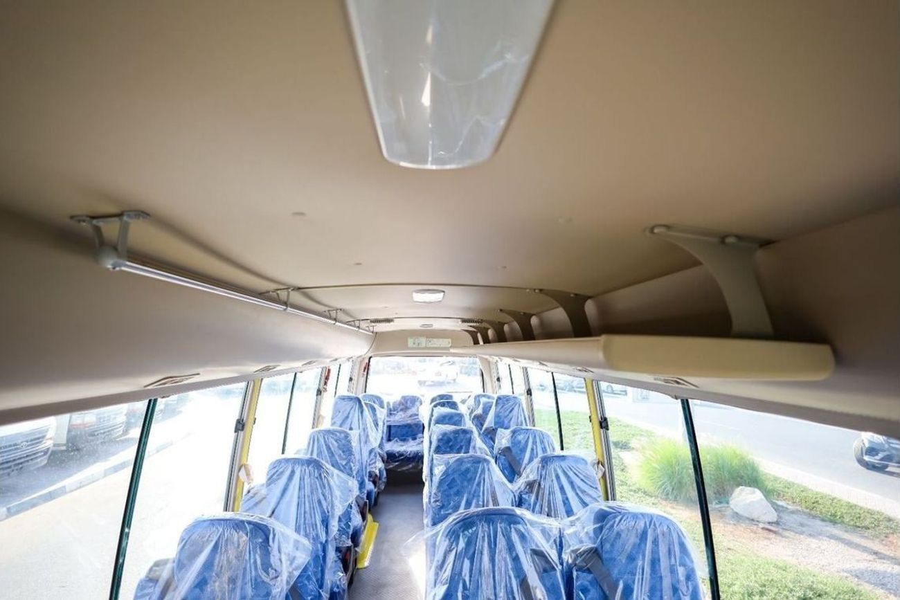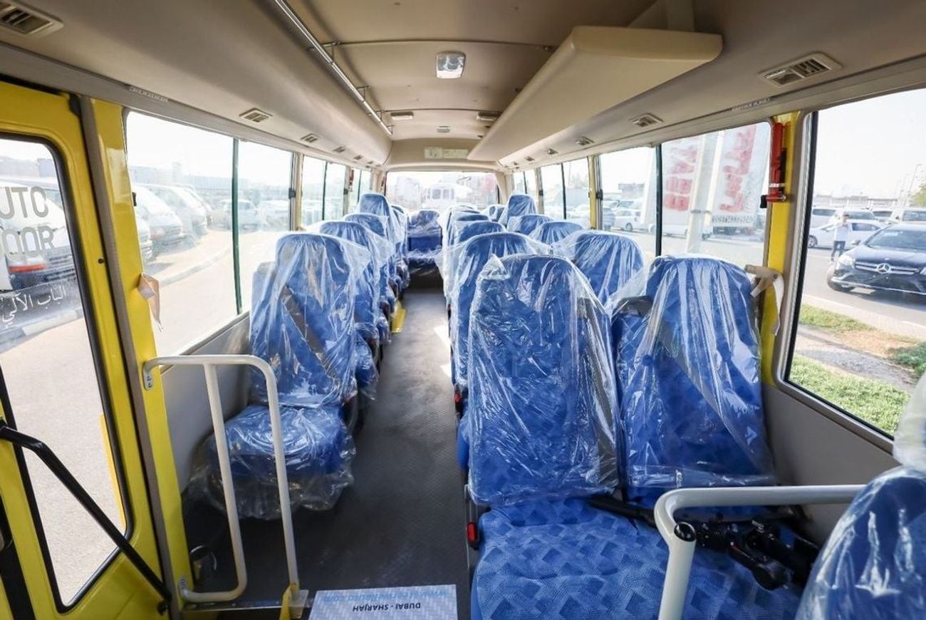 Mitsubishi Rosa Bus 26 Seater EURO-IV (including Driver’s seat), 4899cc (Diesel) 4 Cylinder, 4x2 Drive system, Front Engine Bus, Max. Output: 180ps/2,700 rpm, Max. Torque: 54 kgf-m/1,600 rpm, Max Speed 125km/hr, Overall Length: 7730mm, Overall Width: 2010mm, Overall Height: 2630mm, Wheelbase: 4550mm, Drum brakes, Manual Transmission, Power Steering, Interior Equipment : ABS BRAKE SYSTEM, Driver’s airbag, Grab rail on ceiling, Parcel racks, seatbelts for all, Rear under view mirror, Cigarette lighter, Curtain, Fabric Seats, Sun visor for Driver & front passenger, Digital Clock , Reverse Warning Buzzer, step lamp, Exterior Equipment : Heat absorbing green glass, With rear wiper, Halogen headlamps, Lockable fuel tank cap, Rear High mount stop lamp, Front fog lamp, Exhaust brake, Standard tool & Jack, Tire: 205/85R16-117/115LLT(Front), Automatic folding type door(vacuum type), Fuel tank capacity 100 litres