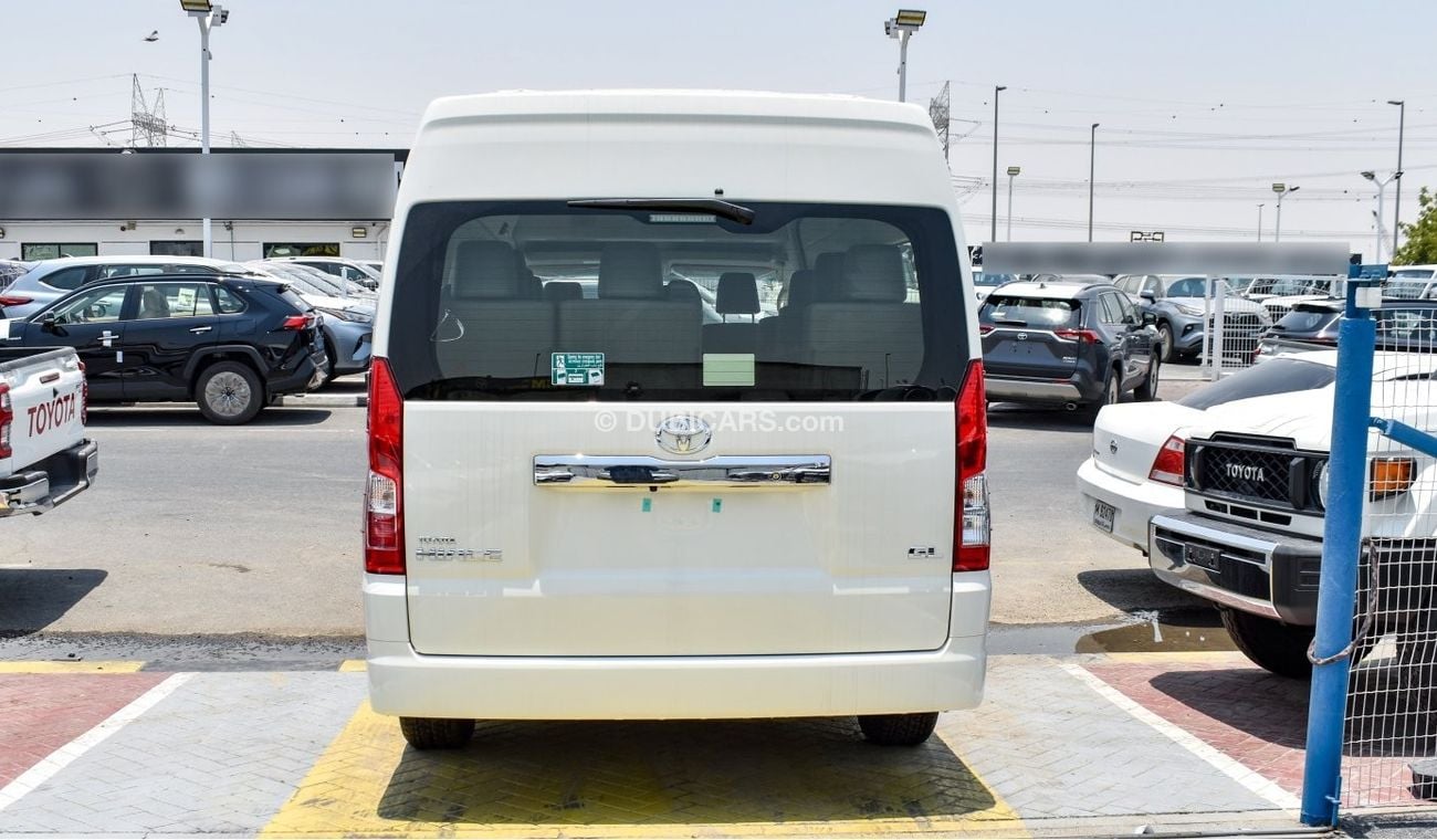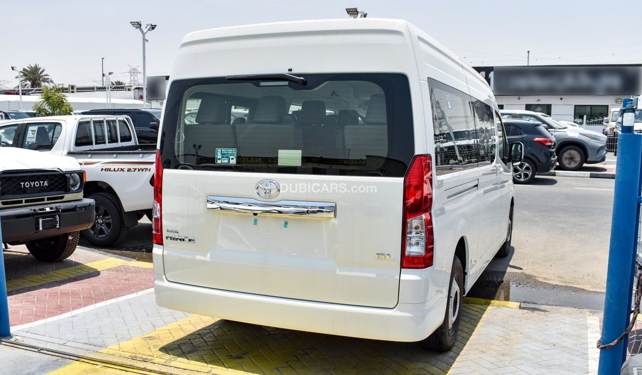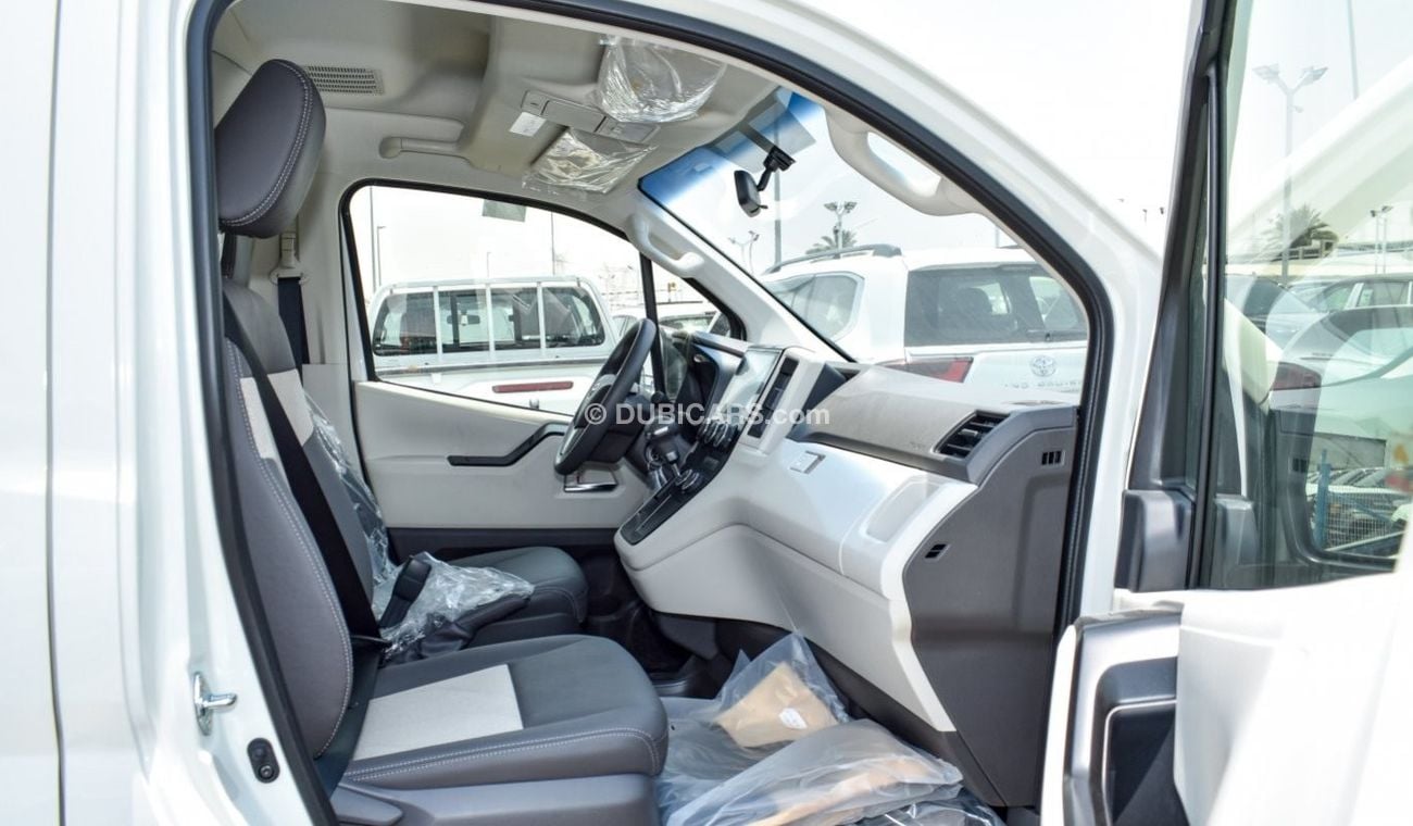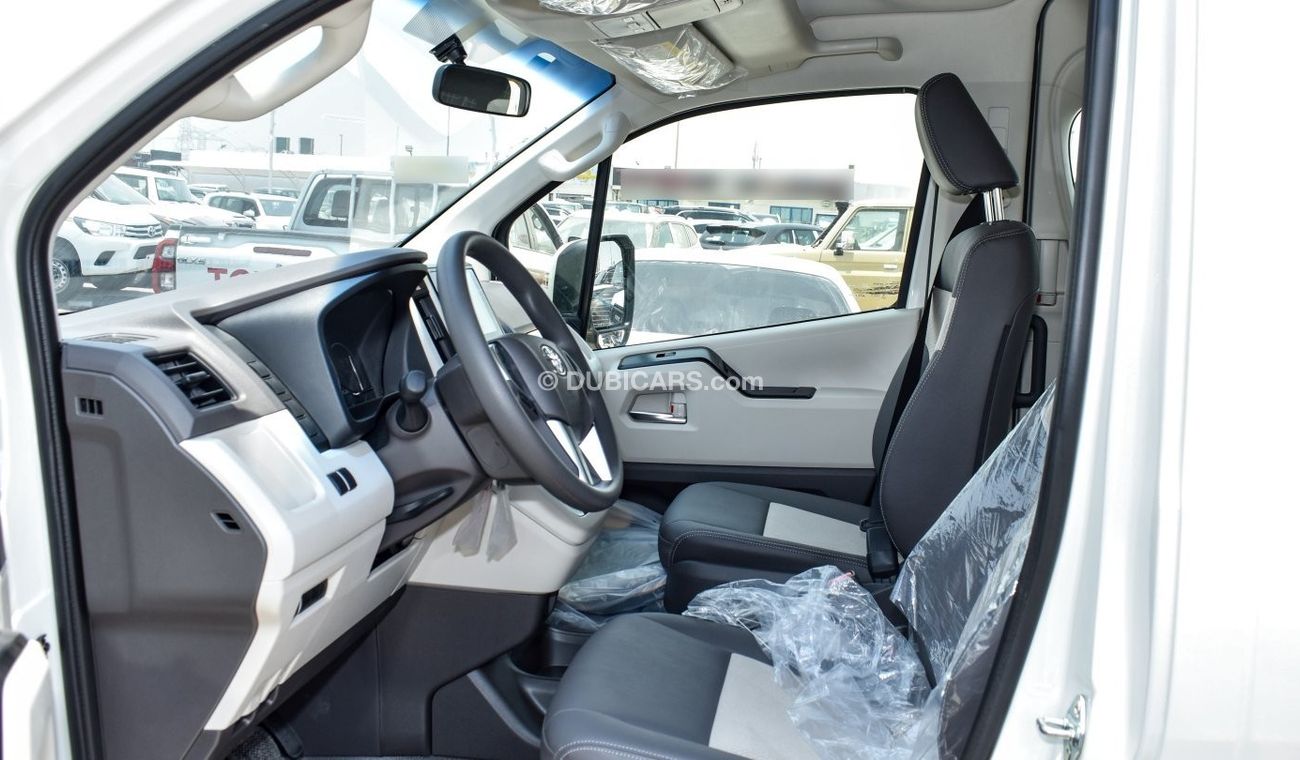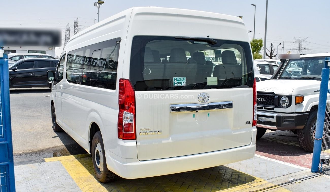 New Toyota Hiace GL for sale from Najem Motors FZE in Dubai. White 2024 model. The car has automatic gearbox, 6 cylinder engine, 16″ wheels and beige interior. GCC specs.