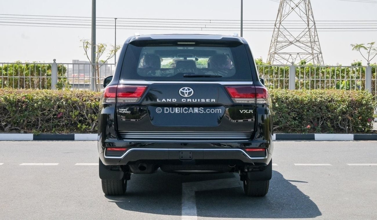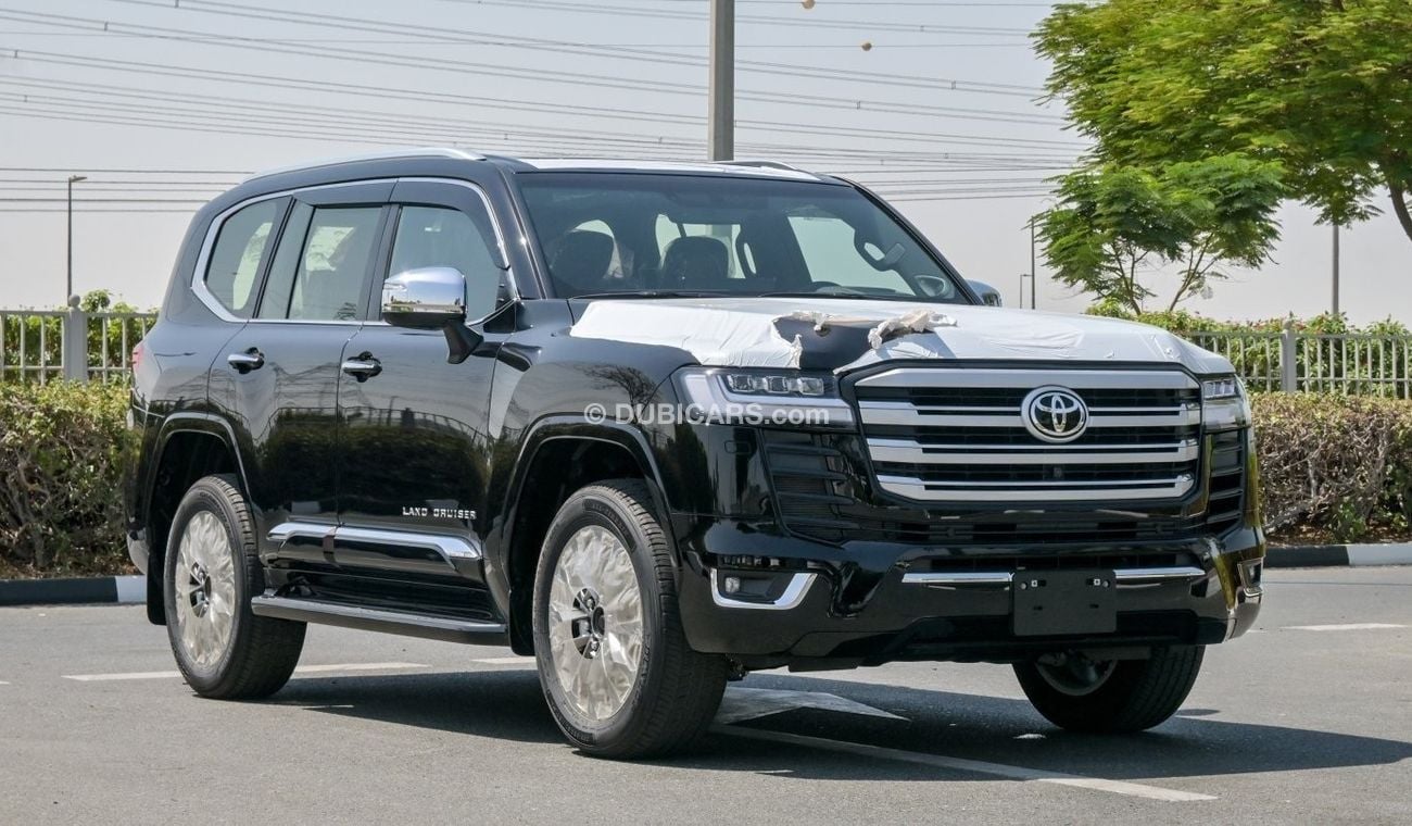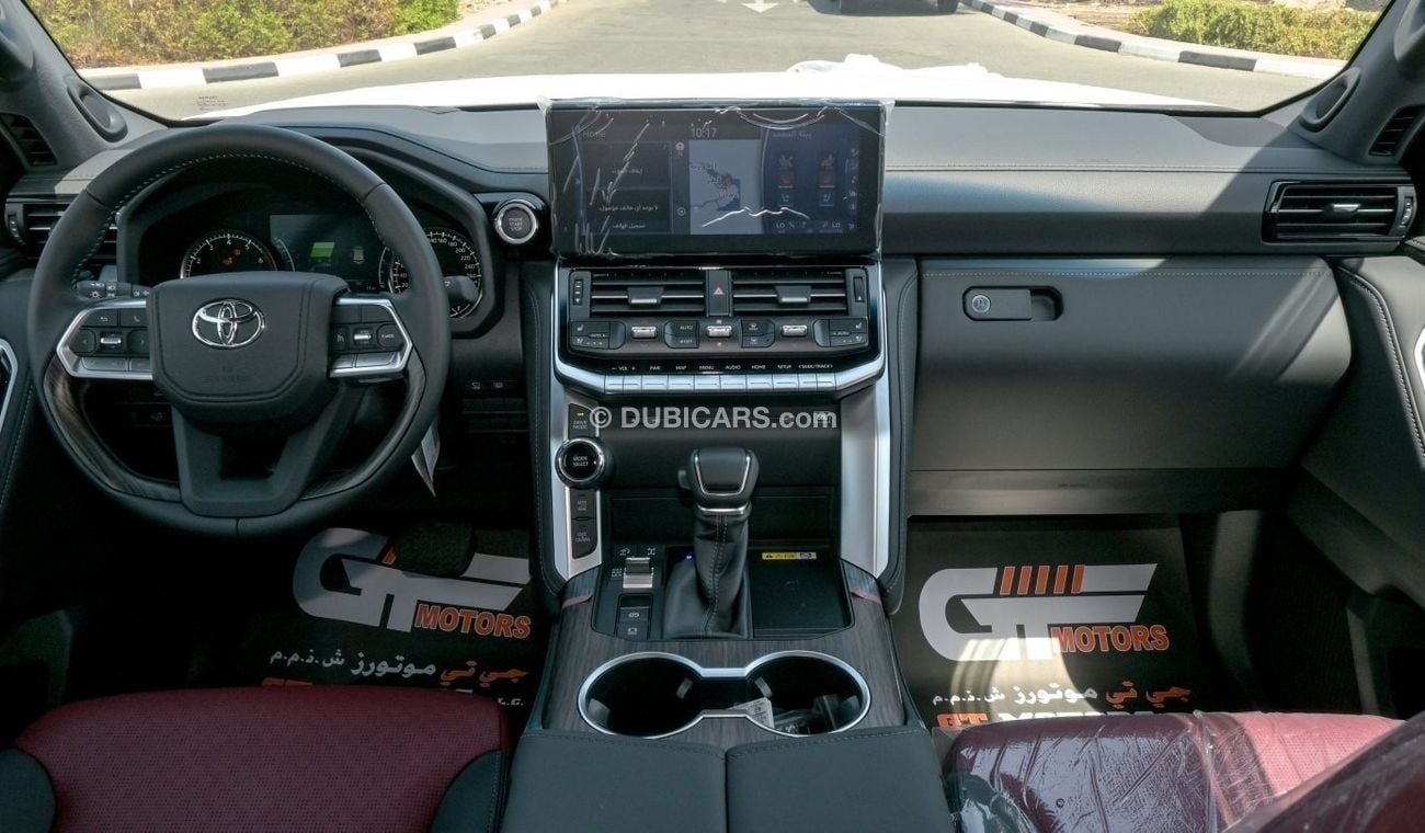 Brand new Toyota Land Cruiser 3.5 VXR Twin Turbo for sale in Dubai. Black 2024 model, available at GT Motors. This car has automatic transmission, 6 cylinder engine, 20″ wheels and burgundy interior. GCC specs.