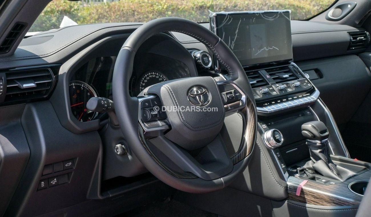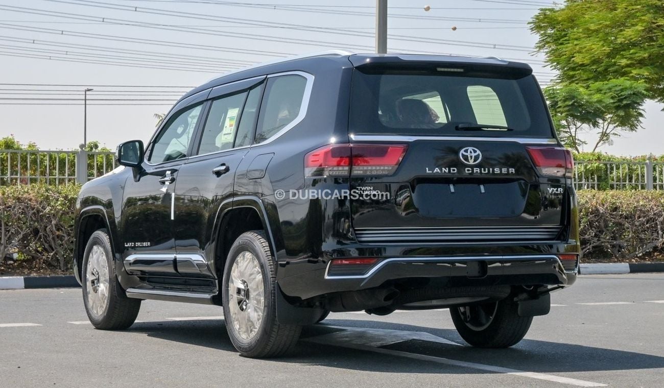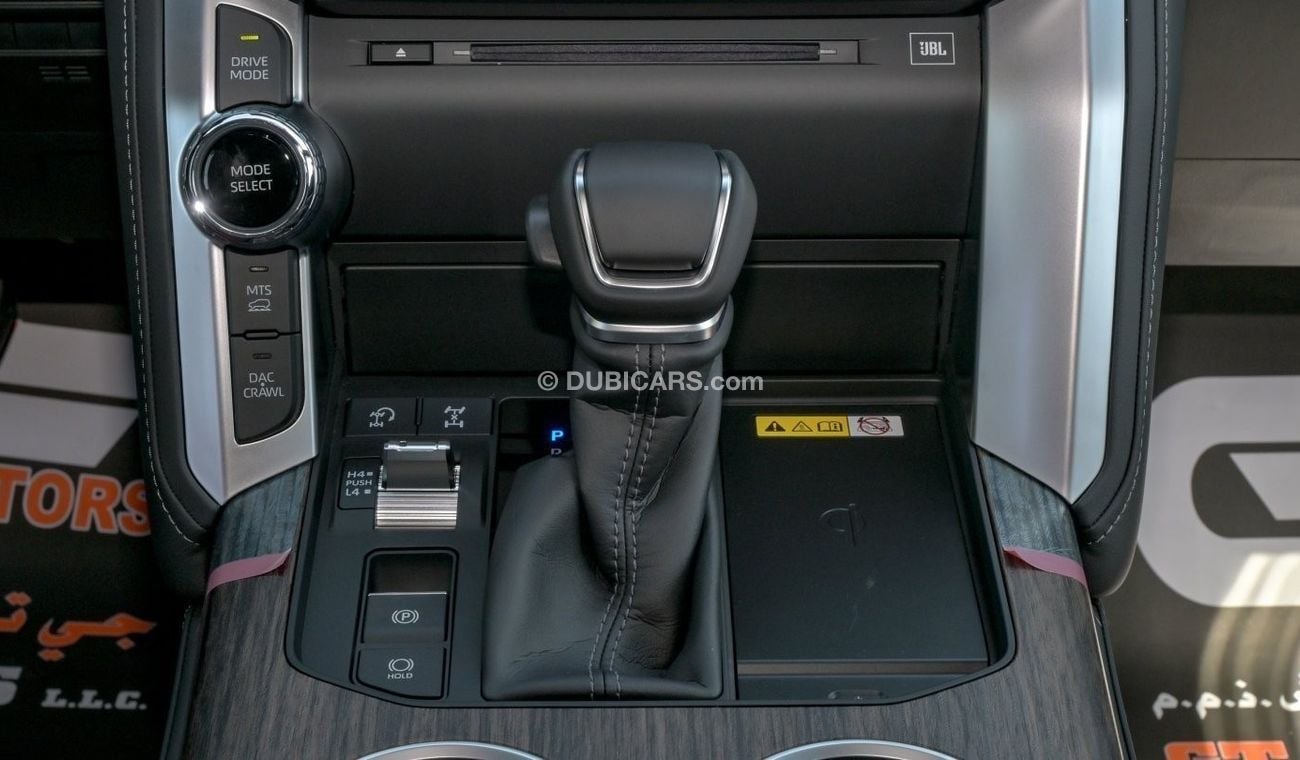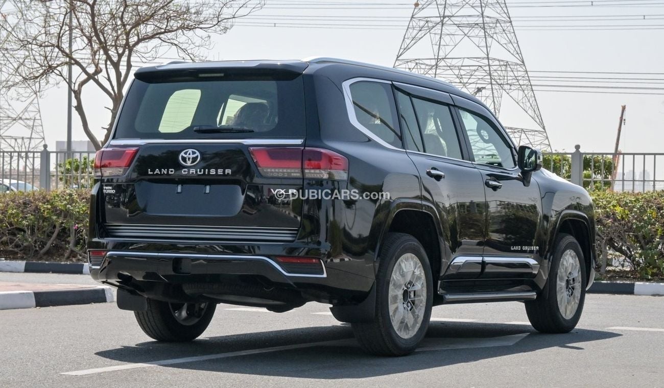 Brand new Toyota Land Cruiser 3.5 VXR Twin Turbo for sale in Dubai. Black 2024 model, available at GT Motors. This car has automatic transmission, 6 cylinder engine, 20″ wheels and burgundy interior. GCC specs.