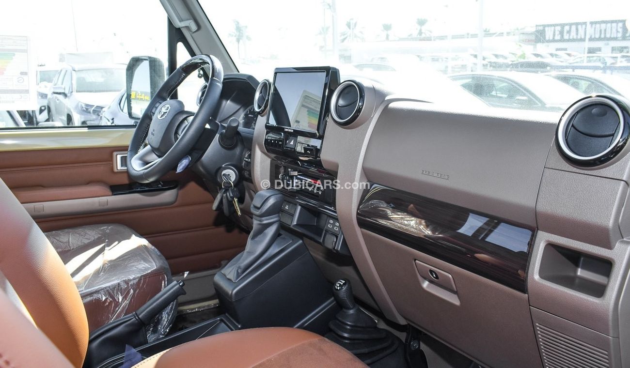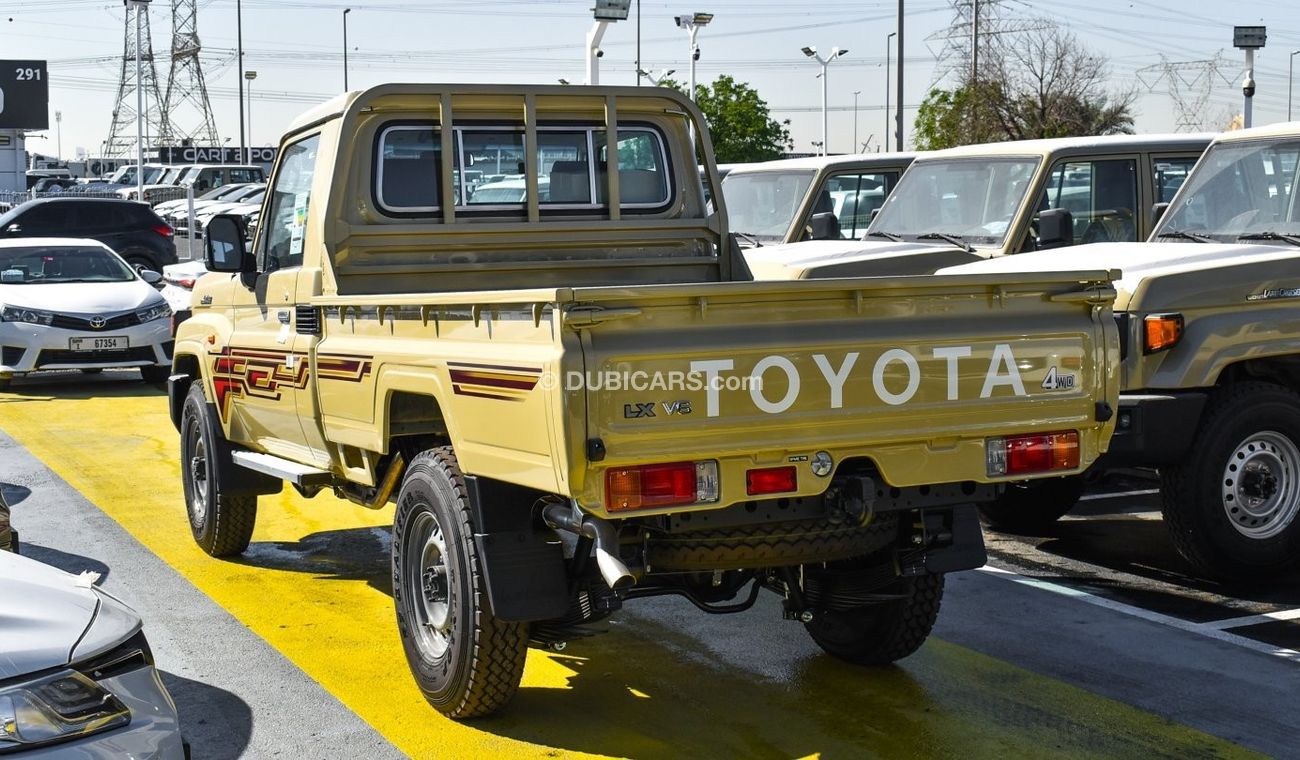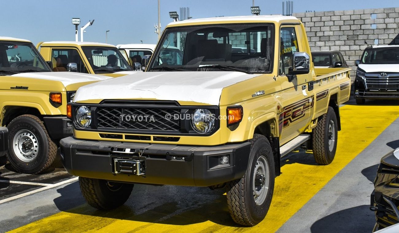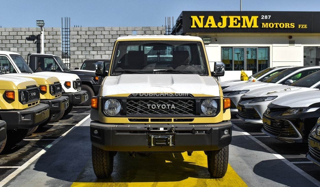 New Toyota Land Cruiser Pickup LX 4.0L V6 Petrol Single Cabin Auto transmission for sale from Najem Motors FZE in Dubai. Beige 2024 model. The car has automatic gearbox, 6 cylinder engine, 16″ wheels and brown interior. GCC specs.