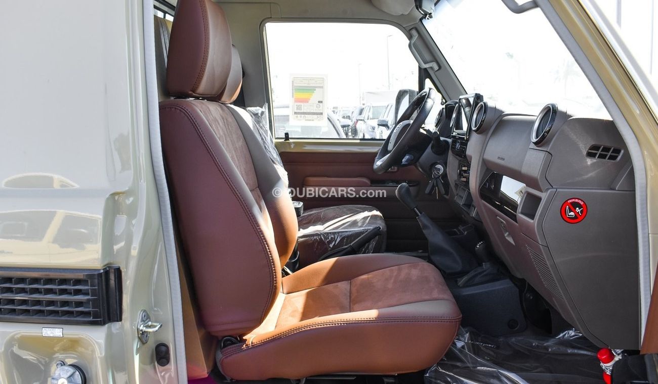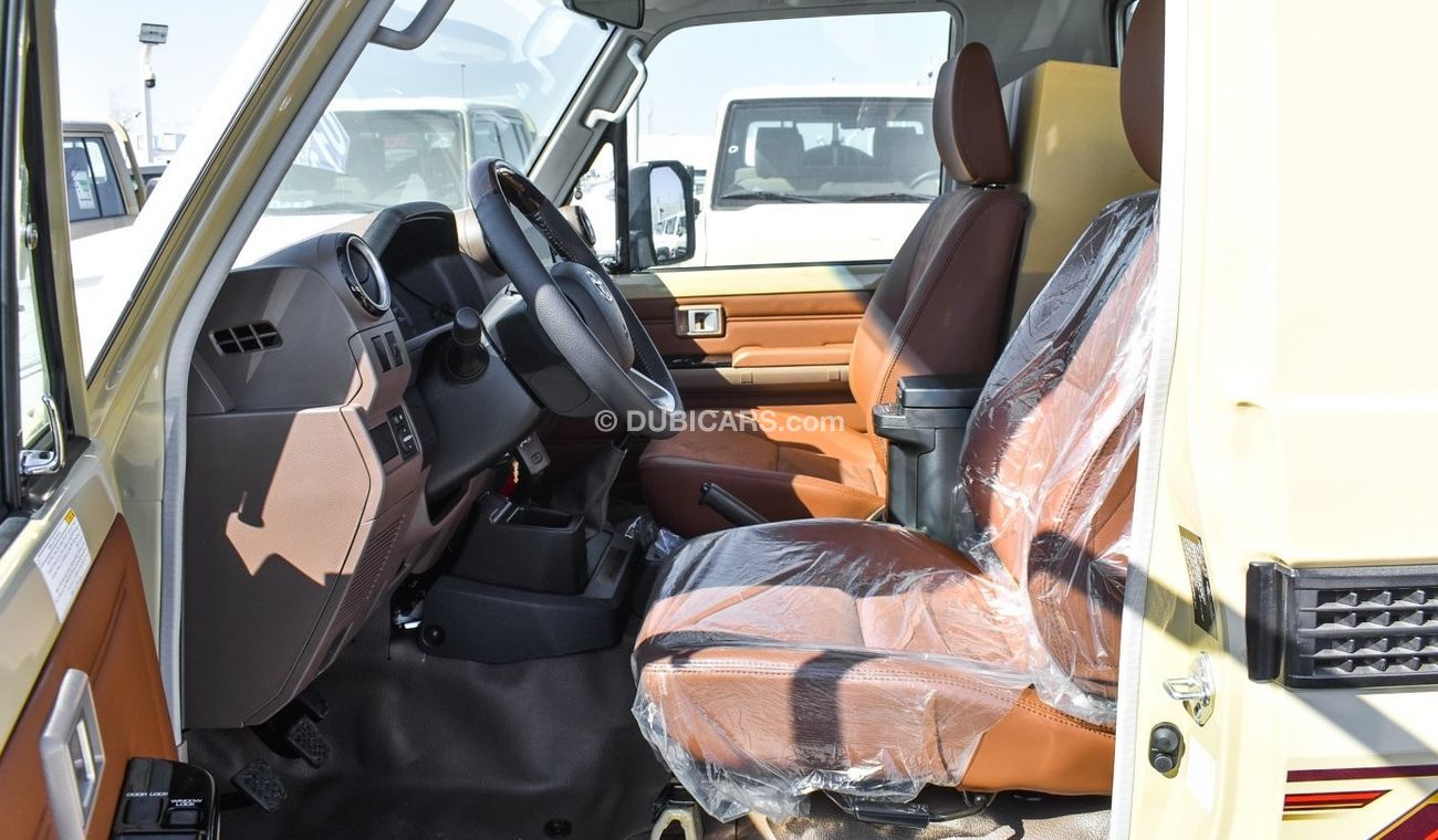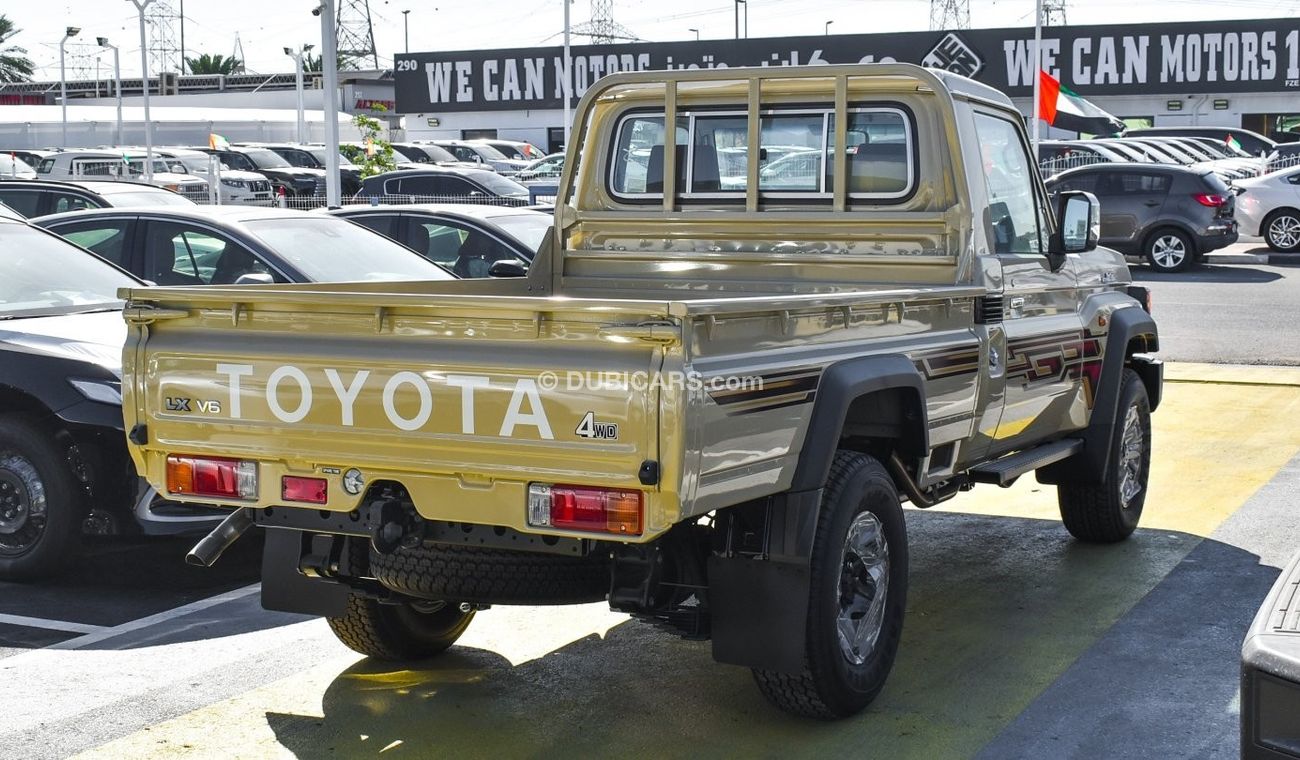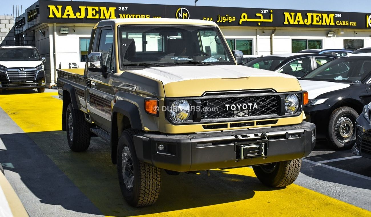 Brand new Toyota Land Cruiser Pickup LX 4.0L V6 Petrol Single Cabin M/T for sale in Dubai. Beige 2024 model, available at Najem Motors FZE. This car has manual transmission, 6 cylinder engine, 16″ wheels and brown interior. GCC specs.