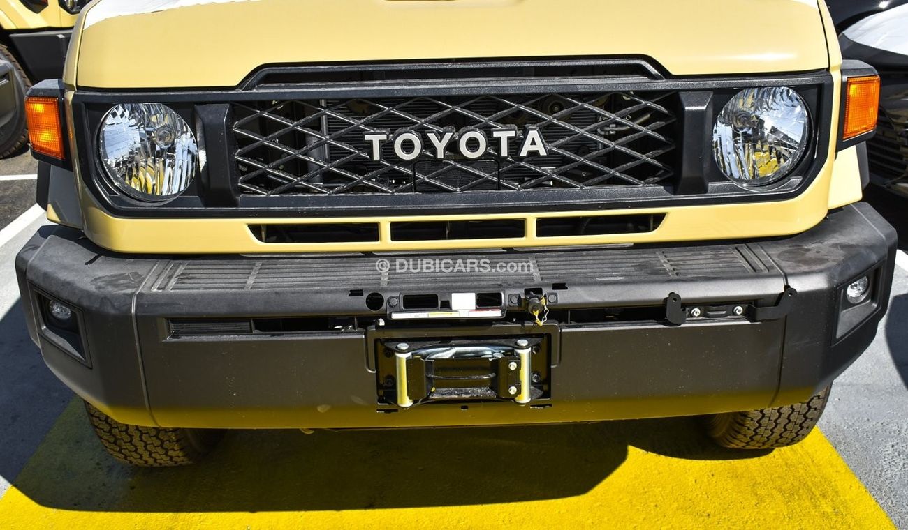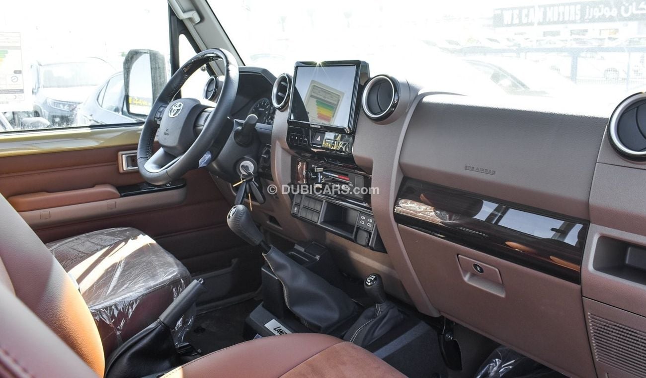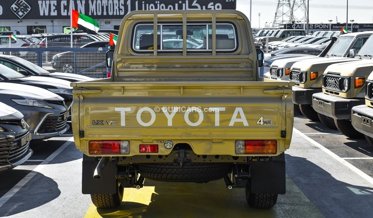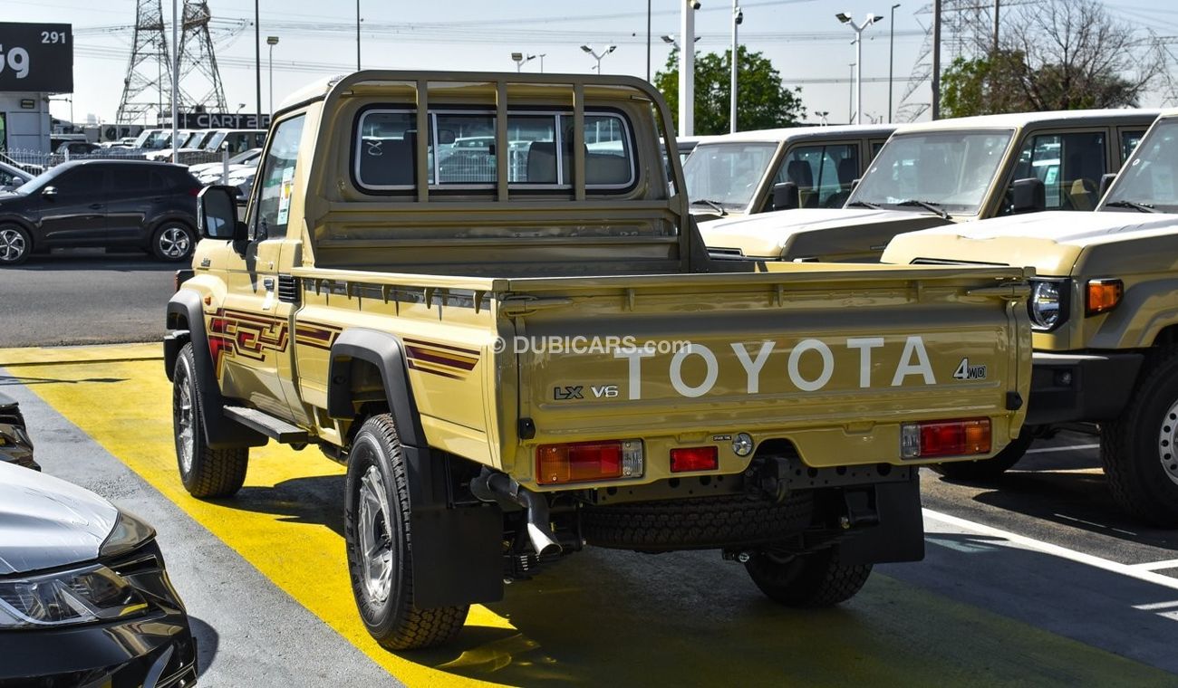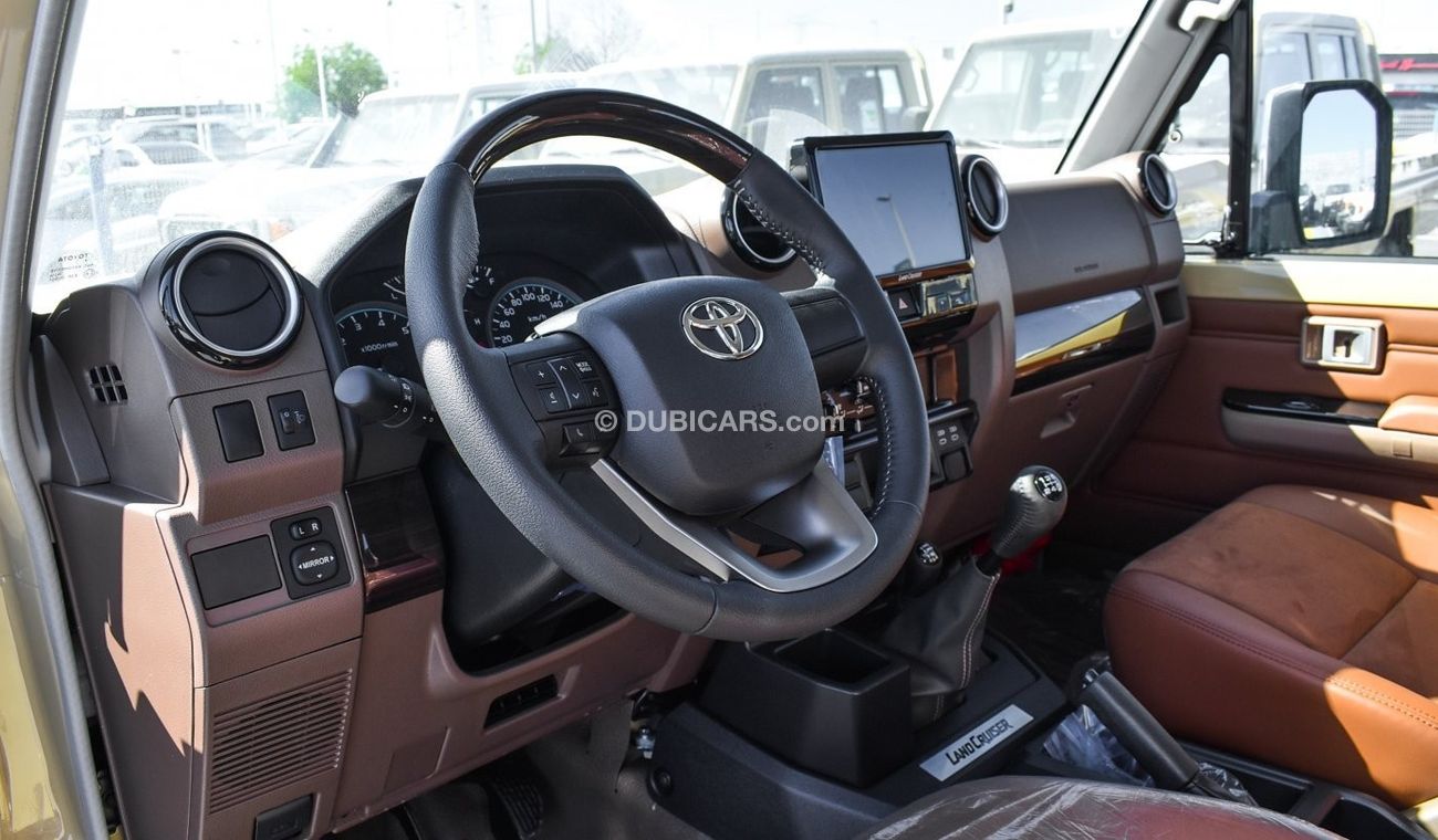 Brand new Toyota Land Cruiser Pickup LX 4.0L V6 Petrol Single Cabin M/T for sale in Dubai. Beige 2024 model, available at Najem Motors FZE. This car has manual transmission, 6 cylinder engine, 16″ wheels and brown interior. GCC specs.