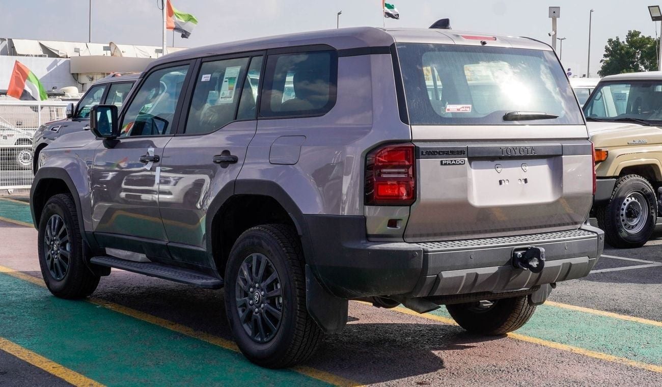 New Toyota Prado for sale from Atlantis Motors FZE in Dubai. Bronze 2024 model. The car has automatic gearbox, 4 cylinder engine, 18″ wheels and black interior. GCC specs.