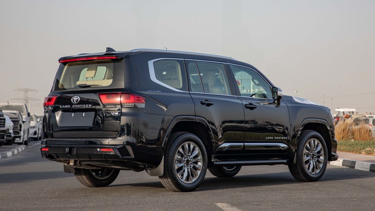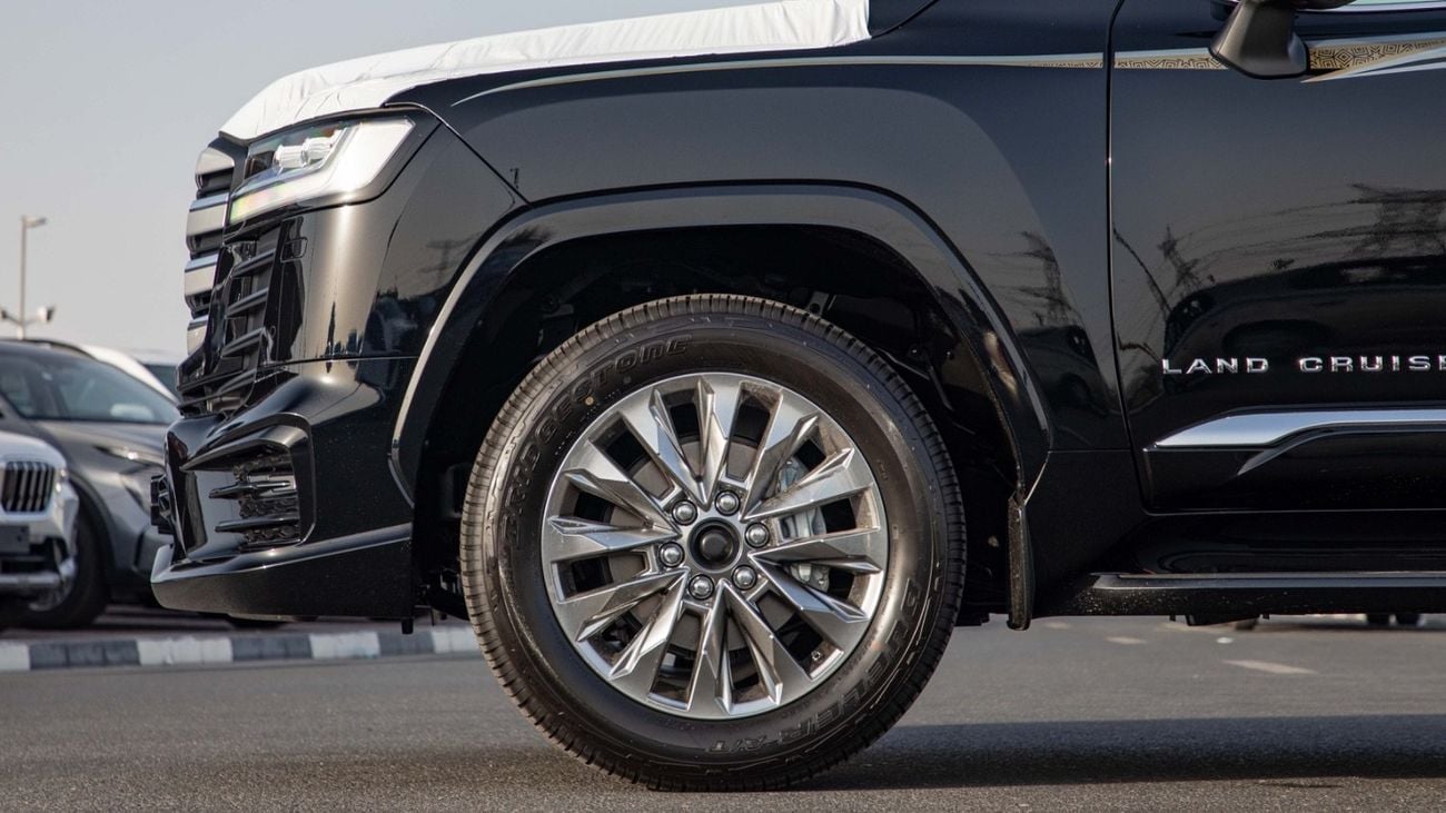 Safety is uncompromised with Toyota Safety Sense, including adaptive cruise control, lane departure alert, blind-spot monitoring, and a 360-degree camera system. The Land Cruiser 300 VX-V also features a Multi-Terrain Select system, Crawl Control, and an Electronic Kinetic Dynamic Suspension System (e-KDSS) for optimal control on rugged terrain.